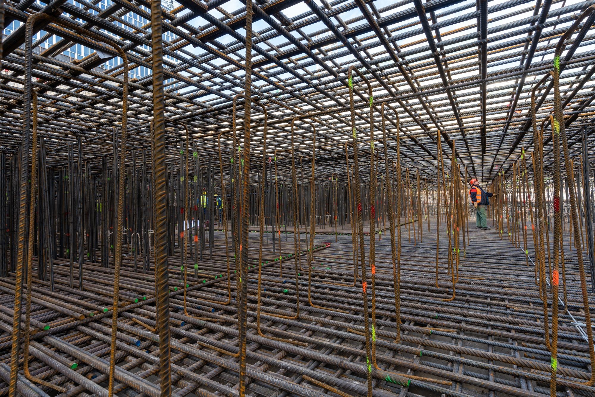 Az alaplemez betonozását követően 2020 januárjában kezdődött az alépítményi szerkezetek, majd 2020 áprilisától a felszerkezet kivitelezése. A négy pinceszint, továbbá a földszint és az első két emelet hagyományos zsaluzási technológiával épült meg. Az első hét emelet megvalósításával párhuzamosan – magyar mérnökök koprodukciójával – zajlott az európai viszonylatban is kiemelkedő méretű kúszózsaluzat tervezése, gyártása és előszerelése, mely 6 hónapot vett igénybe.