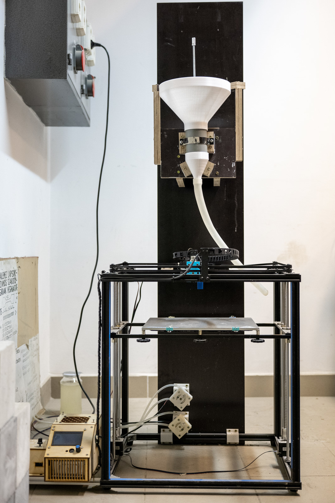 Kasik Tamás szavaiból kiderül, hogy a műszaki egyetemen zajló projekt célja egy szoba méretű nyomtató előállítása: ennek előkészítéseként kezdték el egy asztali betonnyomtató összeállítását, hogy azzal kisebb kísérleteket végezhessenek. „Az első kutatásokat két hónappal ezelőtt kezdtük el, így még nincs sok eredményünk, de a folyamat ígéretes.”