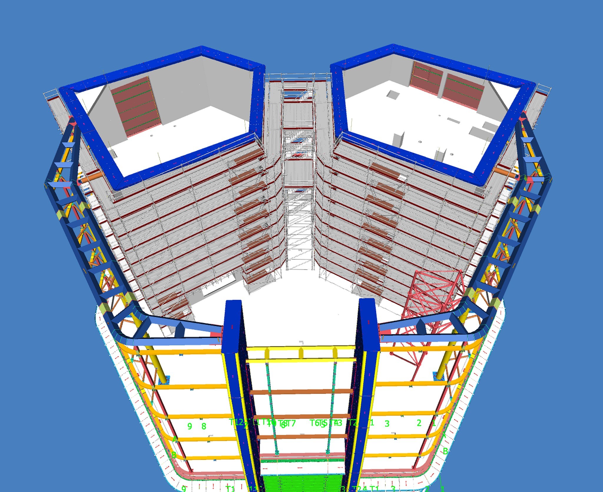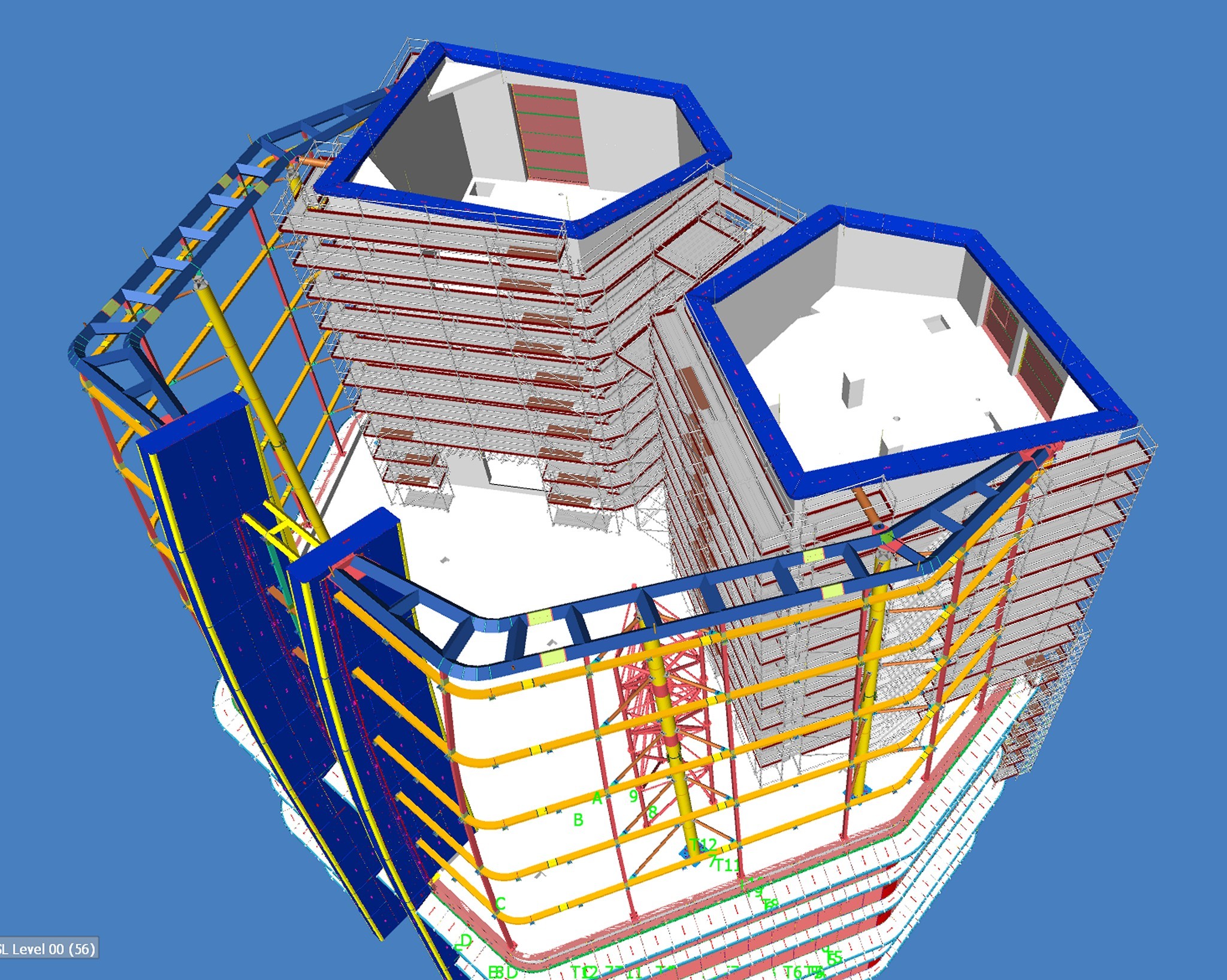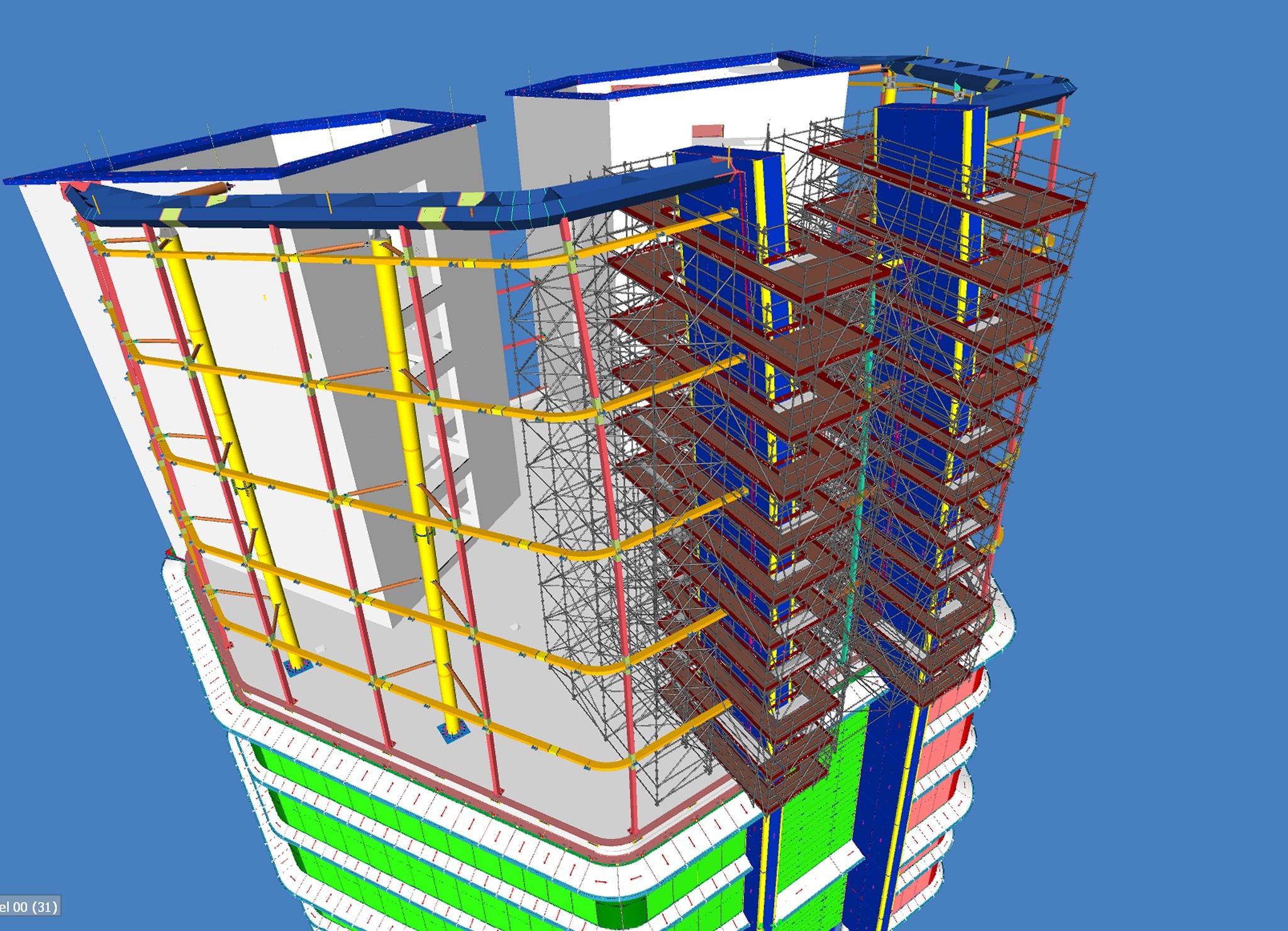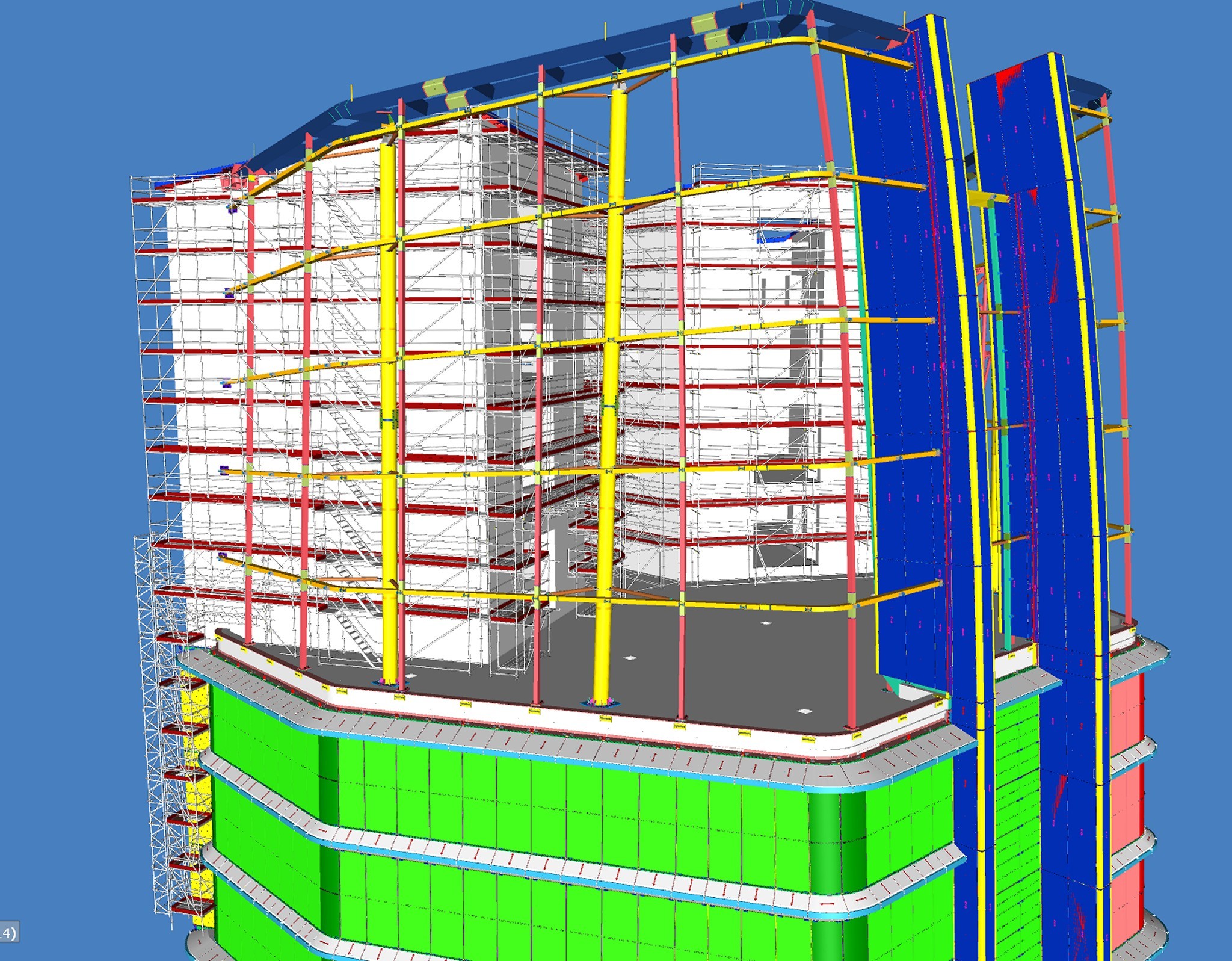 A tervezők rendelkezésére állt az épület BIM modellje, erre készítették el a 3D állványtervet. Több fontos szempontot kellett szem előtt tartani már a tervezési fázisban. Többek között azt a tényt, hogy az épület homlokzati síkjából jelentősen kinyúlik az állvány egy része, így itt hatványozottan számolni kellett a felmerülő szélteherrel. Emellett az épület vasbeton és acélszerkezeti elemeinek geometriája követelt meg olyan állványmegoldásokat, amelyek teljes mértékben alkalmazkodnak a kötött lehetőségekhez.