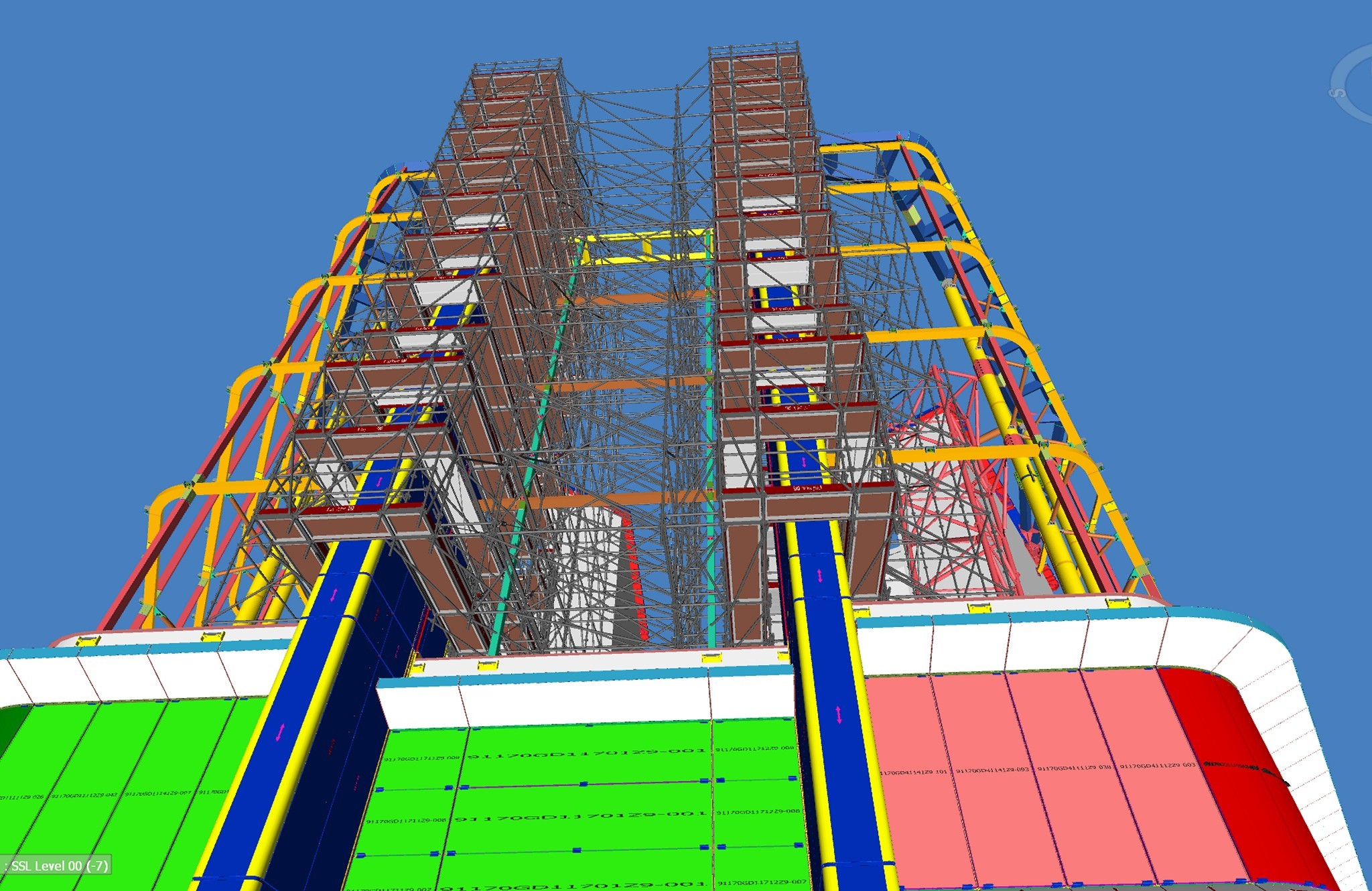 A 21 méter magas különleges állvány teljes tömege több mint 63 tonna és több mint 12 ezer állványelemből tevődik össze.