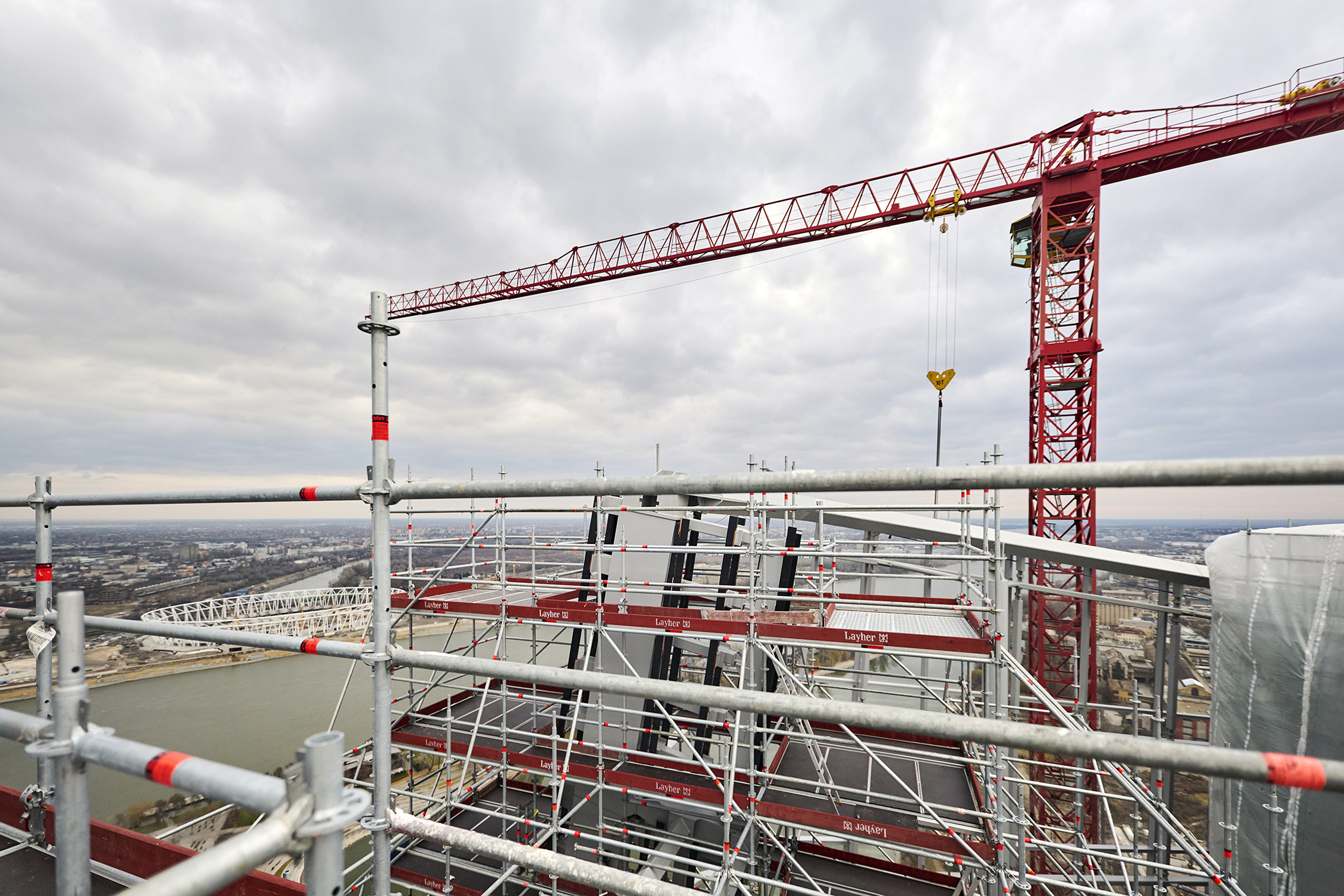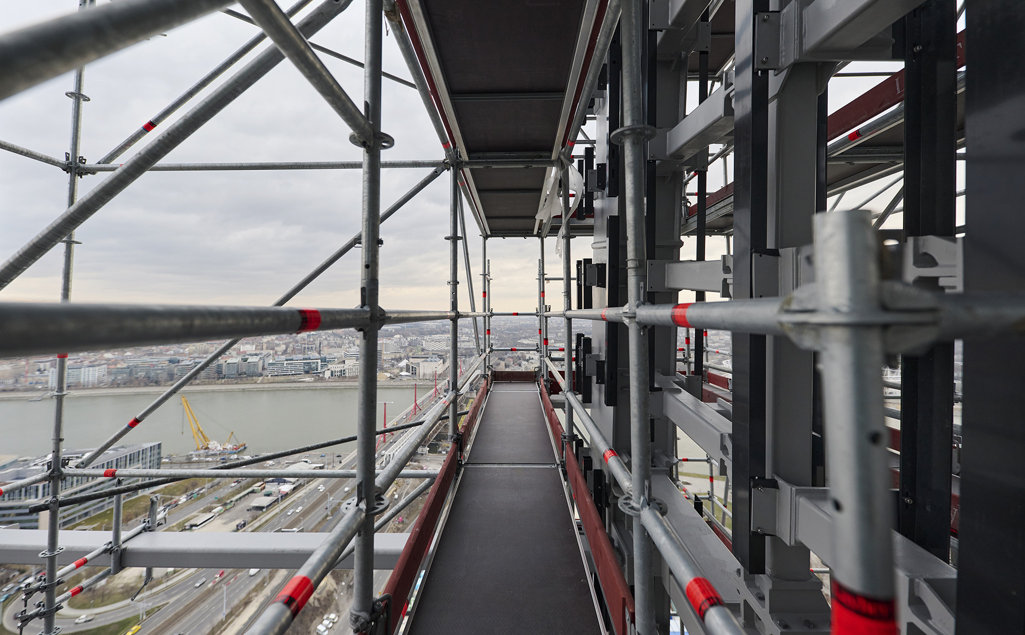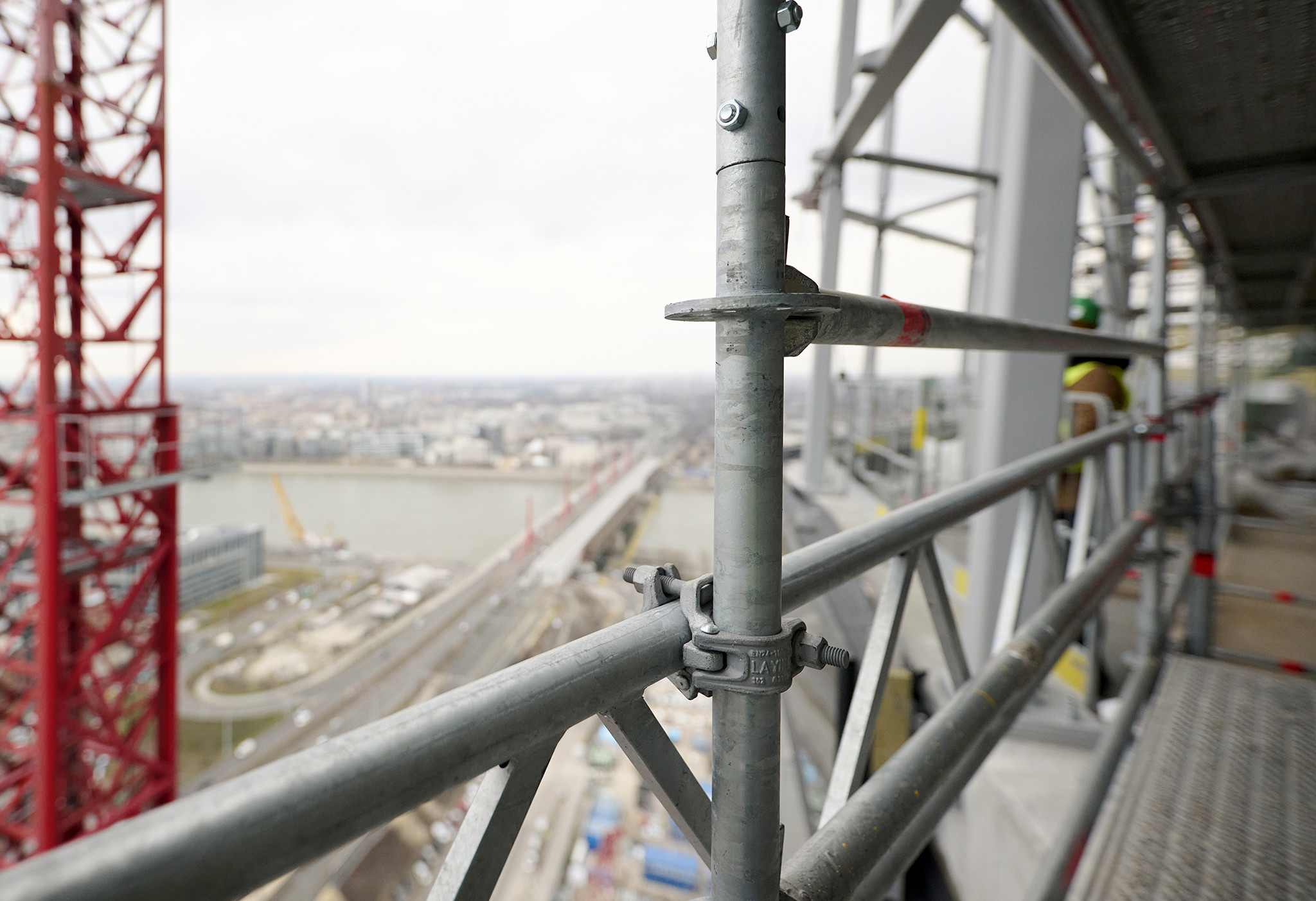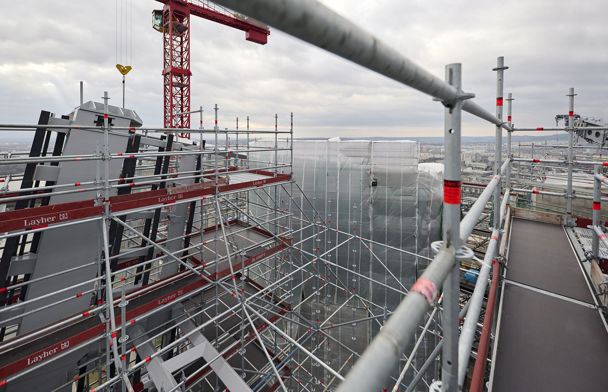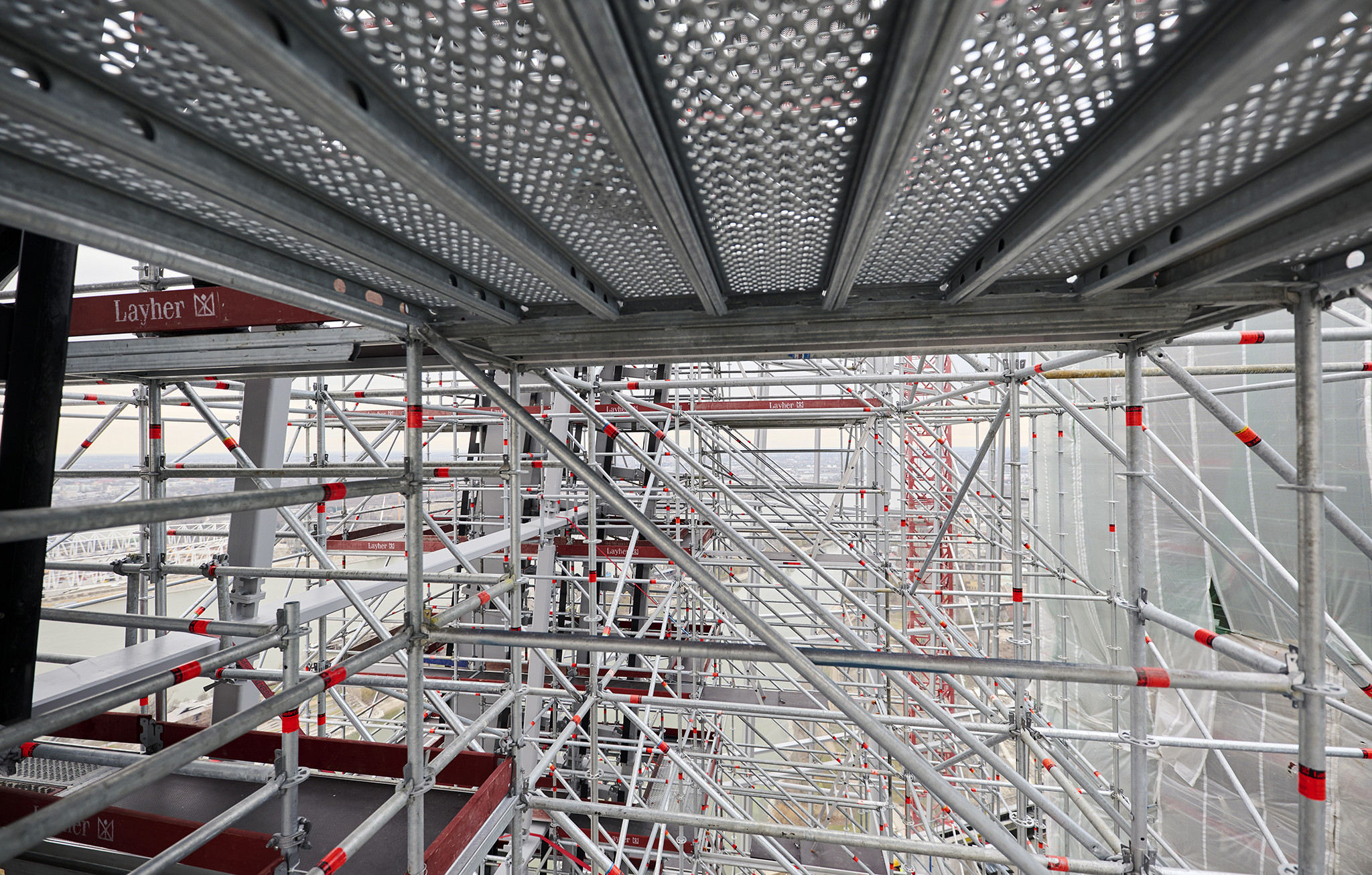 A grandiózus projekt különleges megoldásokat követelt a magasban folyó munkákhoz. A rendkívüli szélterheknek ellenálló, statikailag is helytálló Layher állványzat segíti a szakemberek munkáját.