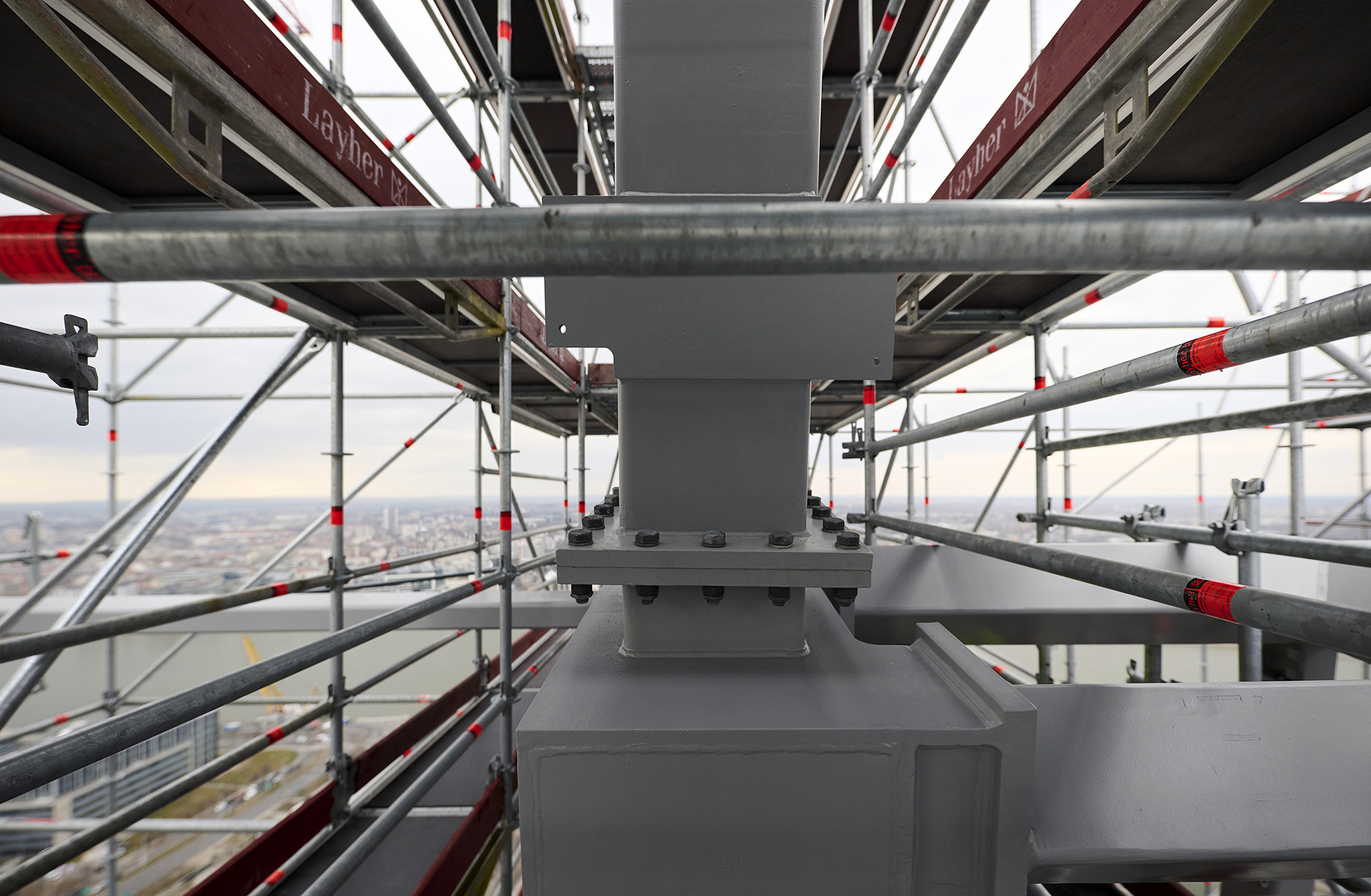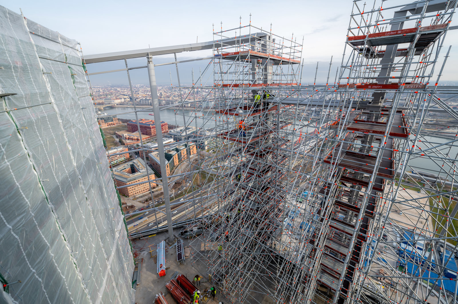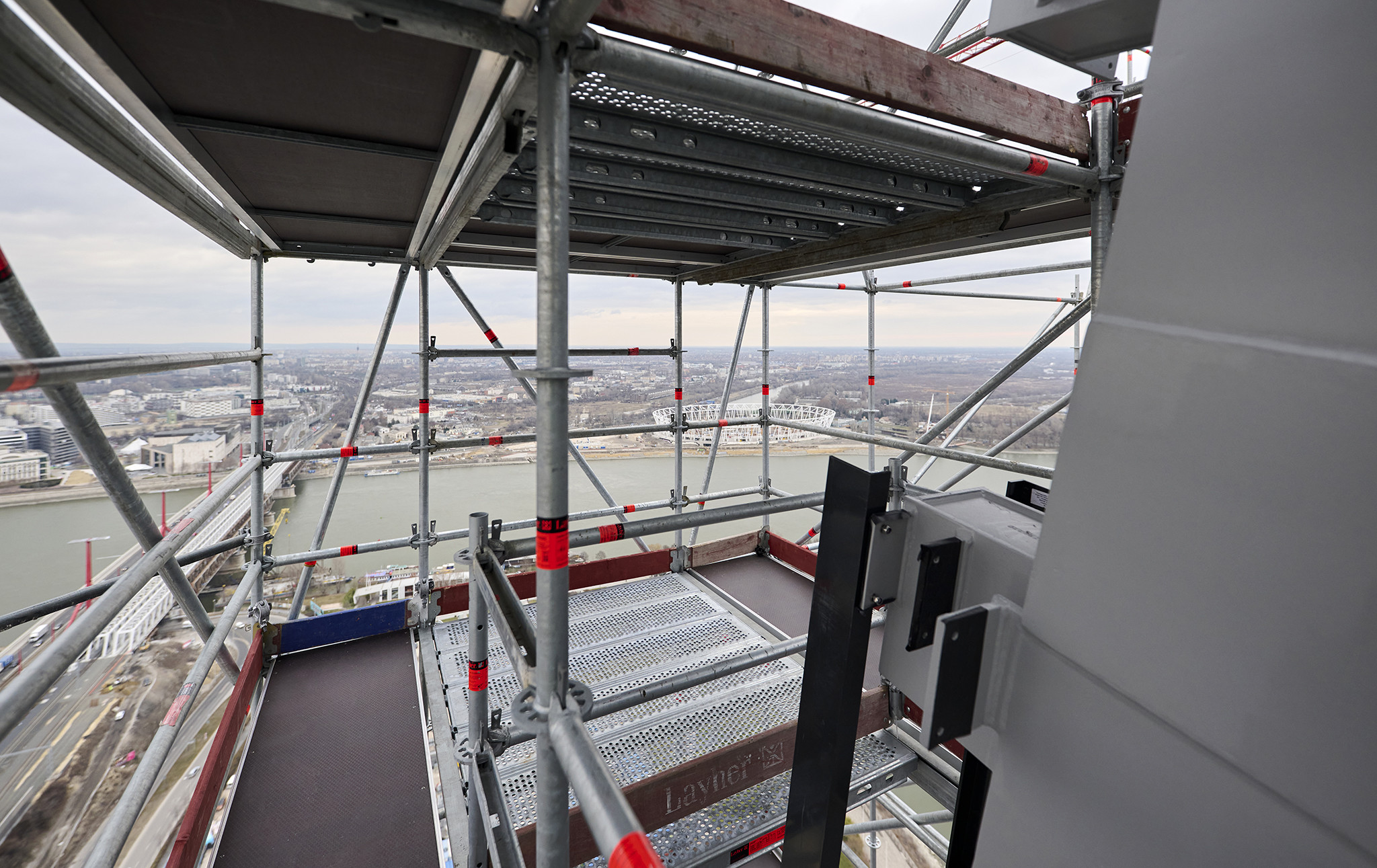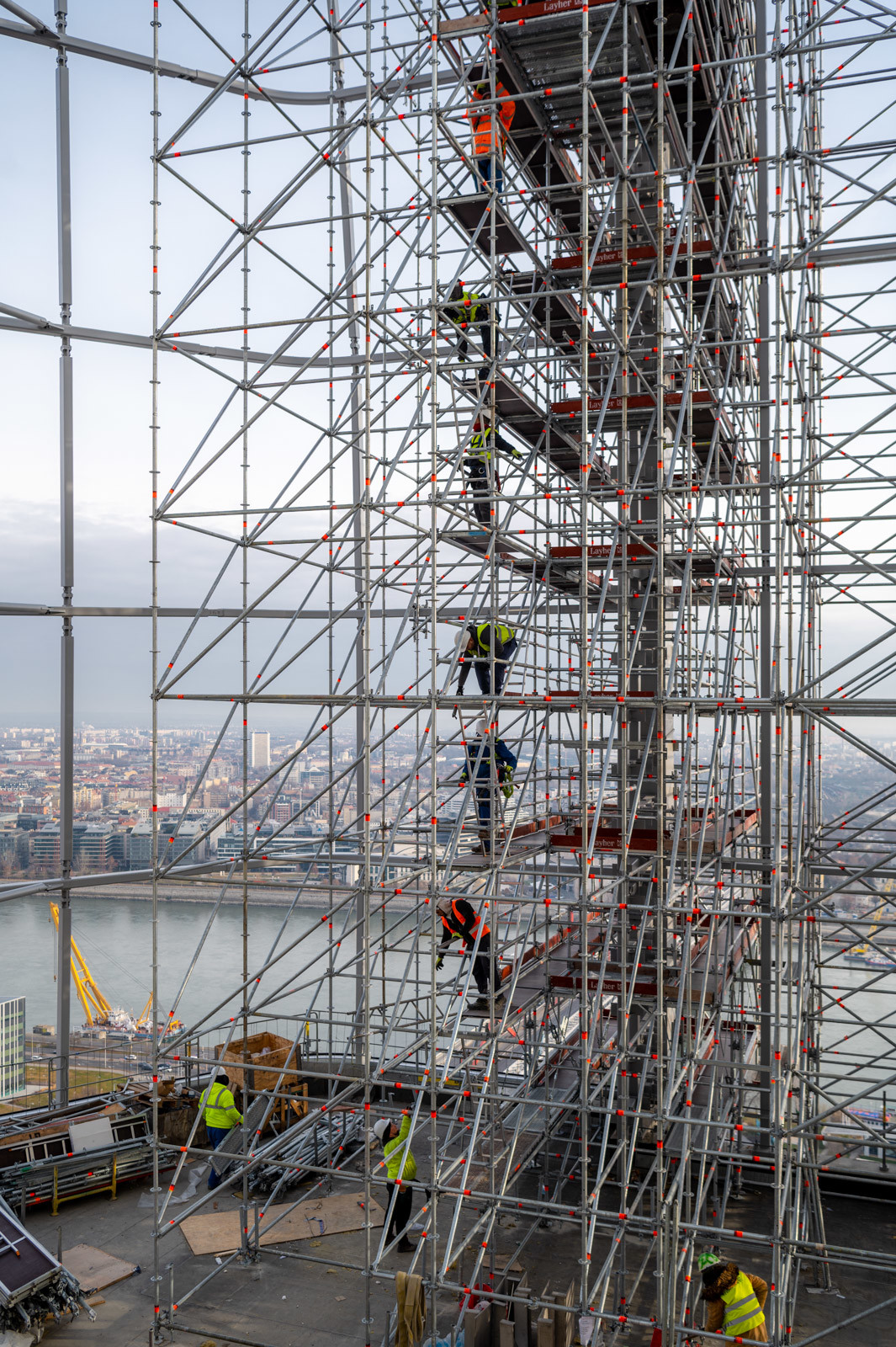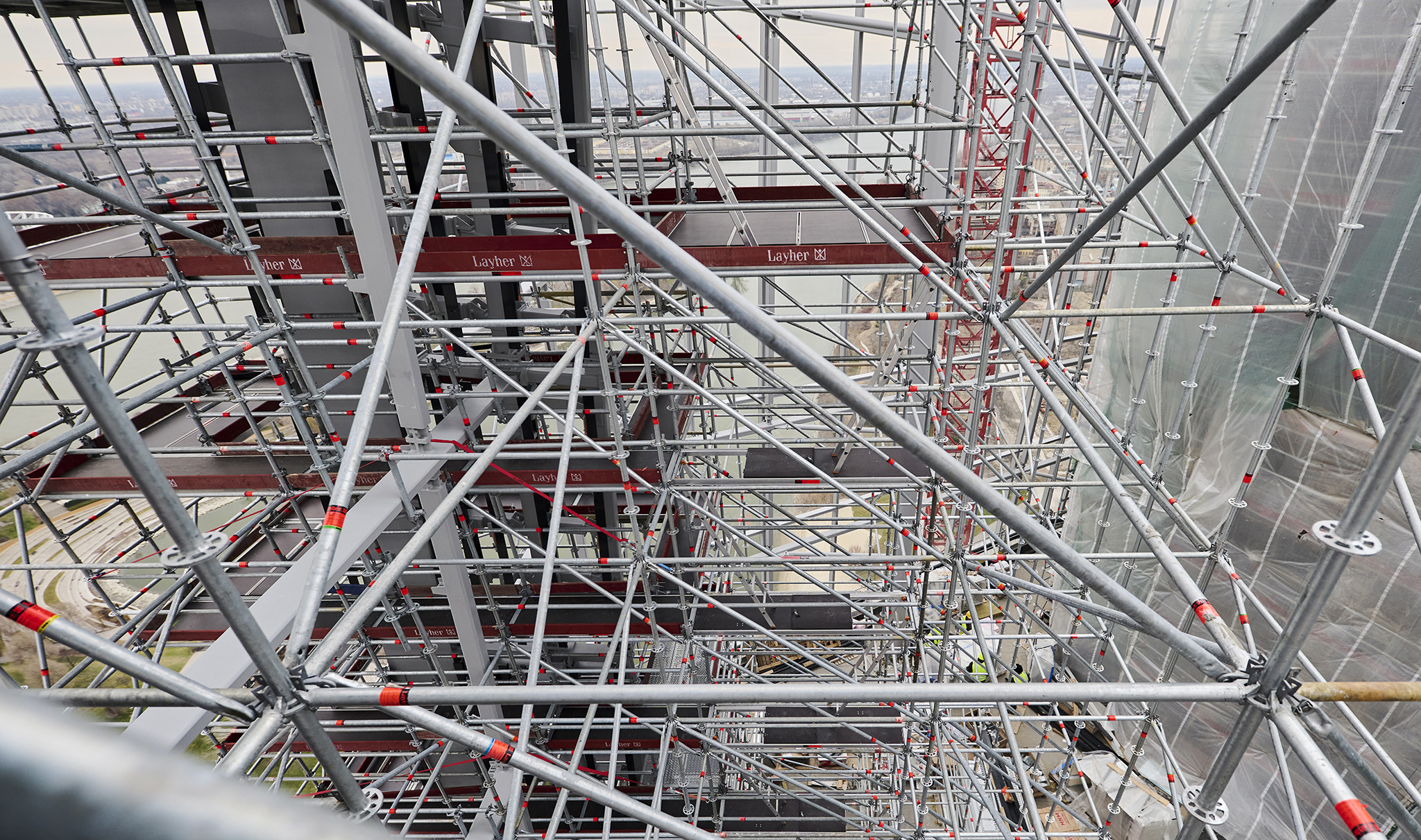 A grandiózus projekt különleges megoldásokat követelt a magasban folyó munkákhoz. A rendkívüli szélterheknek ellenálló, statikailag is helytálló Layher állványzat segíti a szakemberek munkáját.