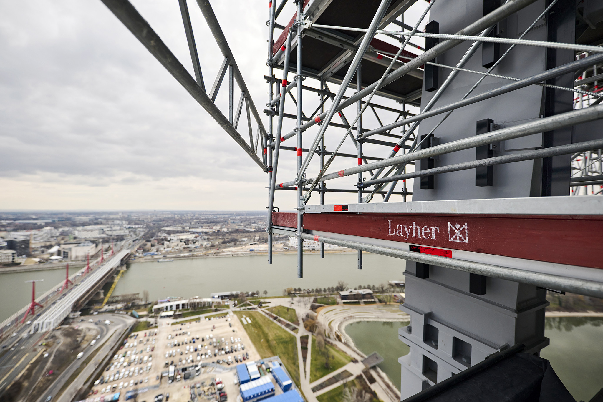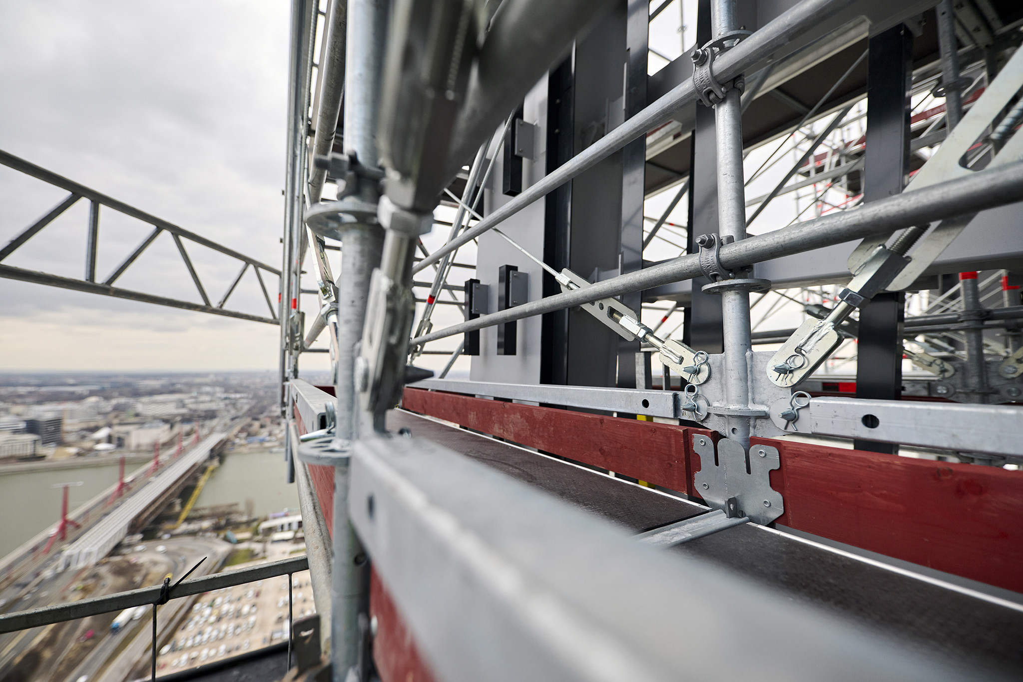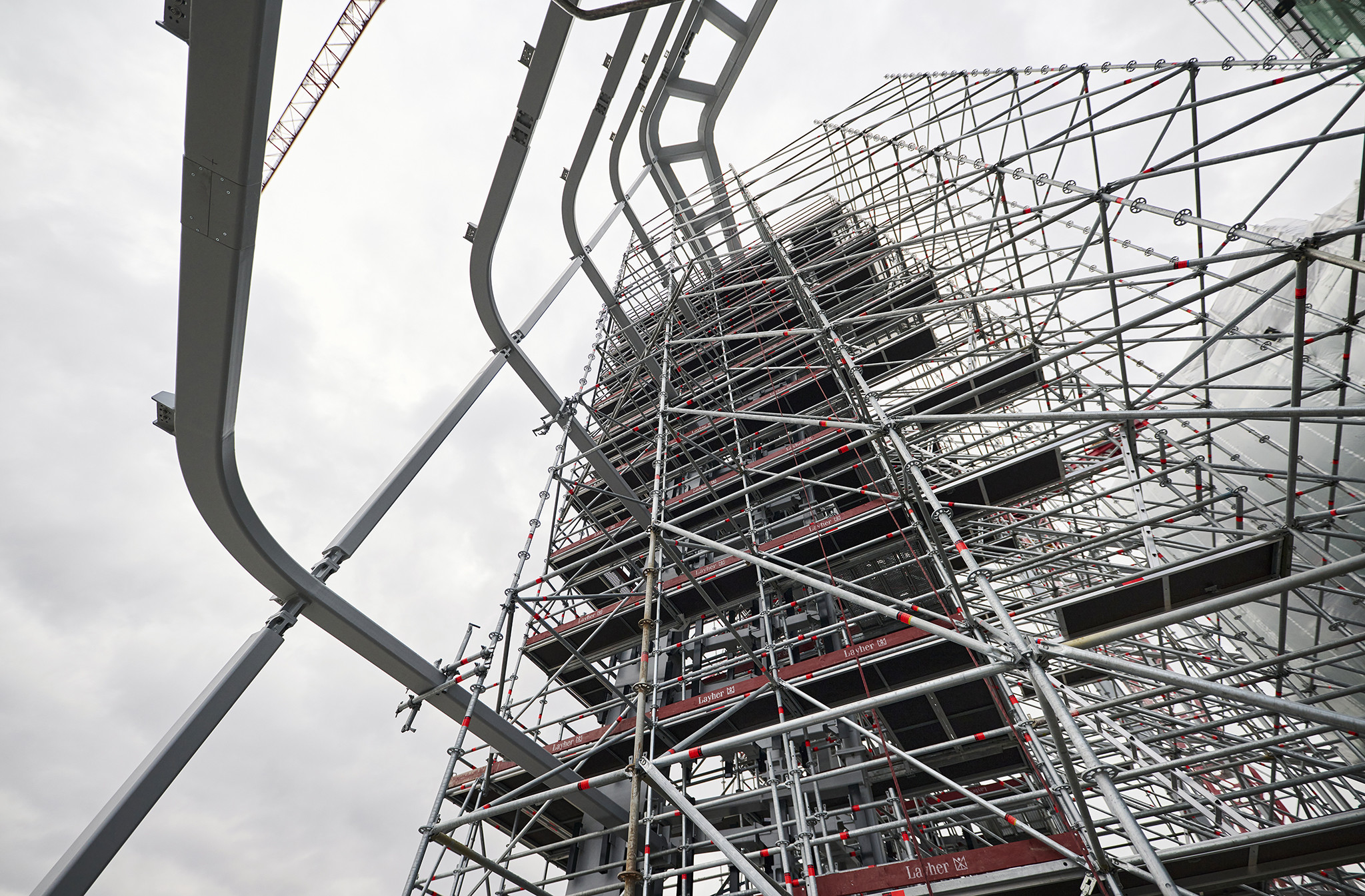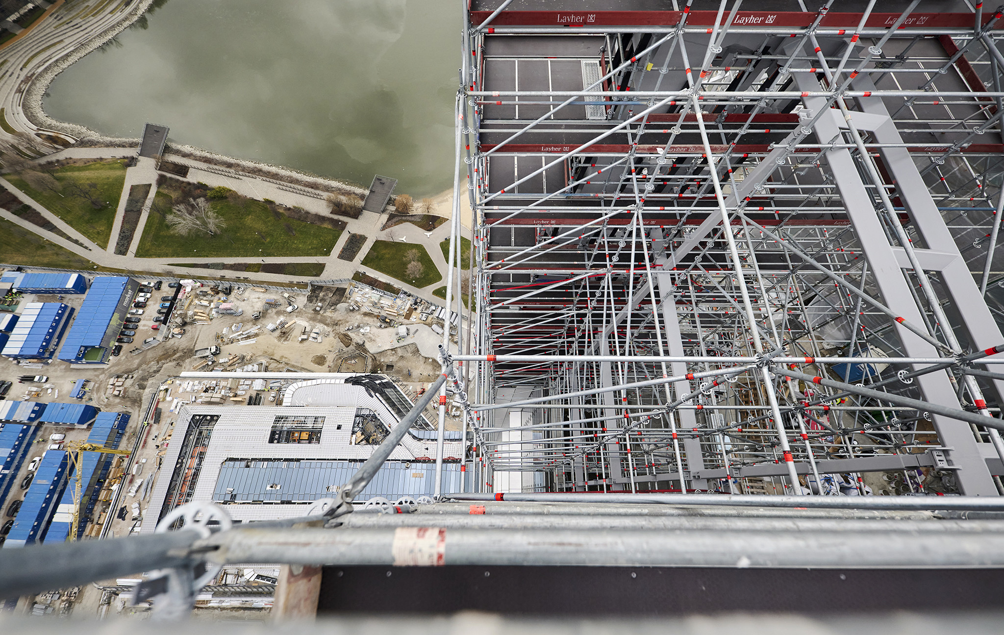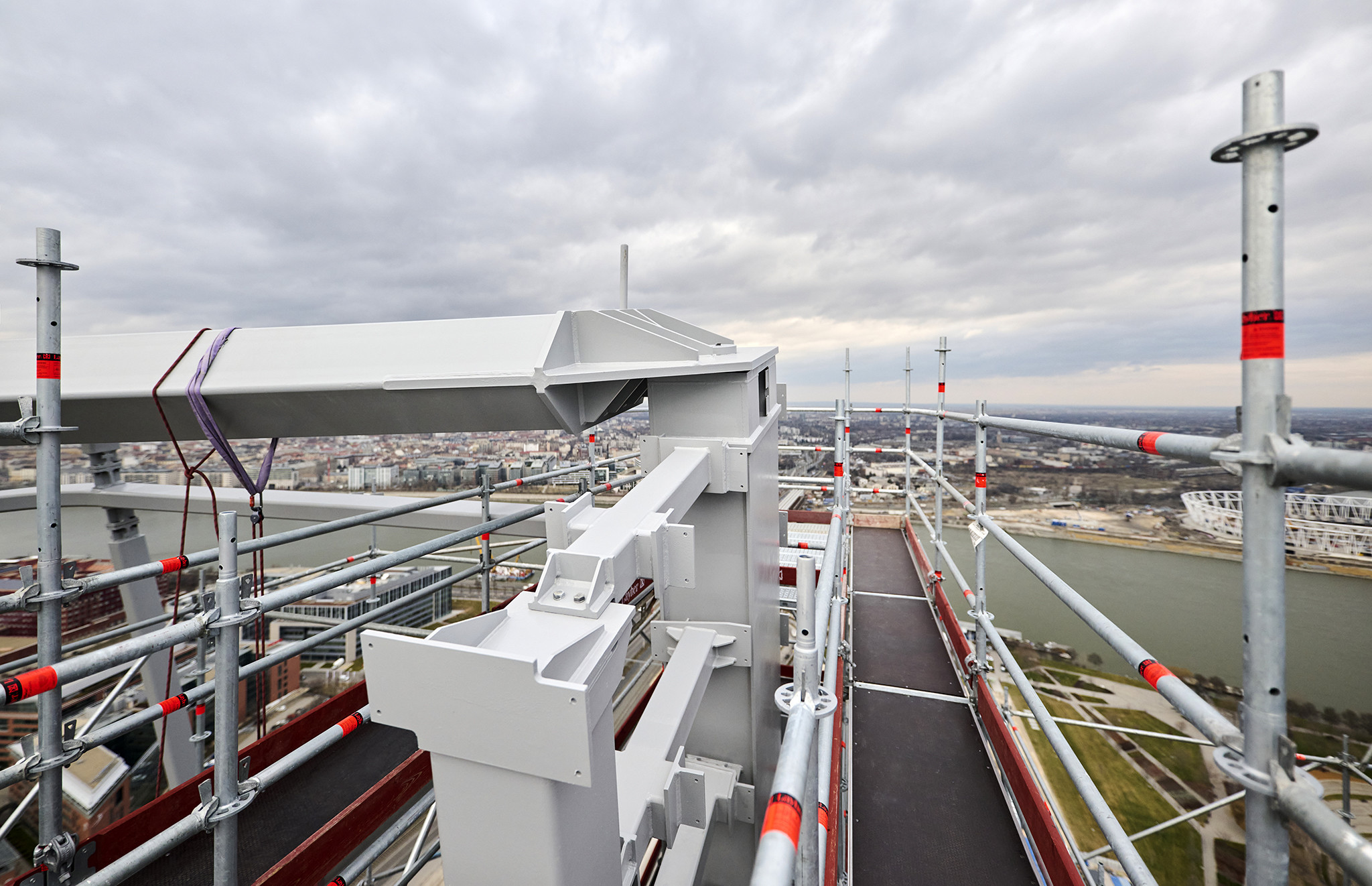 A grandiózus projekt különleges megoldásokat követelt a magasban folyó munkákhoz. A rendkívüli szélterheknek ellenálló, statikailag is helytálló Layher állványzat segíti a szakemberek munkáját.