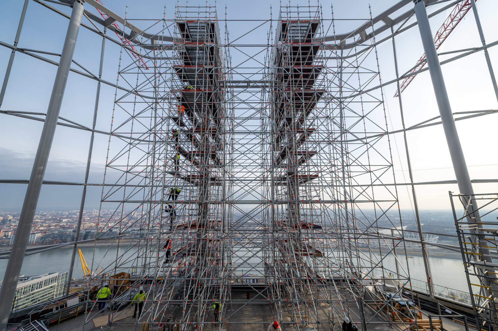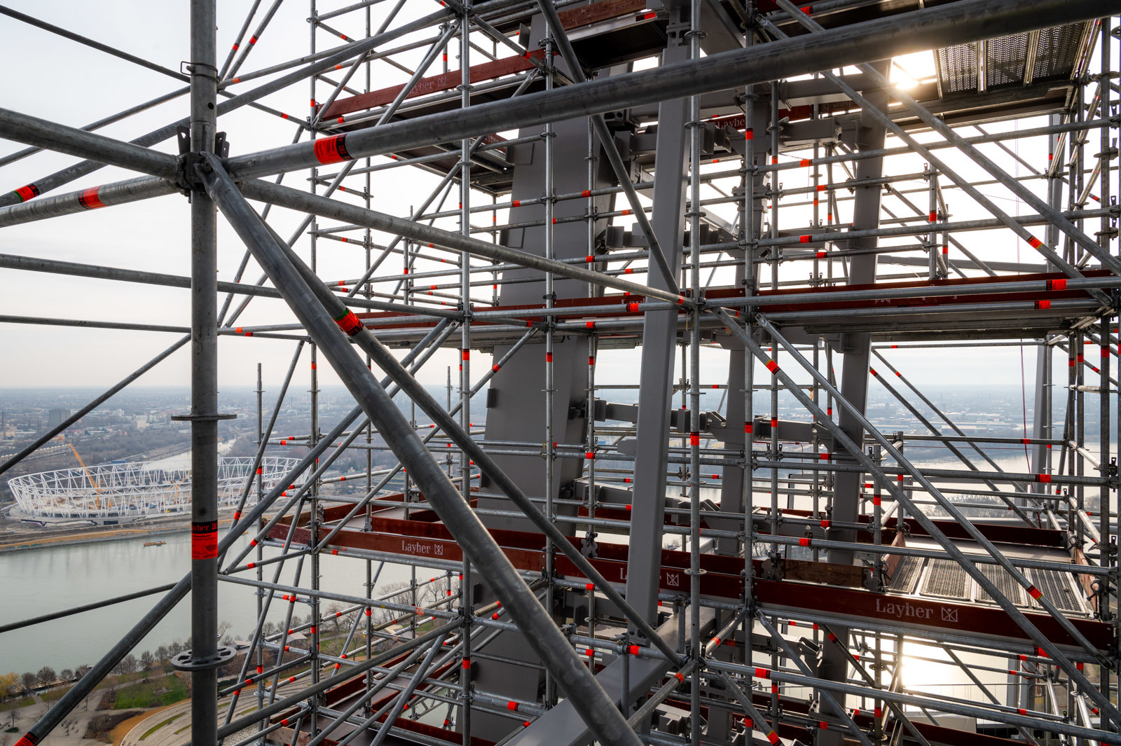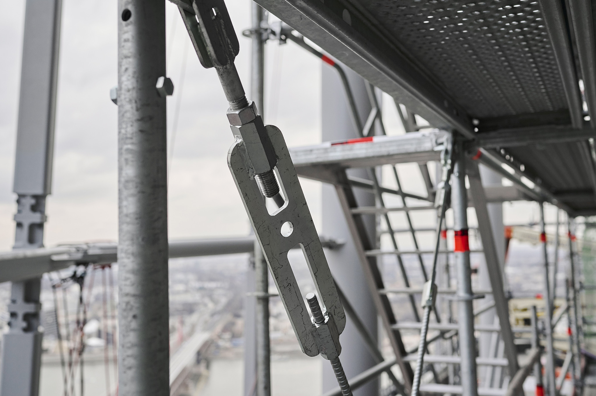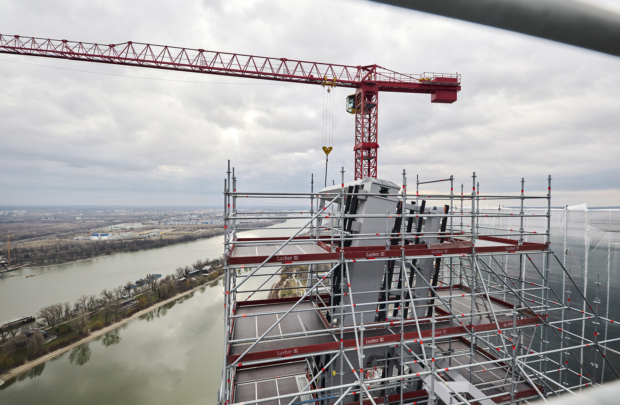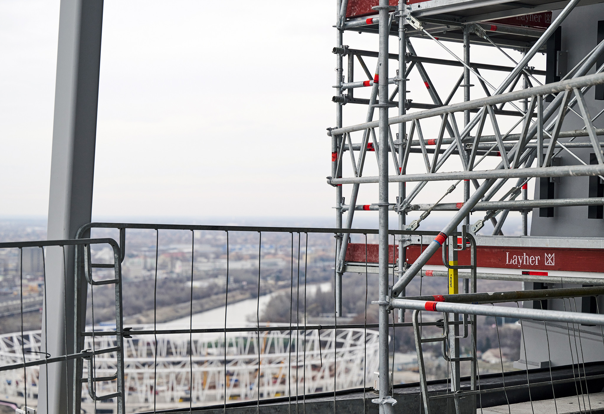 A grandiózus projekt különleges megoldásokat követelt a magasban folyó munkákhoz. A rendkívüli szélterheknek ellenálló, statikailag is helytálló Layher állványzat segíti a szakemberek munkáját.