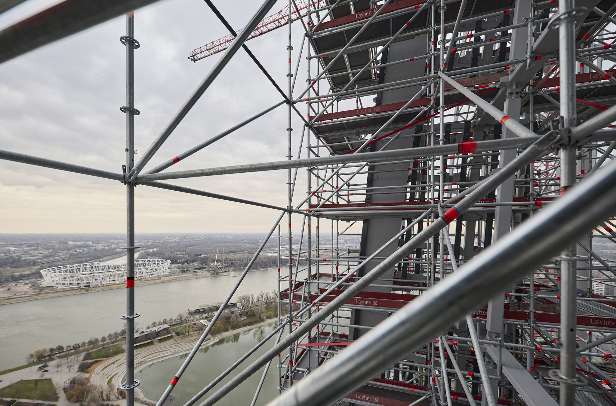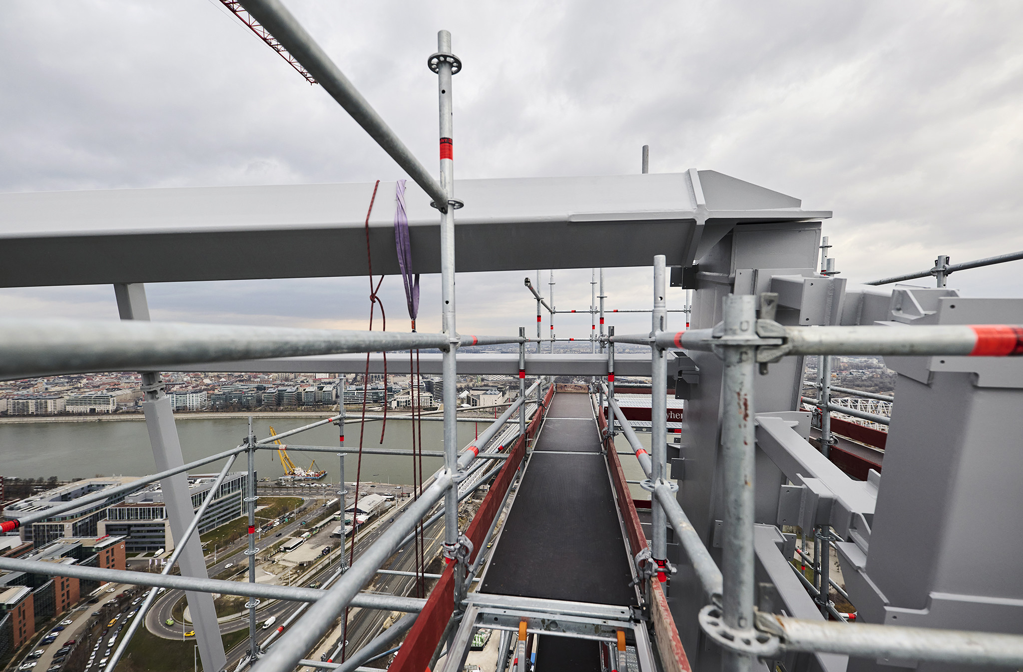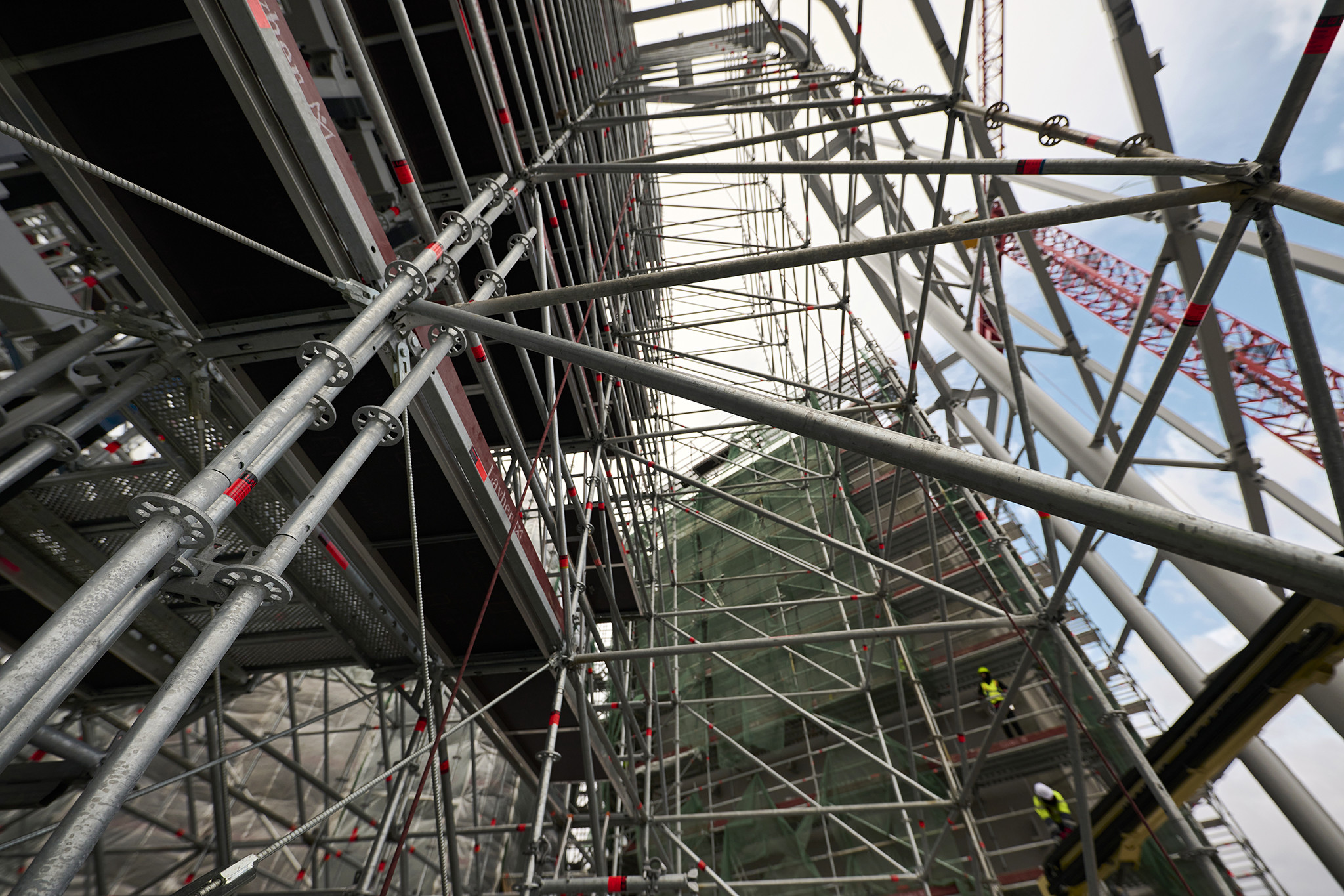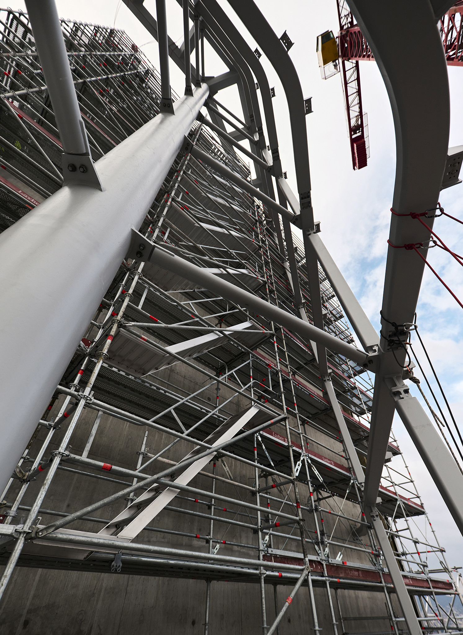 A grandiózus projekt különleges megoldásokat követelt a magasban folyó munkákhoz. A rendkívüli szélterheknek ellenálló, statikailag is helytálló Layher állványzat segíti a szakemberek munkáját.