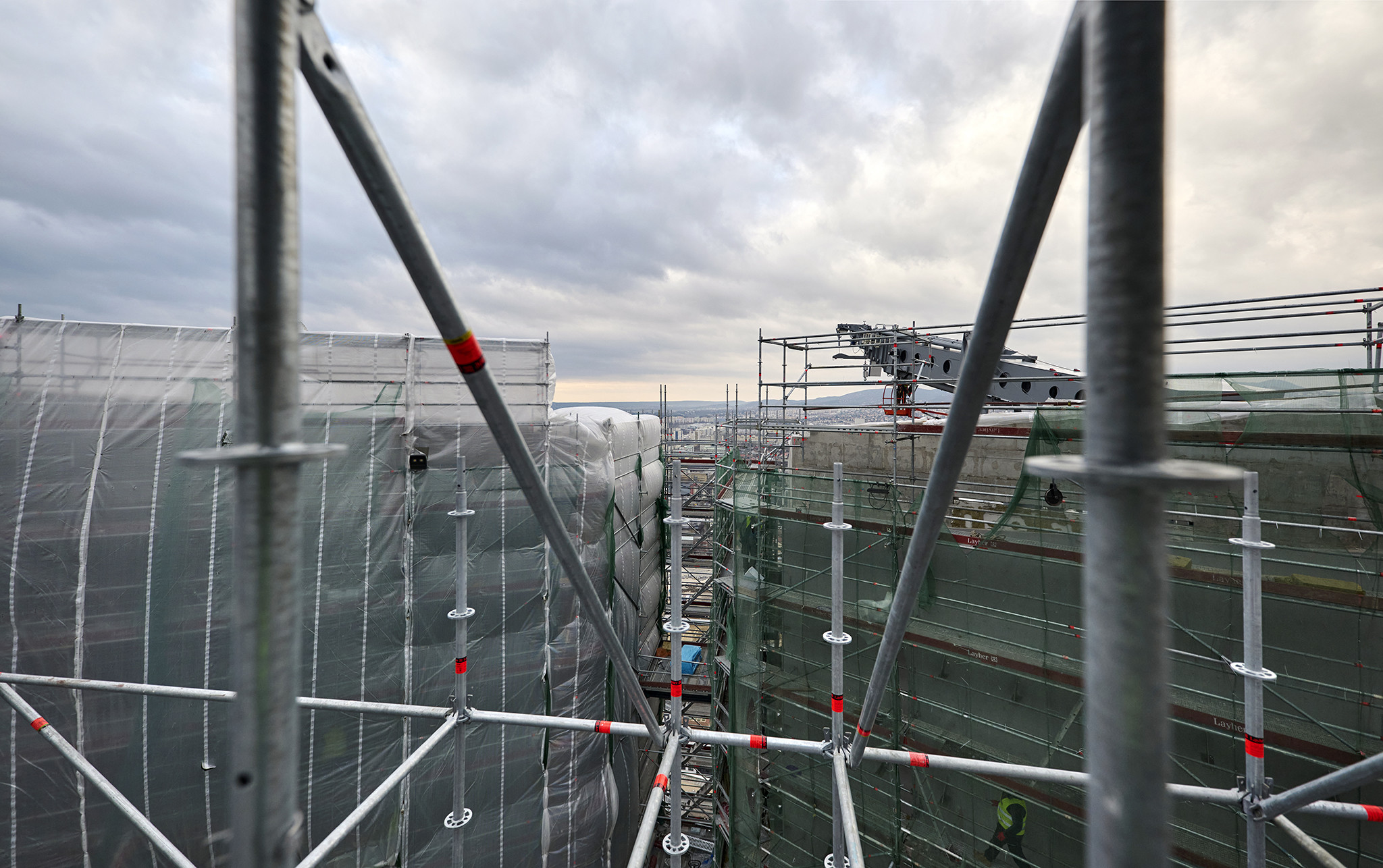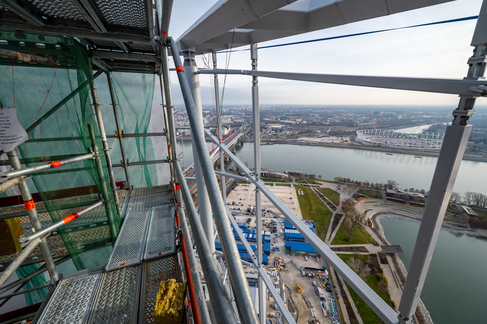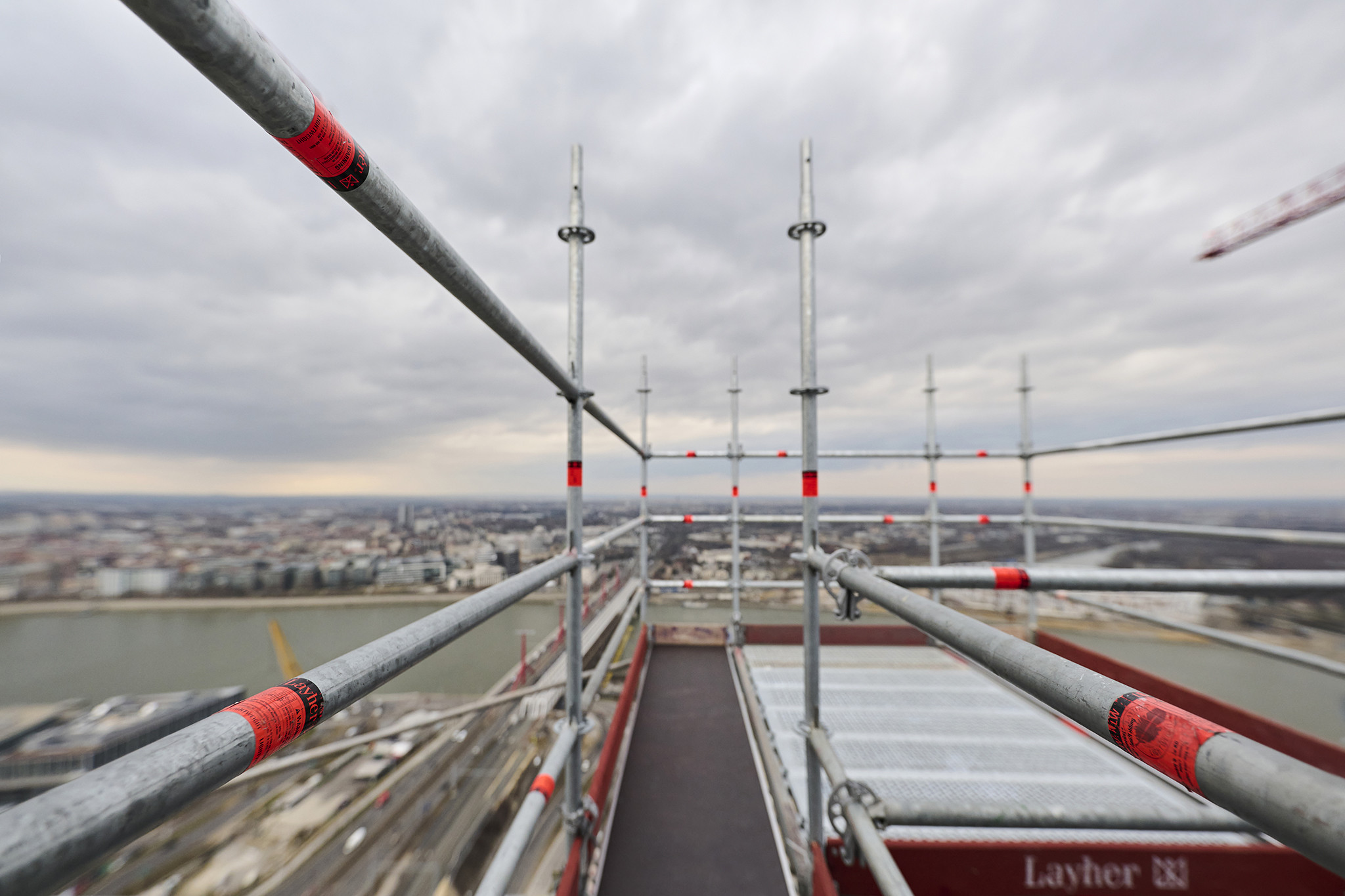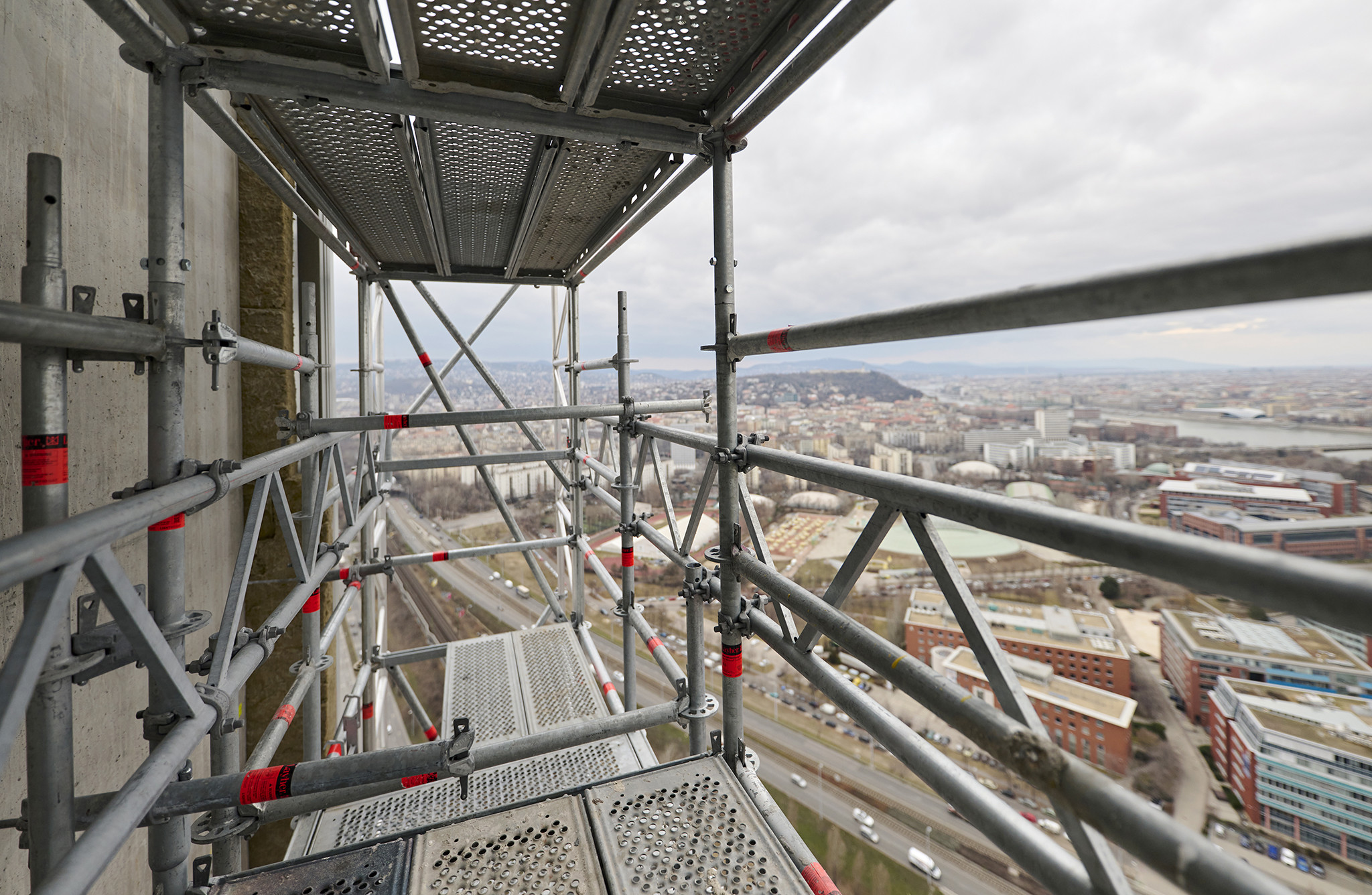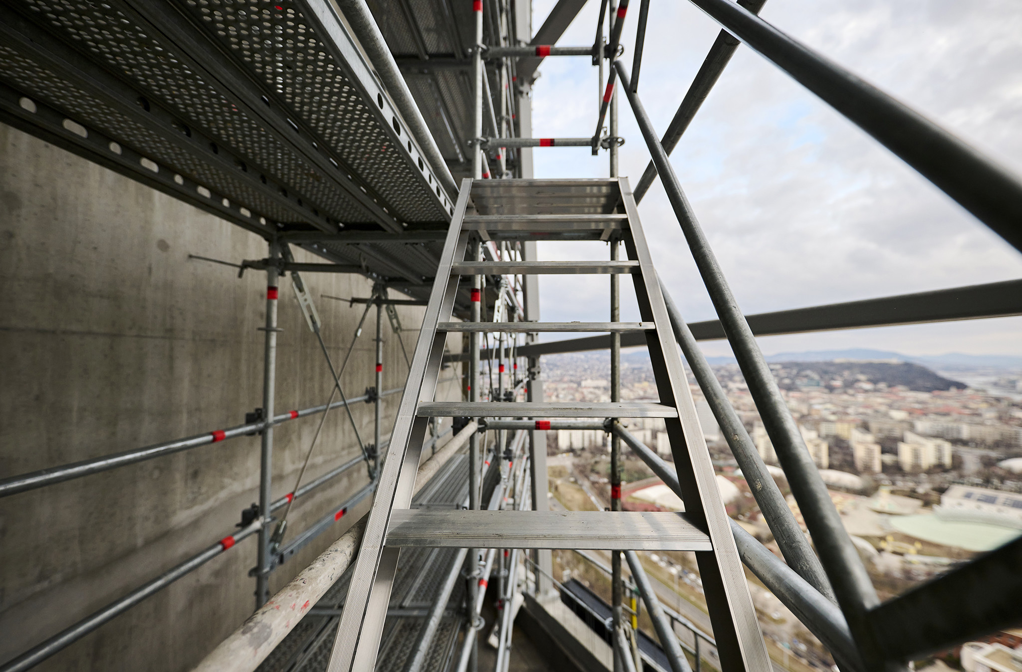 A grandiózus projekt különleges megoldásokat követelt a magasban folyó munkákhoz. A rendkívüli szélterheknek ellenálló, statikailag is helytálló Layher állványzat segíti a szakemberek munkáját.