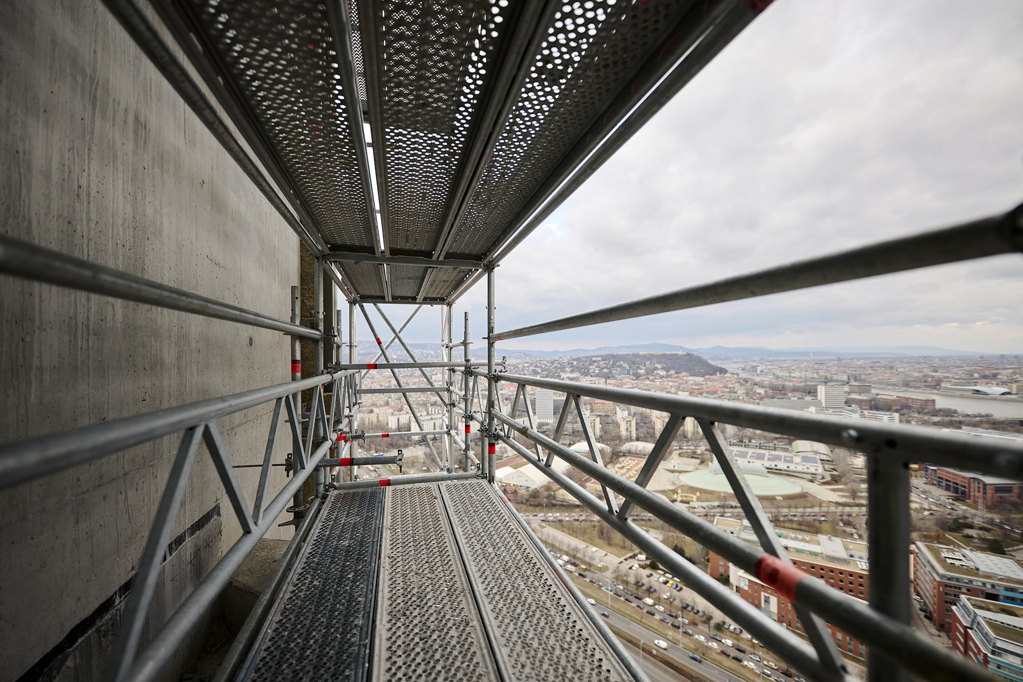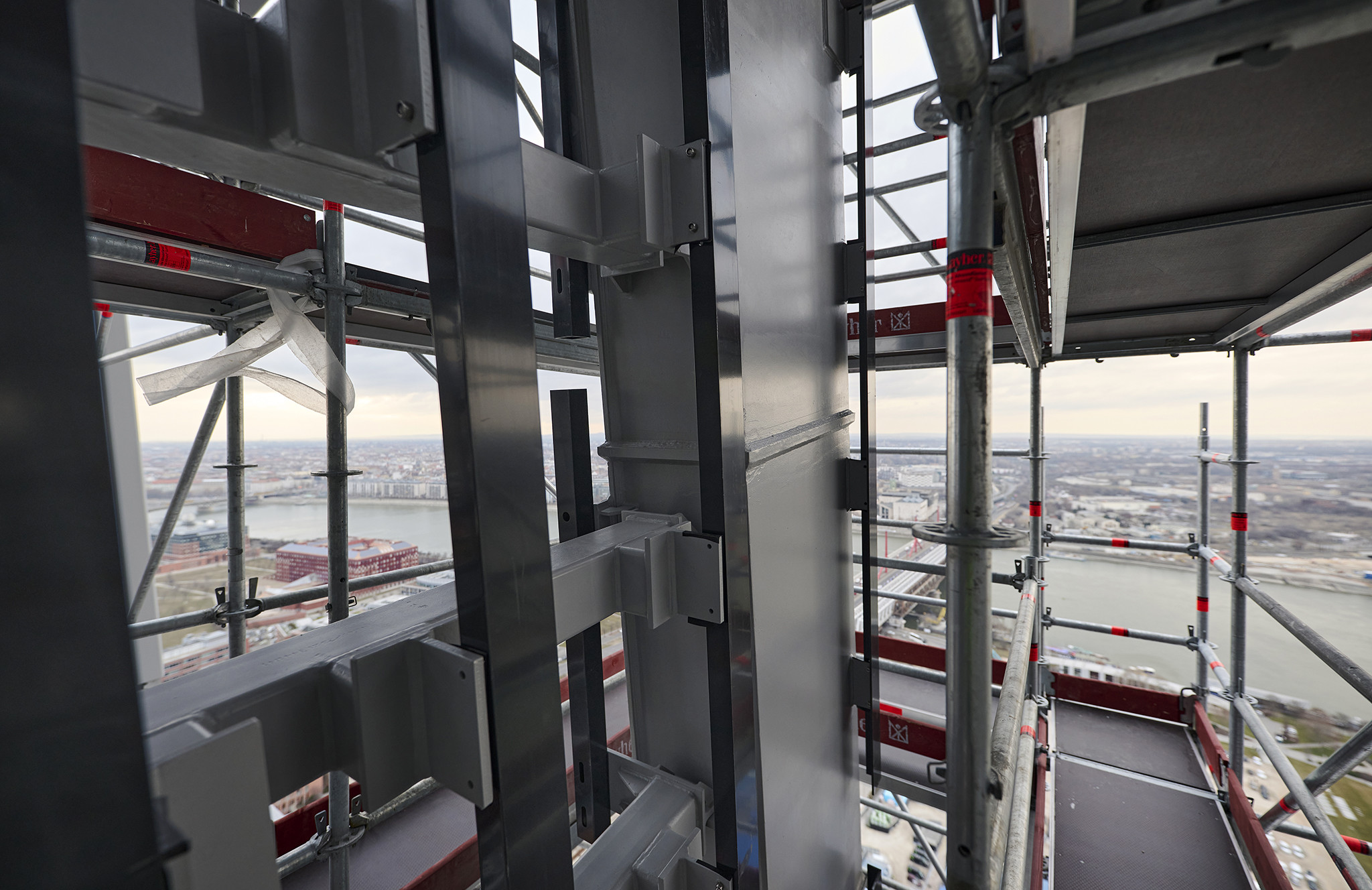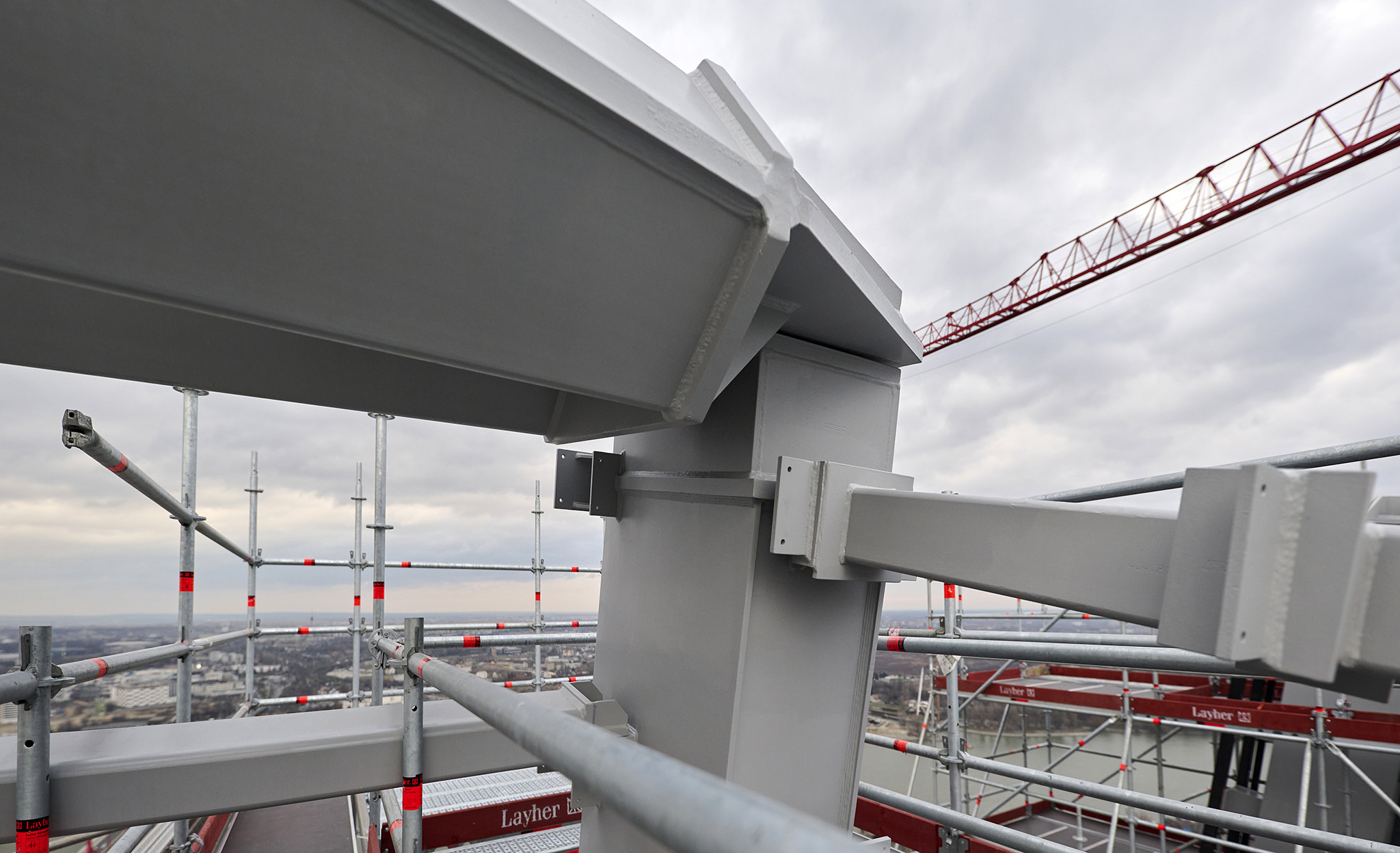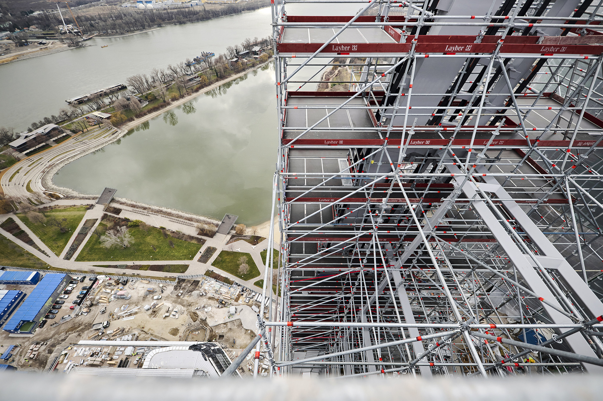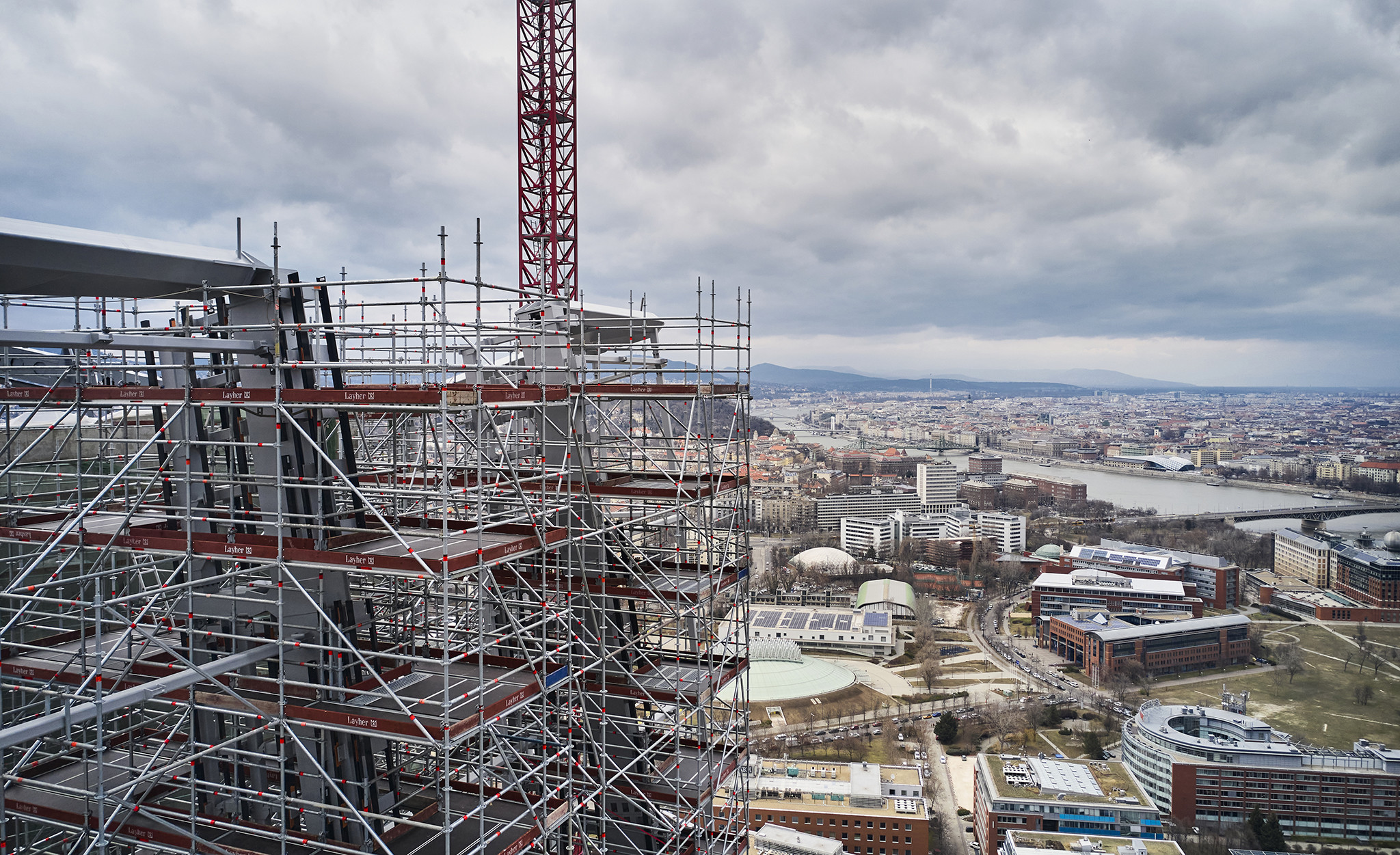A grandiózus projekt különleges megoldásokat követelt a magasban folyó munkákhoz. A rendkívüli szélterheknek ellenálló, statikailag is helytálló Layher állványzat segíti a szakemberek munkáját.