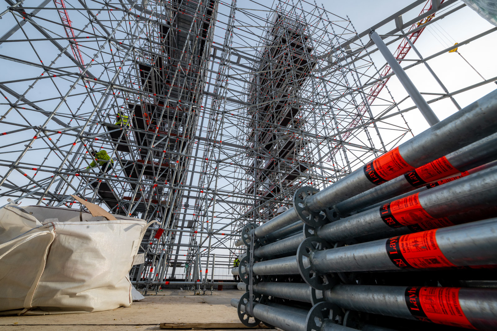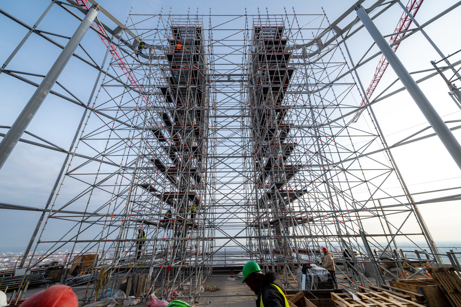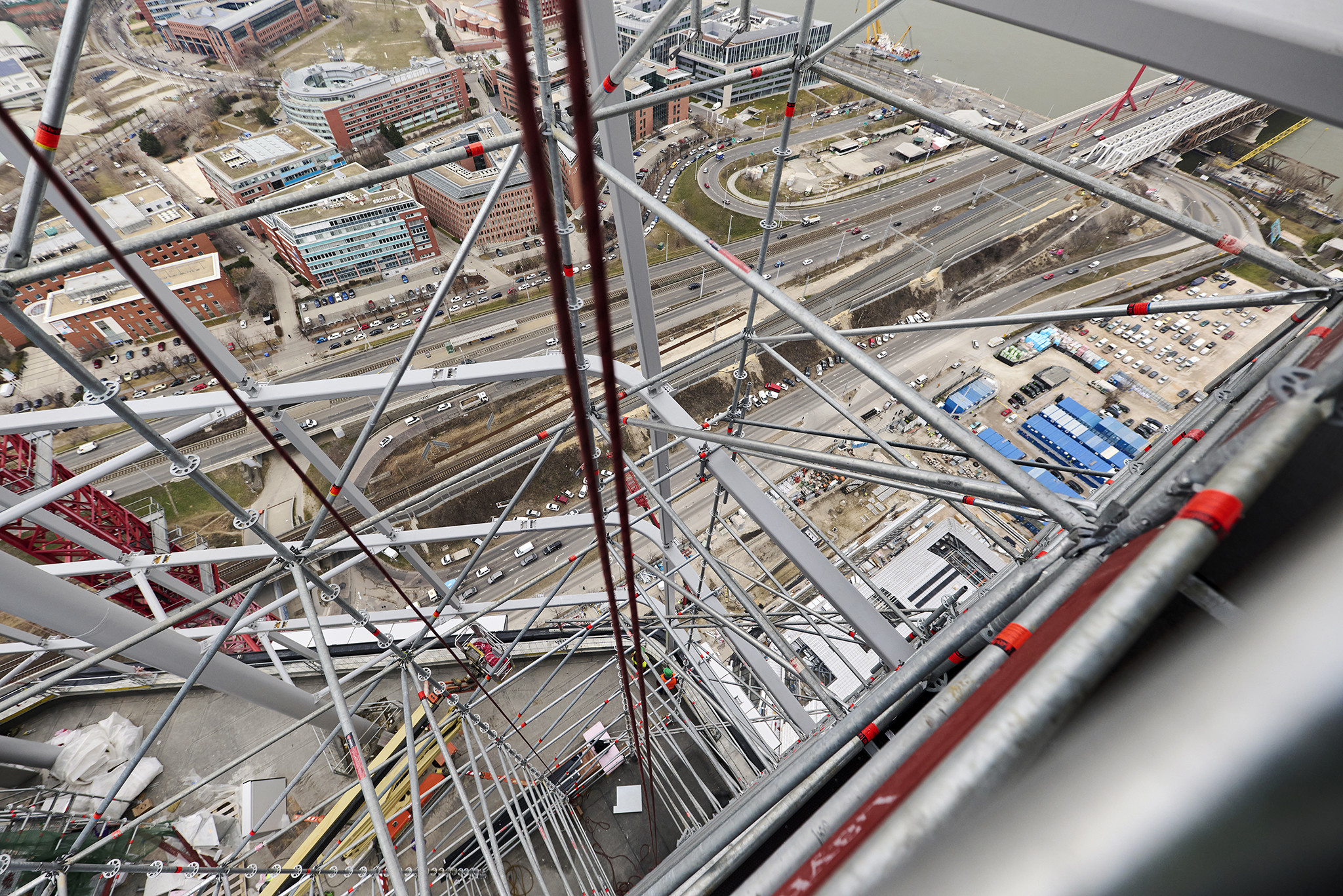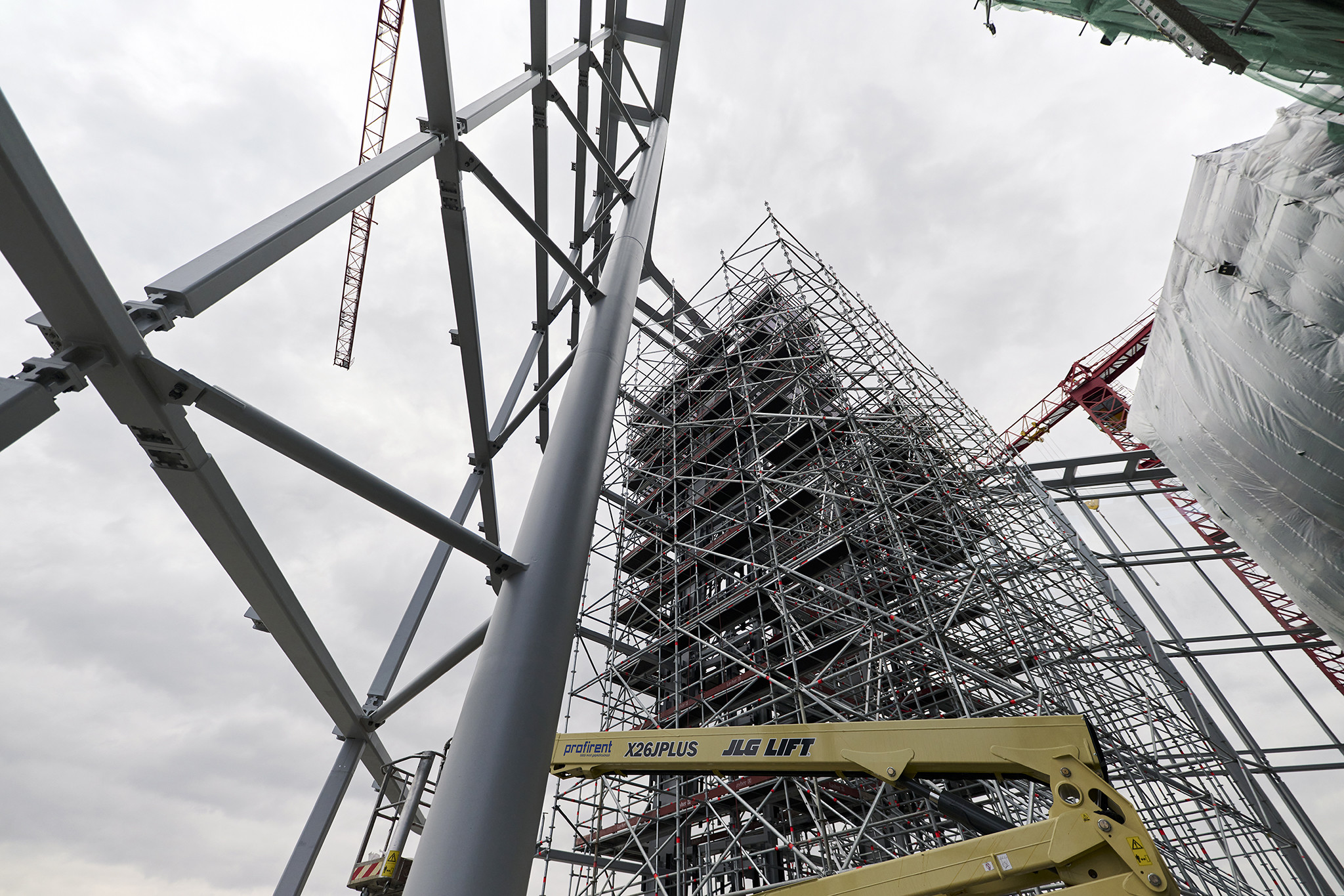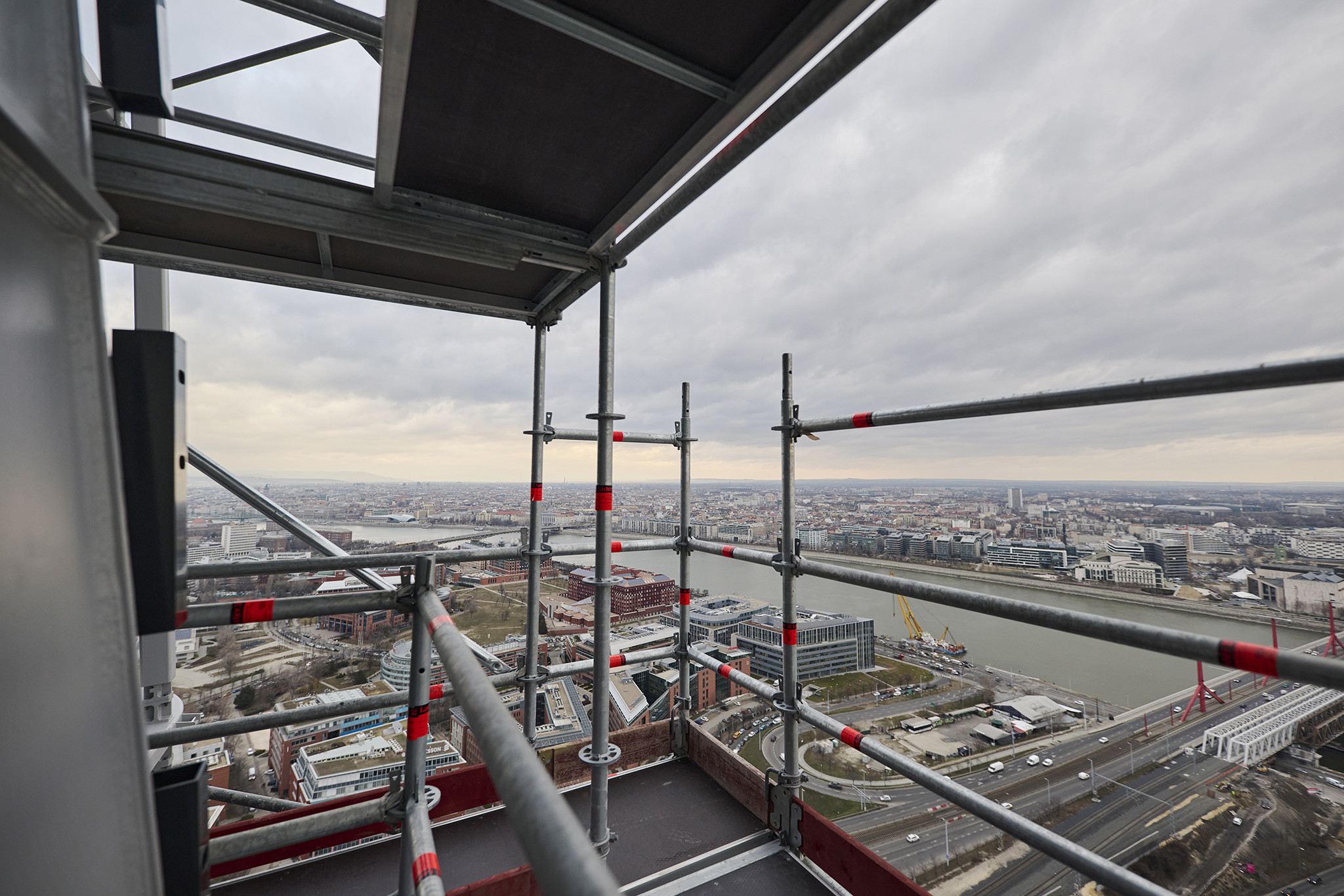 A grandiózus projekt különleges megoldásokat követelt a magasban folyó munkákhoz. A rendkívüli szélterheknek ellenálló, statikailag is helytálló Layher állványzat segíti a szakemberek munkáját.
