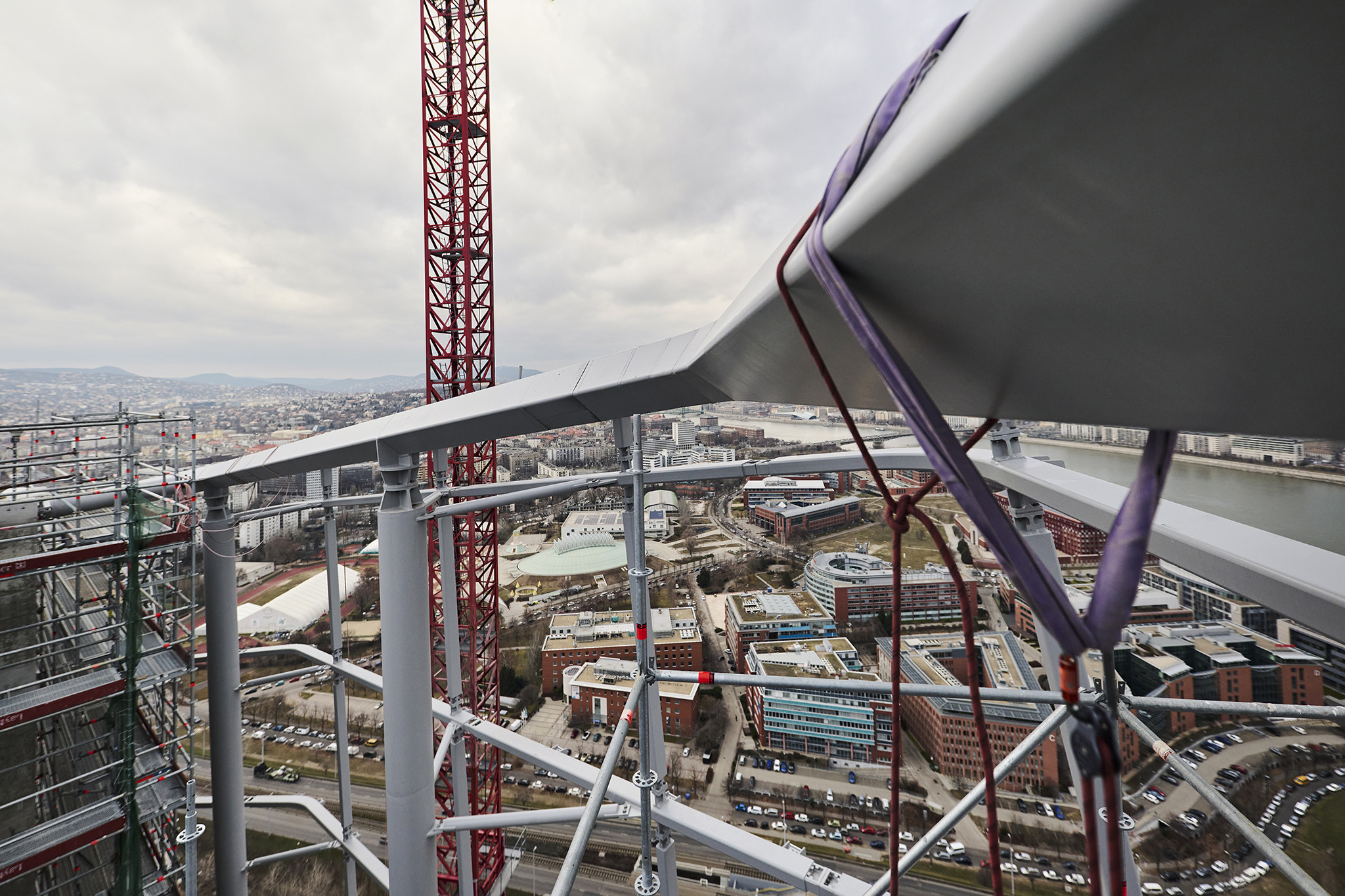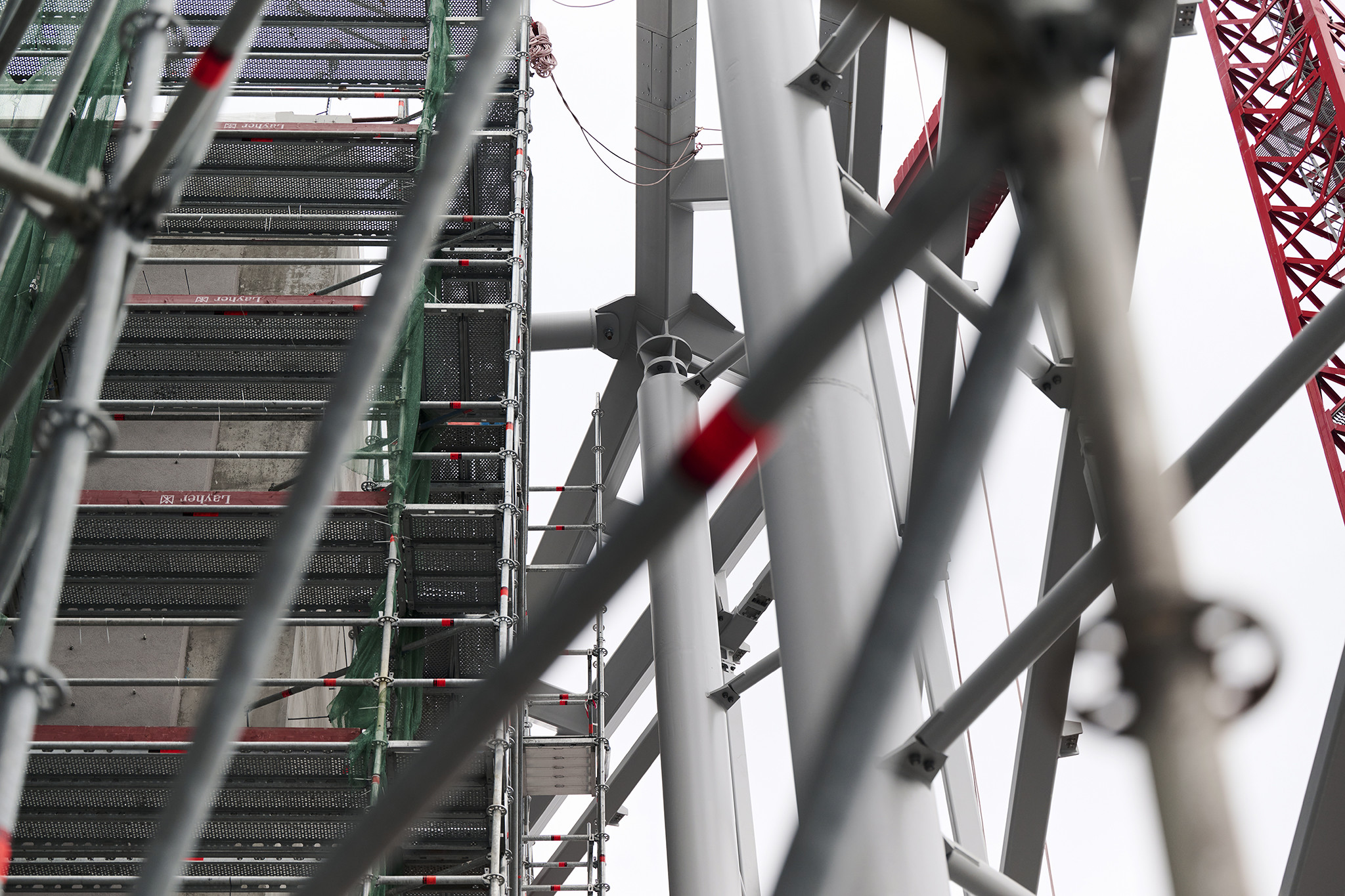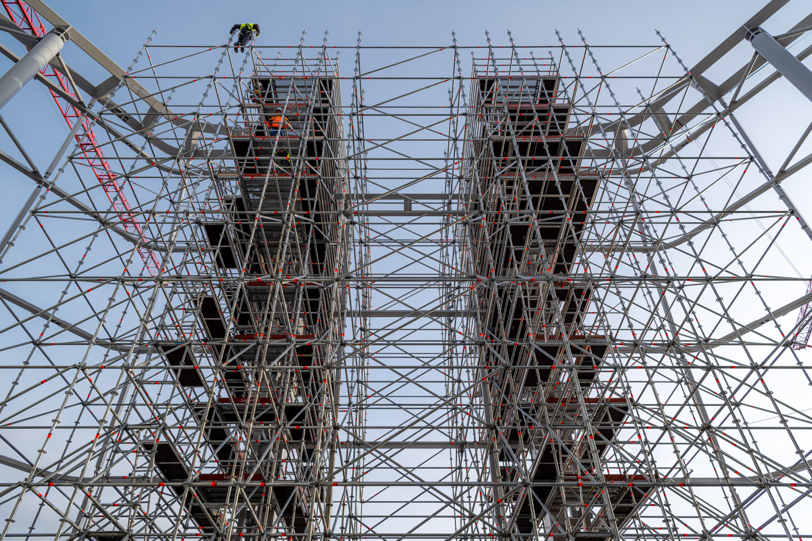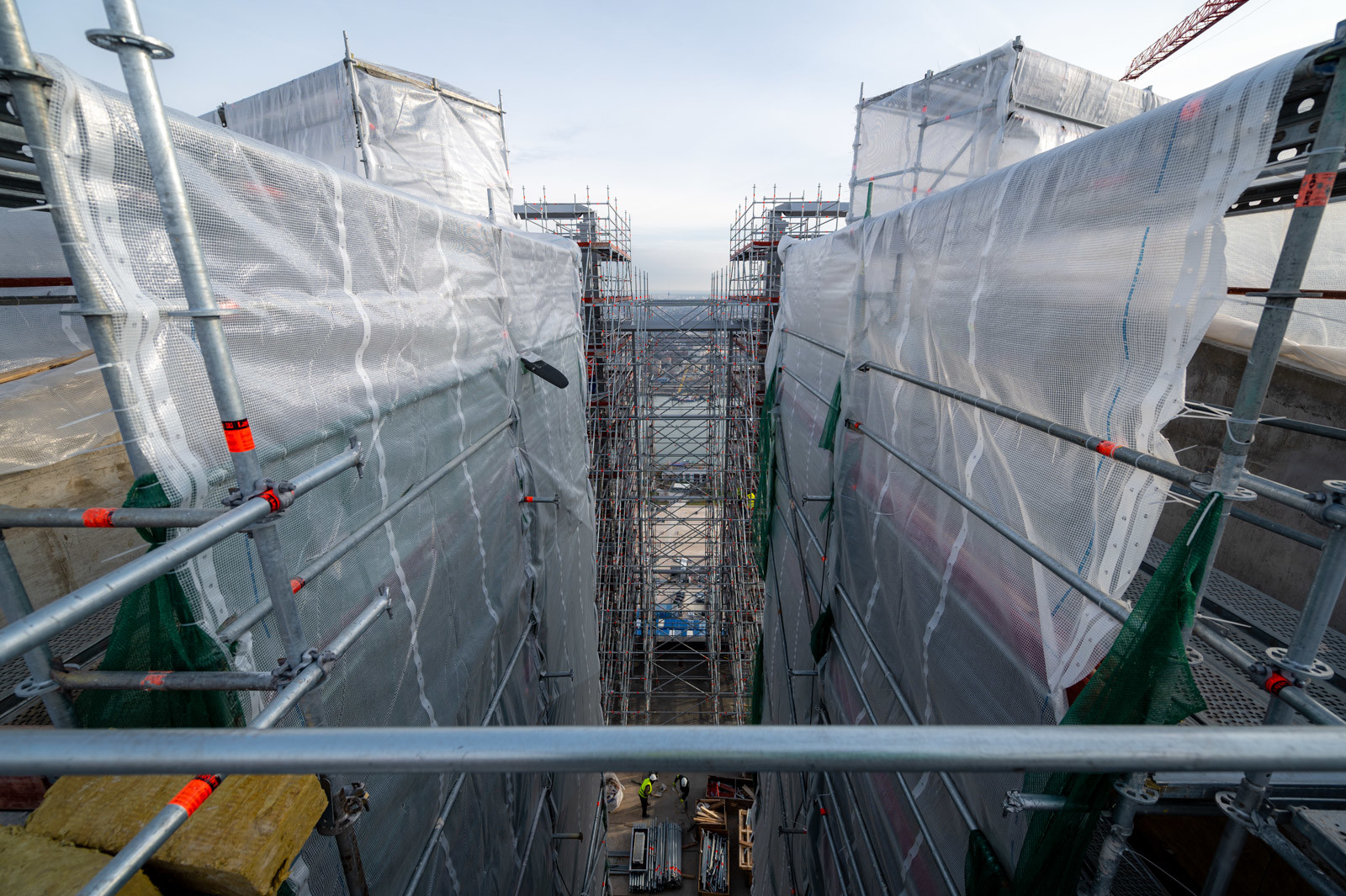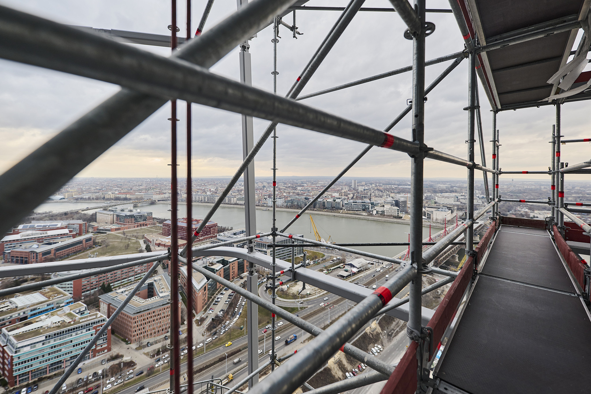 A grandiózus projekt különleges megoldásokat követelt a magasban folyó munkákhoz. A rendkívüli szélterheknek ellenálló, statikailag is helytálló Layher állványzat segíti a szakemberek munkáját.