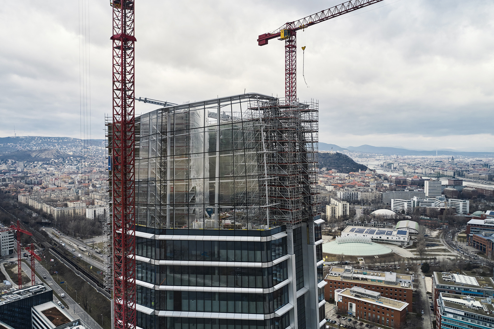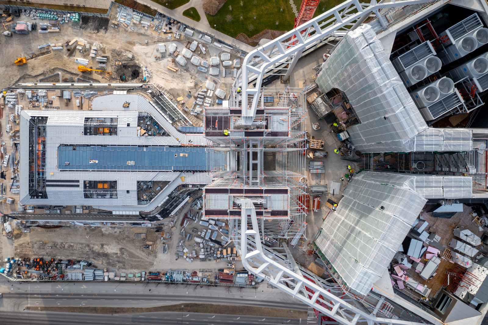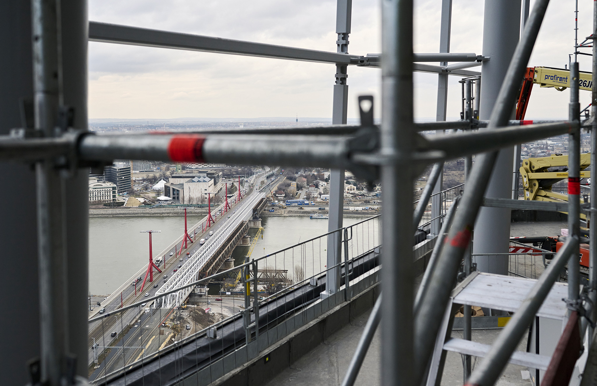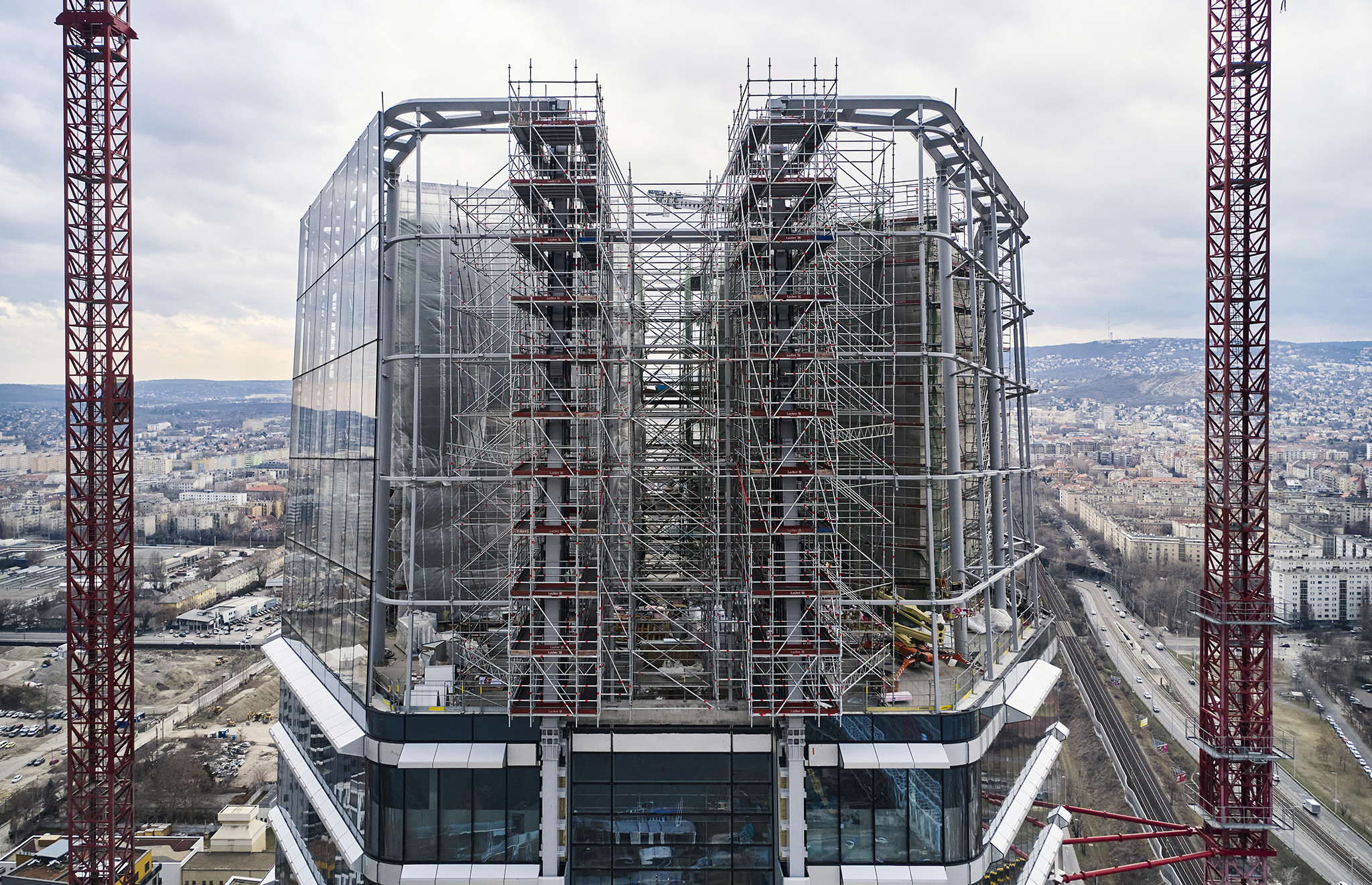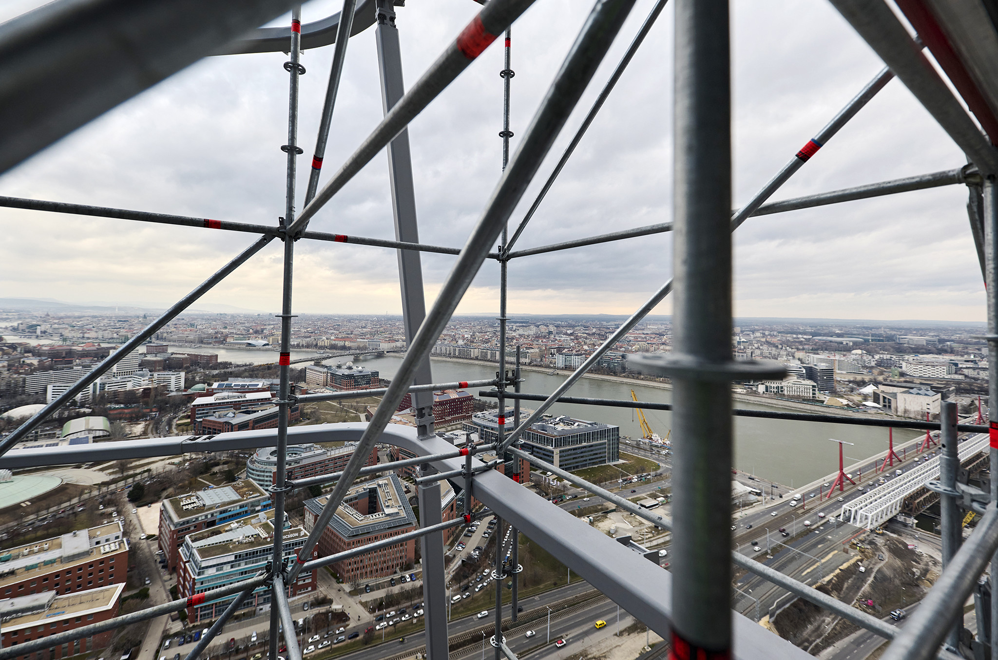 A grandiózus projekt különleges megoldásokat követelt a magasban folyó munkákhoz. A rendkívüli szélterheknek ellenálló, statikailag is helytálló Layher állványzat segíti a szakemberek munkáját.