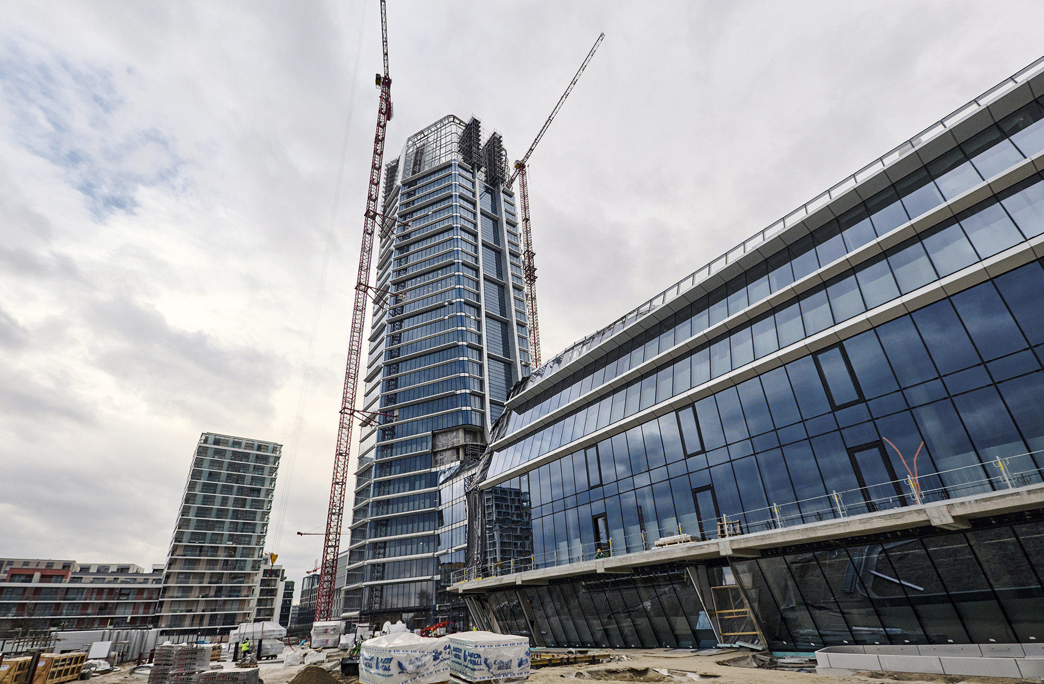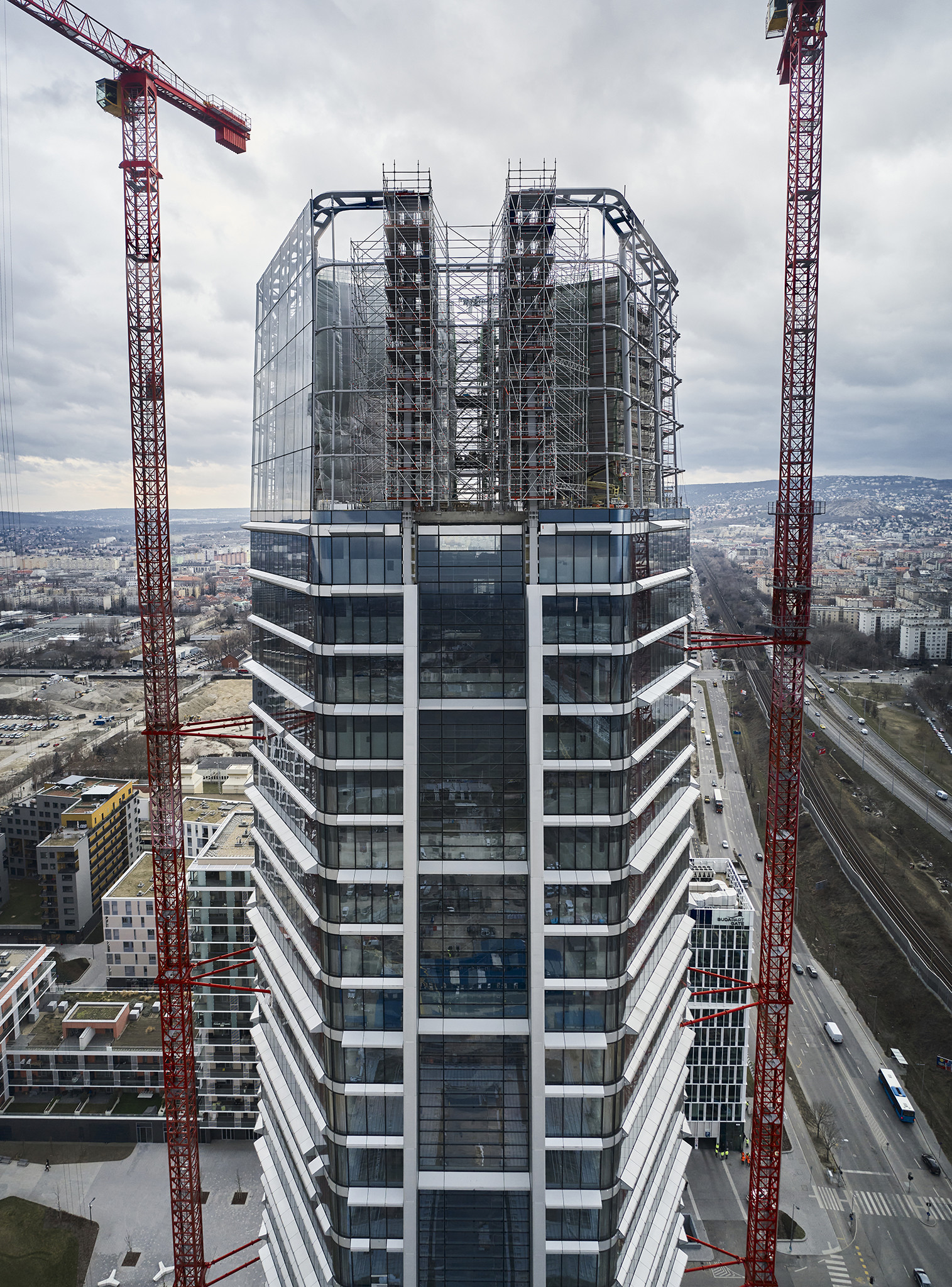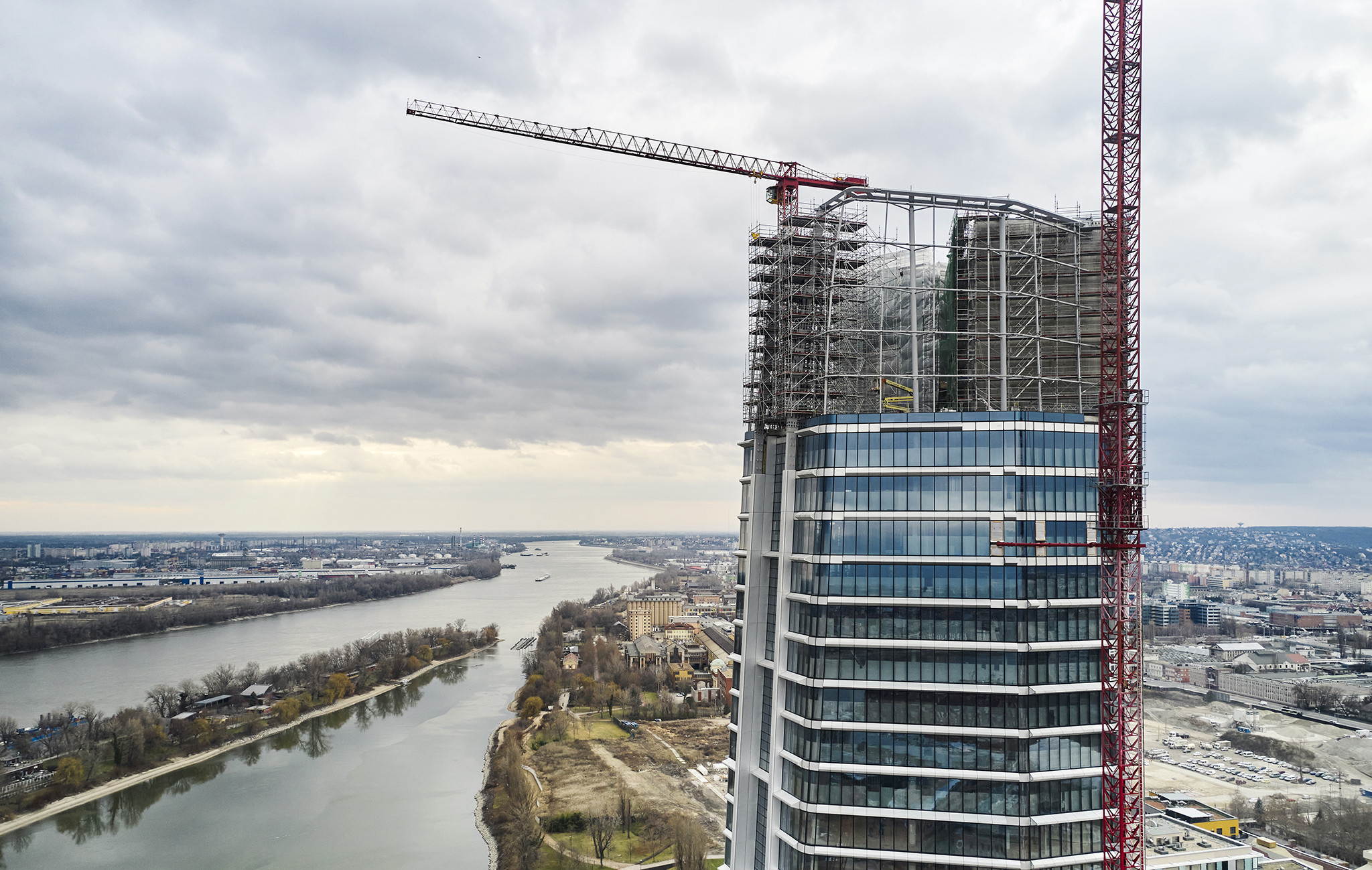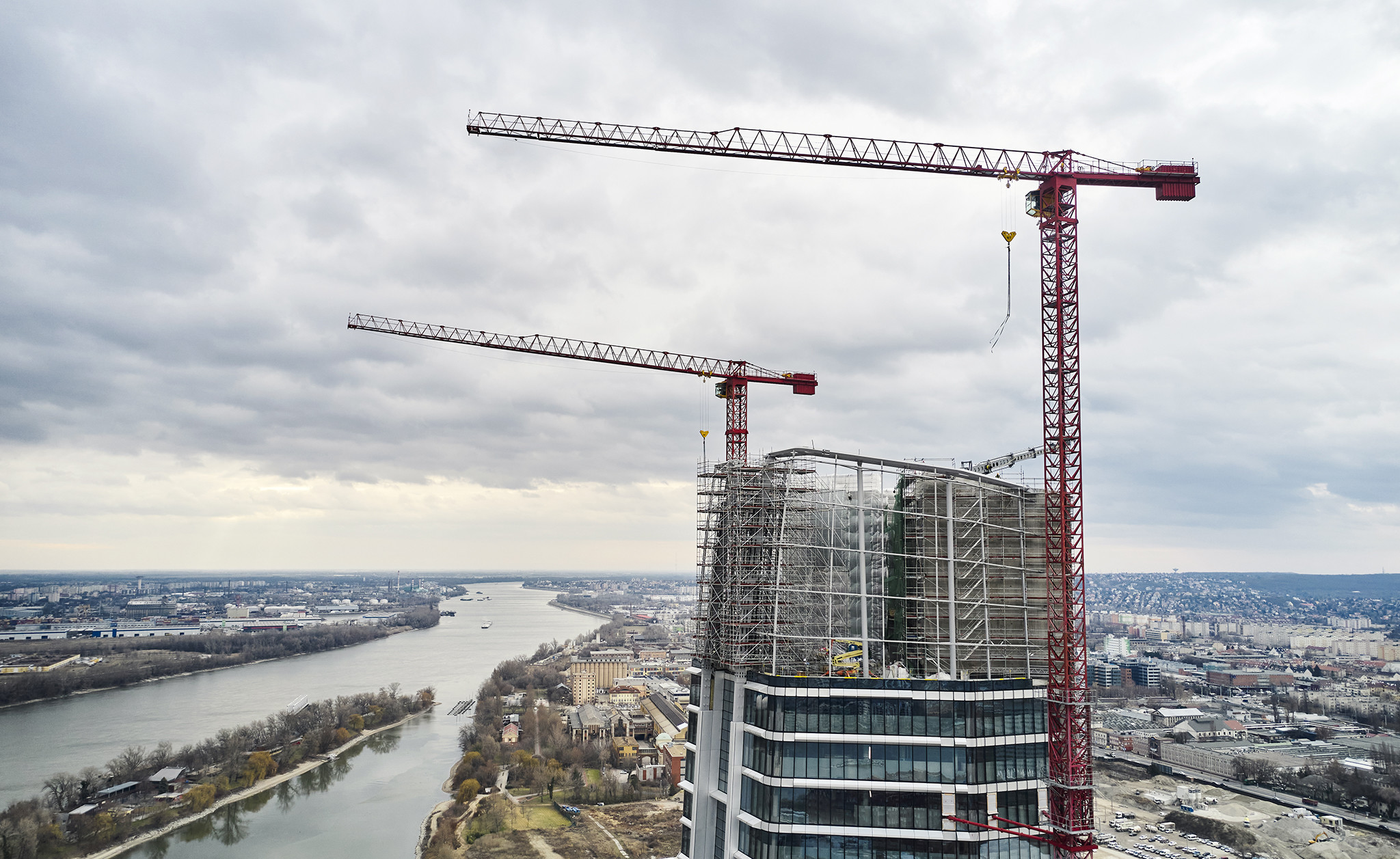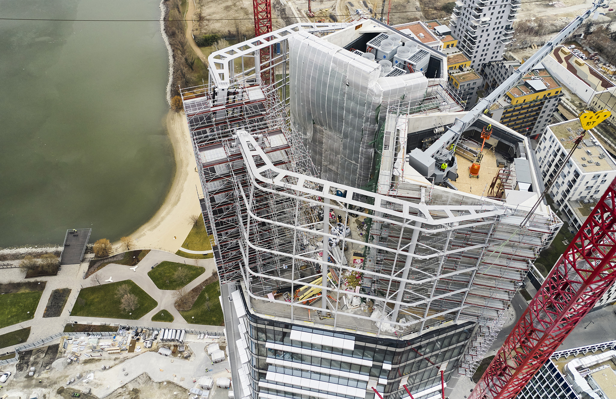 A grandiózus projekt különleges megoldásokat követelt a magasban folyó munkákhoz. A rendkívüli szélterheknek ellenálló, statikailag is helytálló Layher állványzat segíti a szakemberek munkáját.