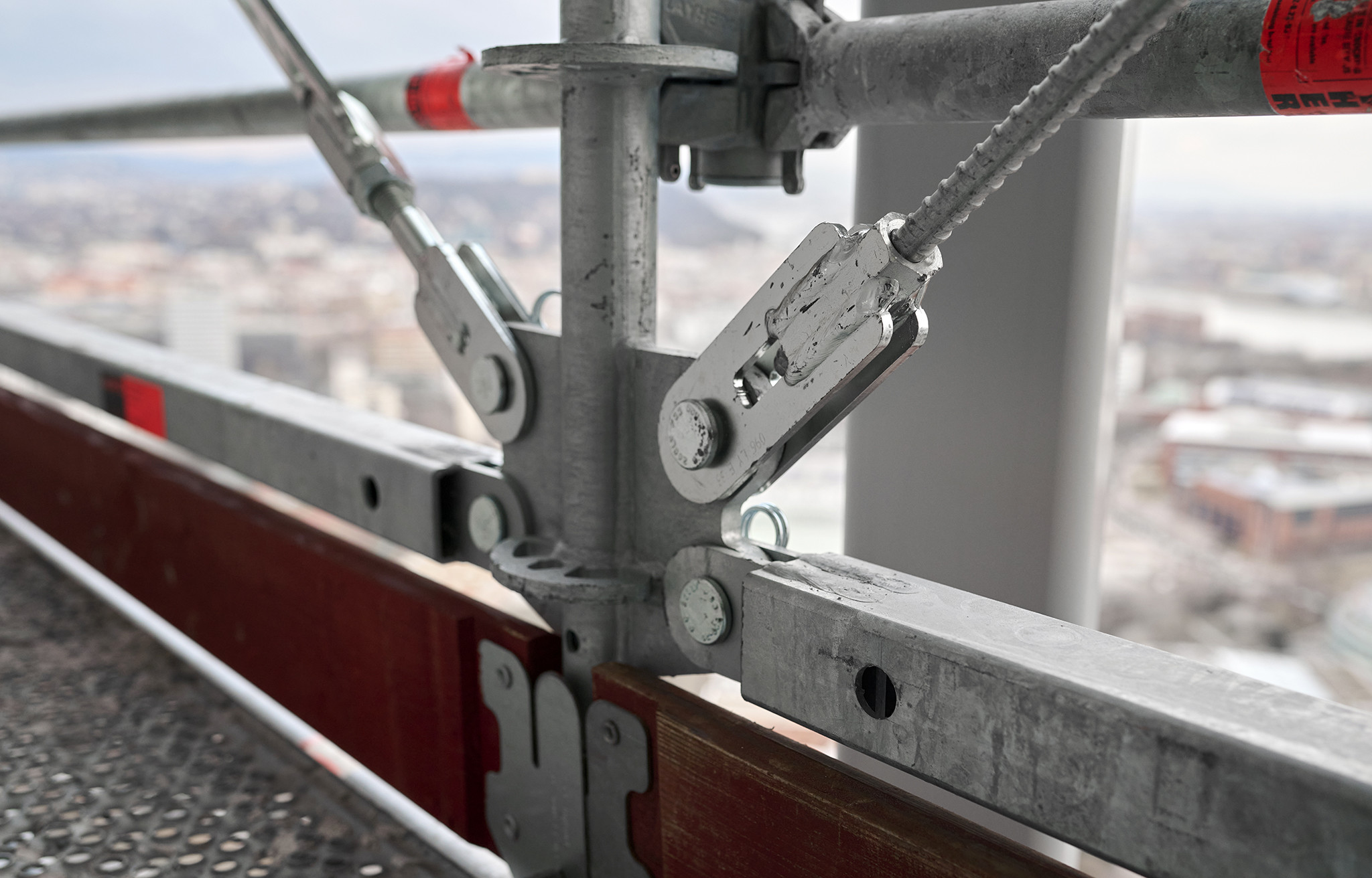 Extrém környezeti tényezőknek kell megfelelnie az állványzatnak, ugyanis a 29. építési szinten, 120 méteren indul az állványzat és hozzávetőlegesen 145 méter magasságig nyúlik fel. Ekkora magasságban a nagy szélteher miatt az állvány megfelelő rögzítése kulcsfontosságú. További nehezítő tényező az állványra kerülő ponyvaburkolat, mely a szélterhet akár háromszorosára is növelheti. A kellő stabilitás érdekében minden szintet rögzítettek a vasbeton falhoz és minden második mezőt átlós merevítőkkel láttak el, így még stabilabb állványszerkezetet sikerült kialakítani, mindezt rendszeren belül, addicionális szerkezetek bevonása nélkül érték el.