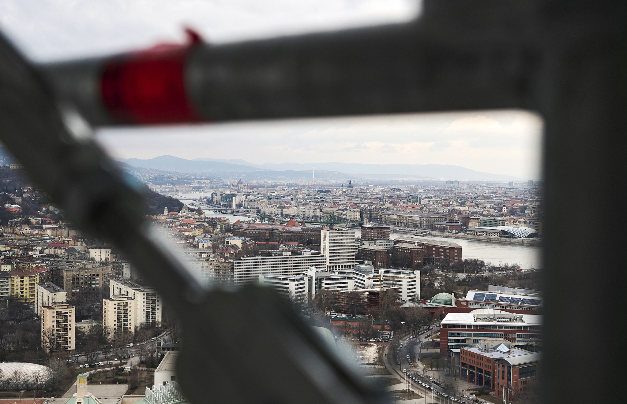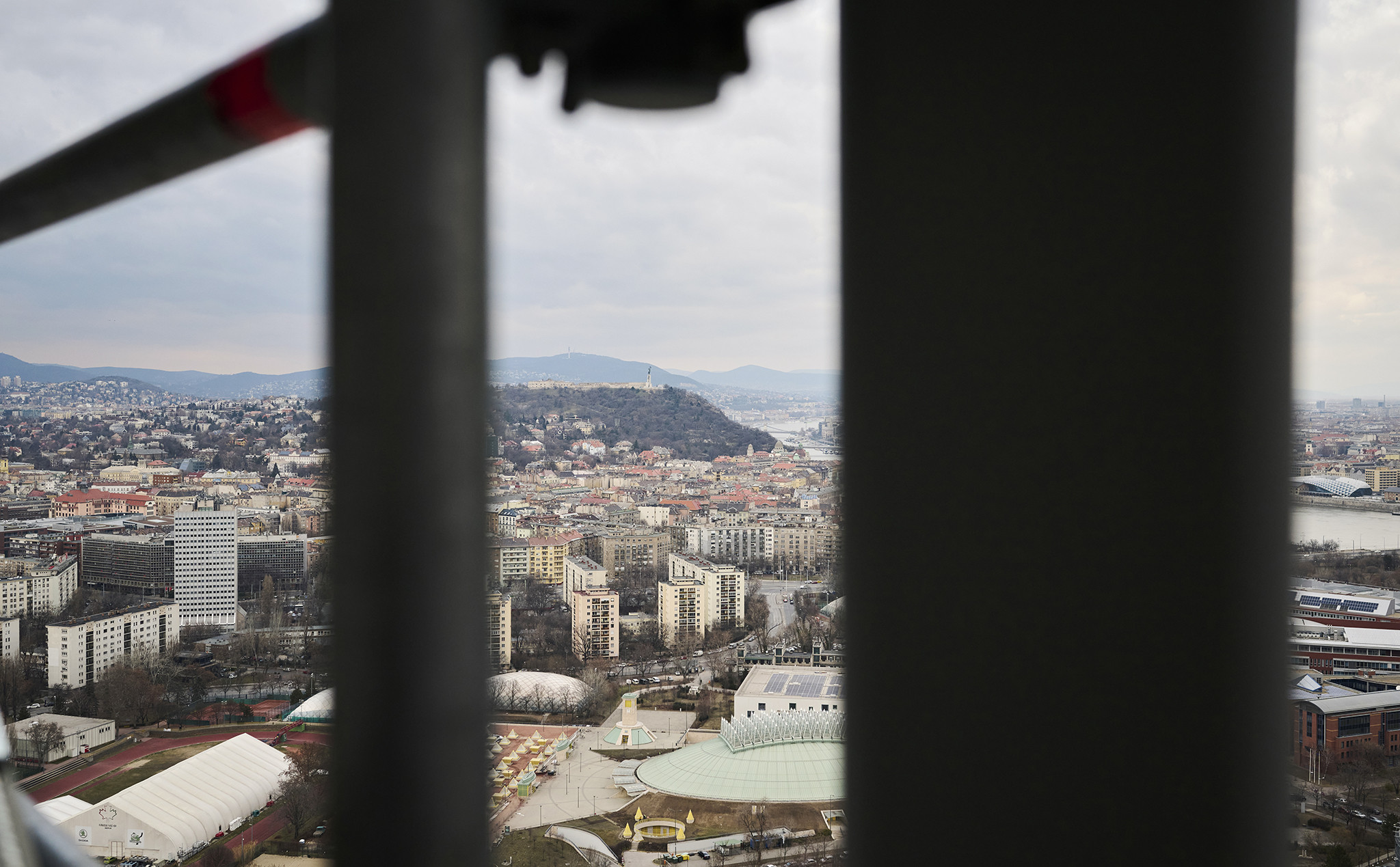 Ezt az állványt lefelé terjedő irányban is szükséges volt bővíteni, így egy függesztett állványzatot készítettek a szakemberek a kivitelezési munkálatok támogatására. „A függesztett állvány a zárófödémhez képest mínusz 12 méterig biztosítja a munkavégzés feltételeit. Rögzítési lehetőség itt sem volt a homlokzaton, ezért Alumínium 750 rácsos tartók biztosítják a kellő szerkezeti merevséget” – tette hozzá Tóth Patrik.