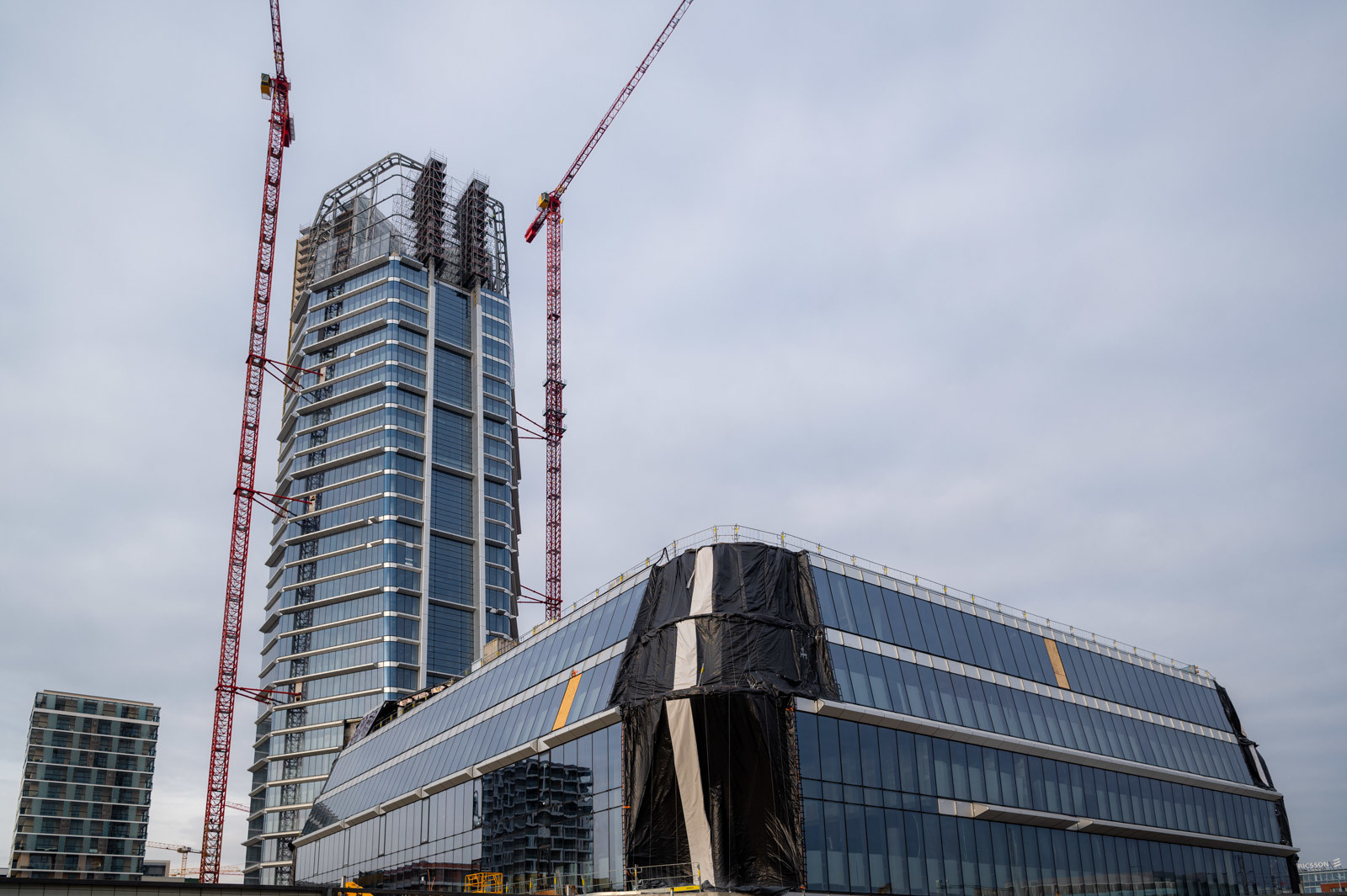 A harmadik és egyben leglátványosabb koronaállvány az a különálló állványszerkezet, amely a MOL Campus keleti oldalán helyezkedik el és a két íves acélpillér burkolásához alkalmazták szerelőállványként.