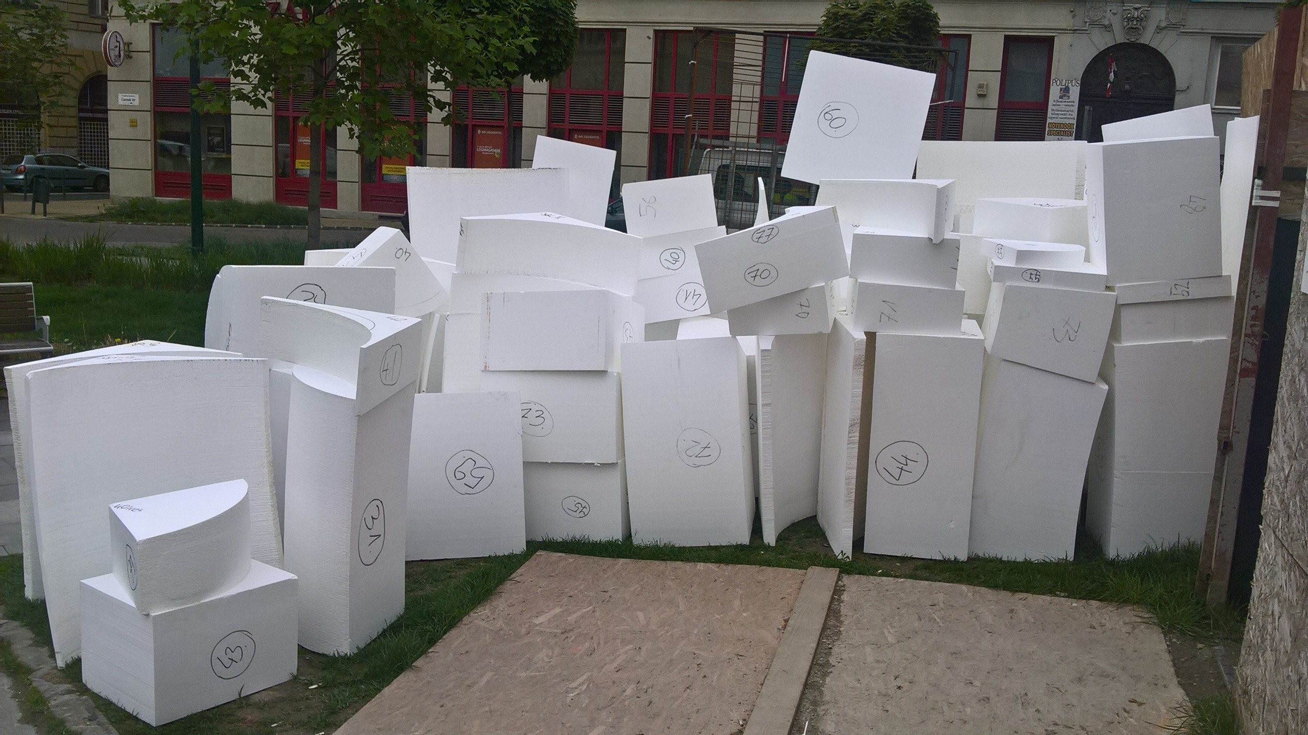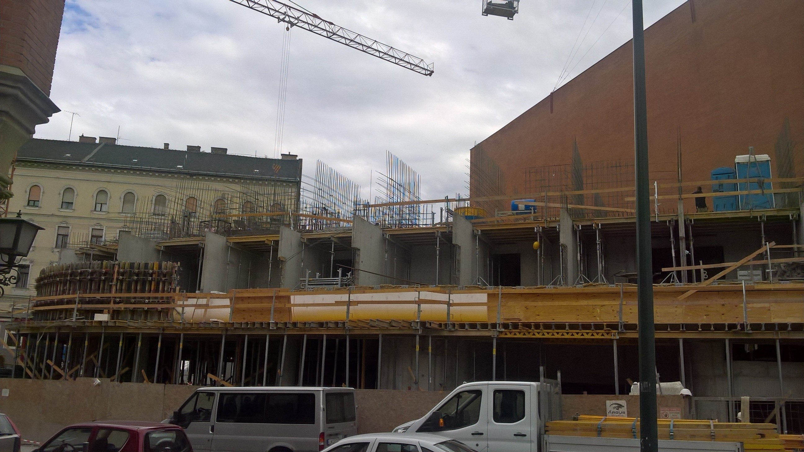 „Ezt egy két centiméter vastagságú gumilemezzel értük el, melyet a kontra oldali zsaluzat héjára helyeztünk el a zsalutábla elhelyezése előtt. Ehhez a NOEplast térbeton matricája KAIRO típusát használtuk. Közvetlenül Németországból szállítottuk be a zsalumatricákat, összesen majdnem egy tonnát. A zsalumatricákkal úgy kalkuláltunk, hogy legalább kétszer használunk majd egy-egy matrica elemet.”