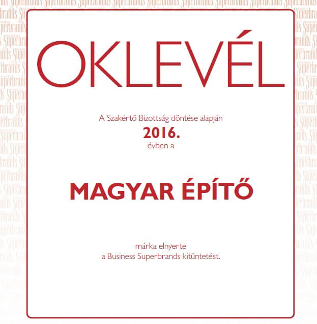 Idén kilencedik alkalommal ítélte oda a Superbrands Magyarország Szakértői Bizottsága a Superbrands-díjakat. A győztesek közé a Magyar Építő Zrt. is bekerült, az 1889-ben alapított magasépítő cég a Business Superbrands kategóriában érte el a sikert.