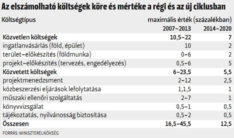 A kormány erőteljesen korlátozta az új ciklusban az elszámolható költségek mértékét, ami így tehát a pályázatírók díjazási rendszerét alakítja át. Az elszámolható költségek között például a projektmenedzsmentre csak legfeljebb 2,5 %-os költségkeret áll rendelkezésre a pályázati kiírások többségénél. Mindez persze azt a célt is szolgálja, hogy az EU-tól megkapott forrásokat minél hatékonyabban és a tényleges projektekre fordítsák.