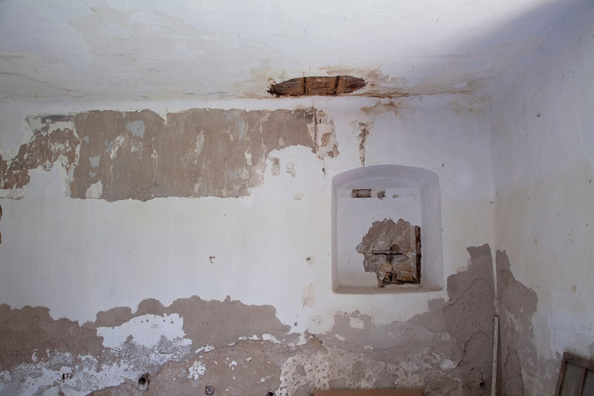A balatoncsicsói plébánia belső falazata a felújítás előtt és után. A rekonstrukció a REVEAL - A kulturális örökség gazdasági és társadalmi hatásainak feltárása - elnevezésű projekt keretében készült, a Baumit támogatásával (Tervező: Félix Zsolt, Hőnich Richárd - Építész Stúdió, kivitelező: Vektorbau Invest Kft.).