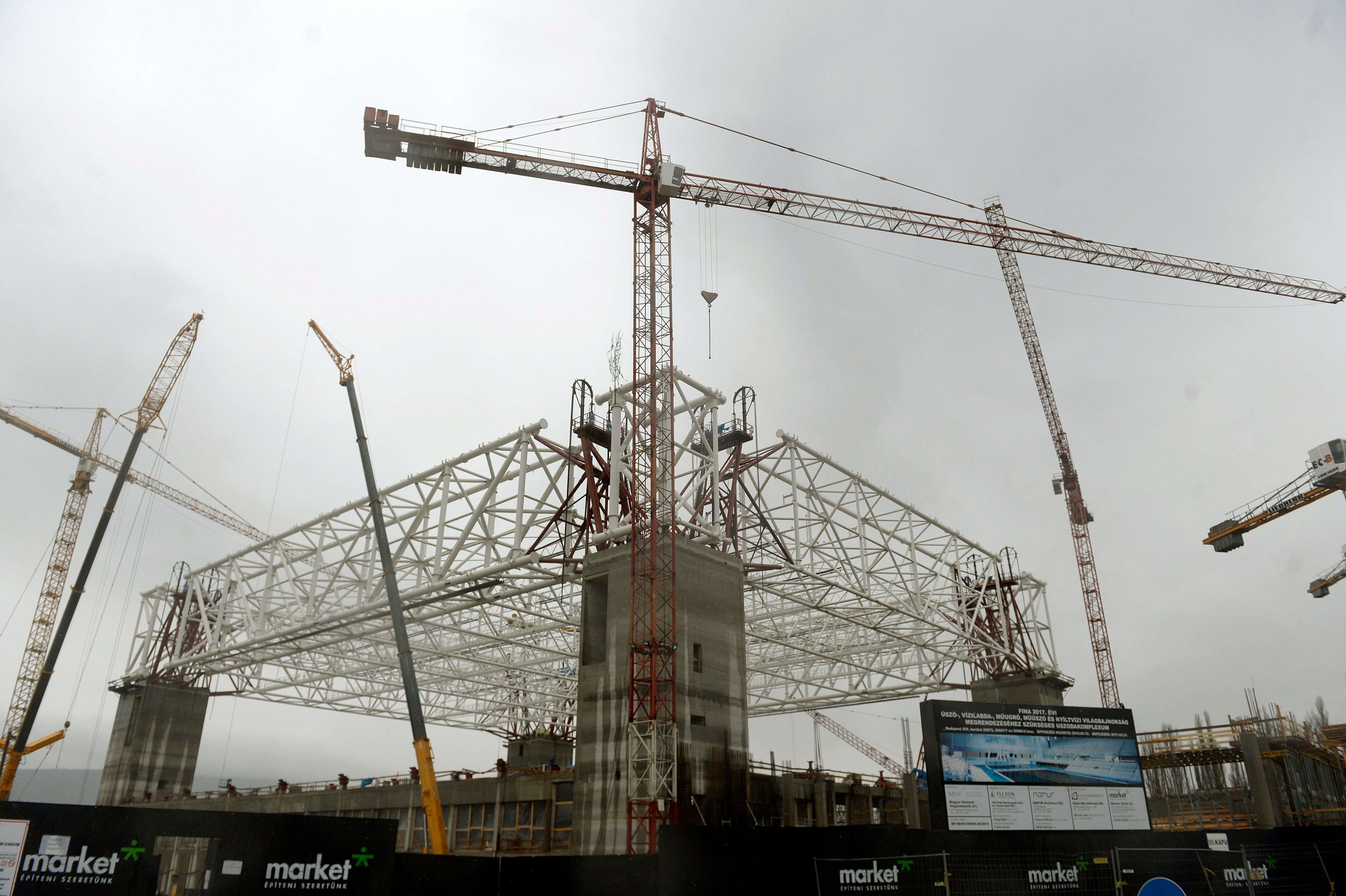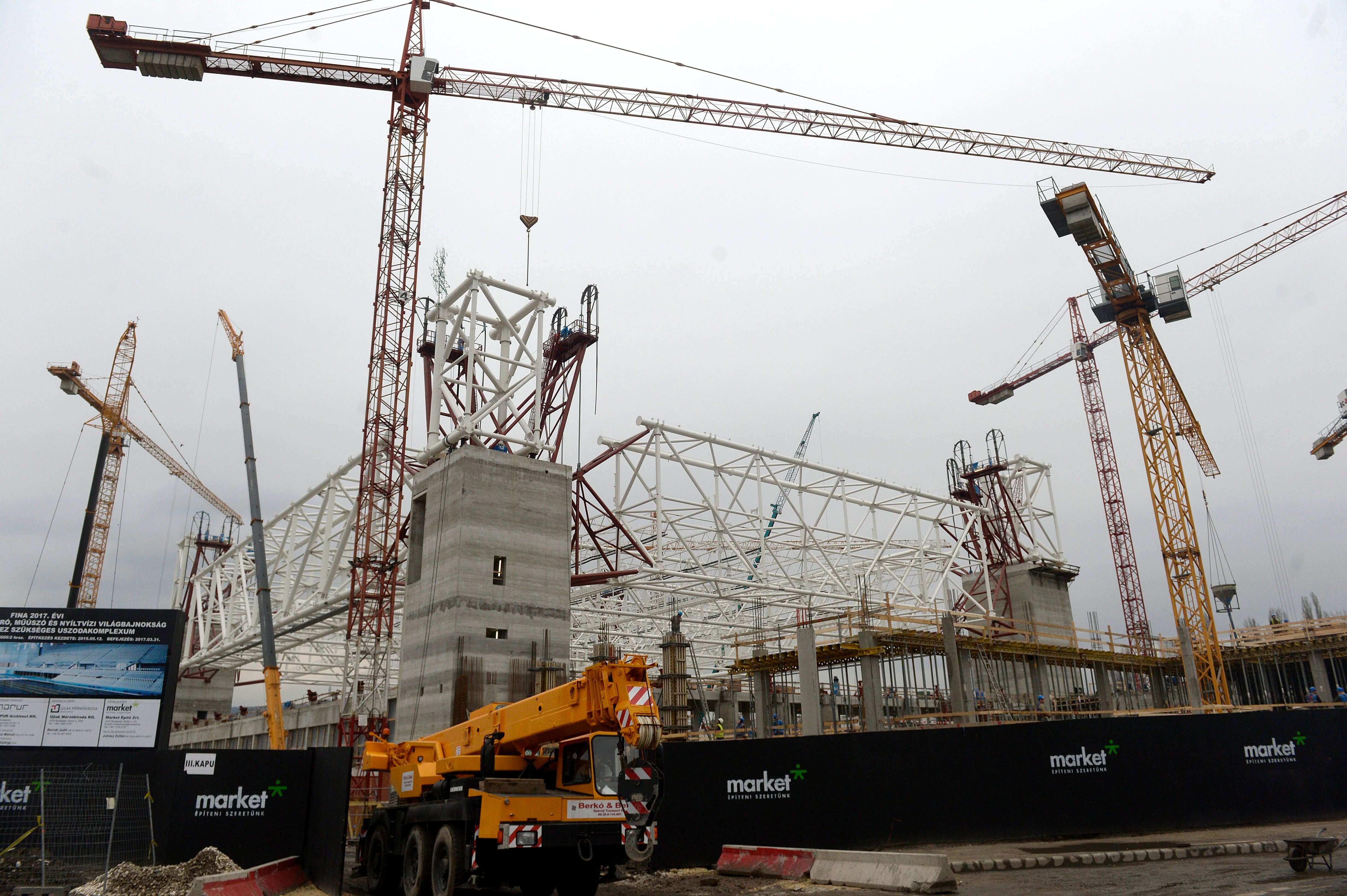 A 2017-es vizes világbajnokság központi uszodájának 2400 tonnás acél tetőszerkezetet a földön szerelték össze, majd 44 méter magasan egyben a helyére került egy Magyarországon először használt speciális technológiával. Így megkezdődhet az épület homlokzatának kialakítása. „A rekordidő alatt épülő úszóarénát magyarok tervezik és építik” - emlékeztetett a kormánybiztos.