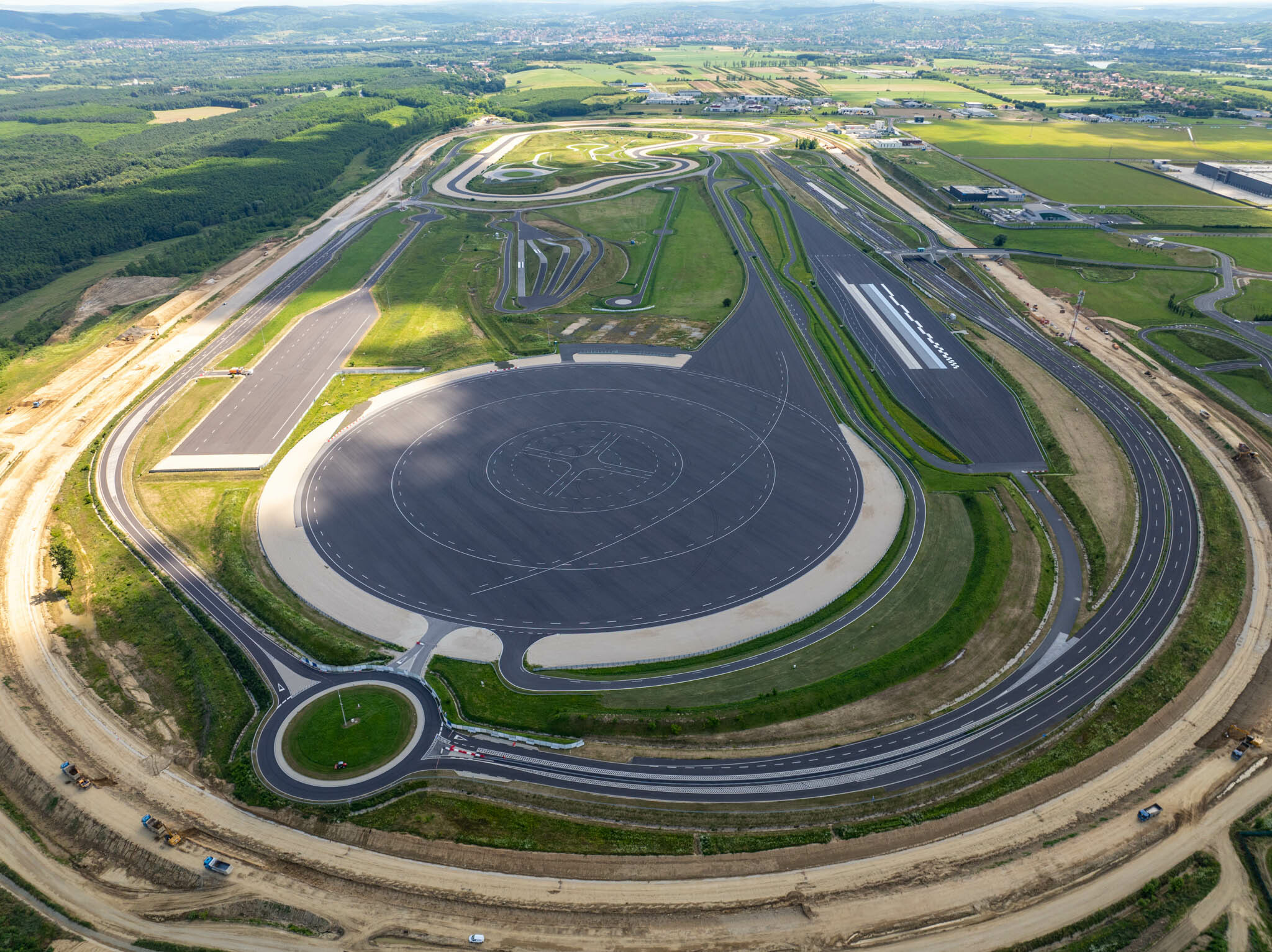 Mára 13 pályaelem készült el, mindegyik úgy épült meg, hogy egyikről a másik ne nagyon látszódjon. Különböző meredekségű csúszófelületek, Smart Citynek nevezett mintaváros (az önvezető autók teszteléséhez) és egy másfél kilométeres autópályaszakasz is akad köztük. Mind közül pedig (az oválpályát kivéve persze) a dinamikus felület és a dombok megépítése volt a legkeményebb. Izgalmas feladat volt a fékfelület kialakítása is, ahol egy aszfalttal körbezárt területen kellett nyolc különböző súrlódású felületet megépítenünk – többek között háromfajta aszfalt, betonfelület, síkos csempe és vízfelfutást imitáló szakasz is készült.