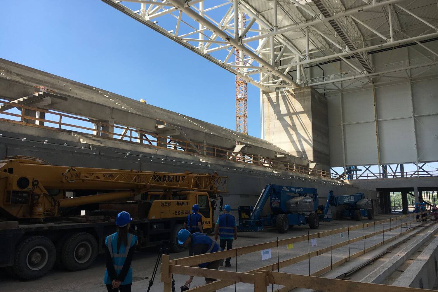Ennek megfelelően a kivitelező Market Építő Zrt.-nek feszített tempóban mindössze két év alatt kell elkészülnie a munkával, ami rekordidőnek számít. Scheer Sándor, a cég vezérigazgatója a magyarepitok.hu-nak nyilatkozva elmondta, egy ilyen jellegű beruházás tervezéssel együtt normál körülmények között akár öt-hét évig is eltarthat, miután csak az előkészítése másfél-két év bármelyik országban. A magyar tulajdonban levő cég napi 24 órában dolgozva eddig maximálisan megfelelt a követelményeknek, és minden jel arra utal, hogy a jövő márciusi határidőig befejezi a beruházást.