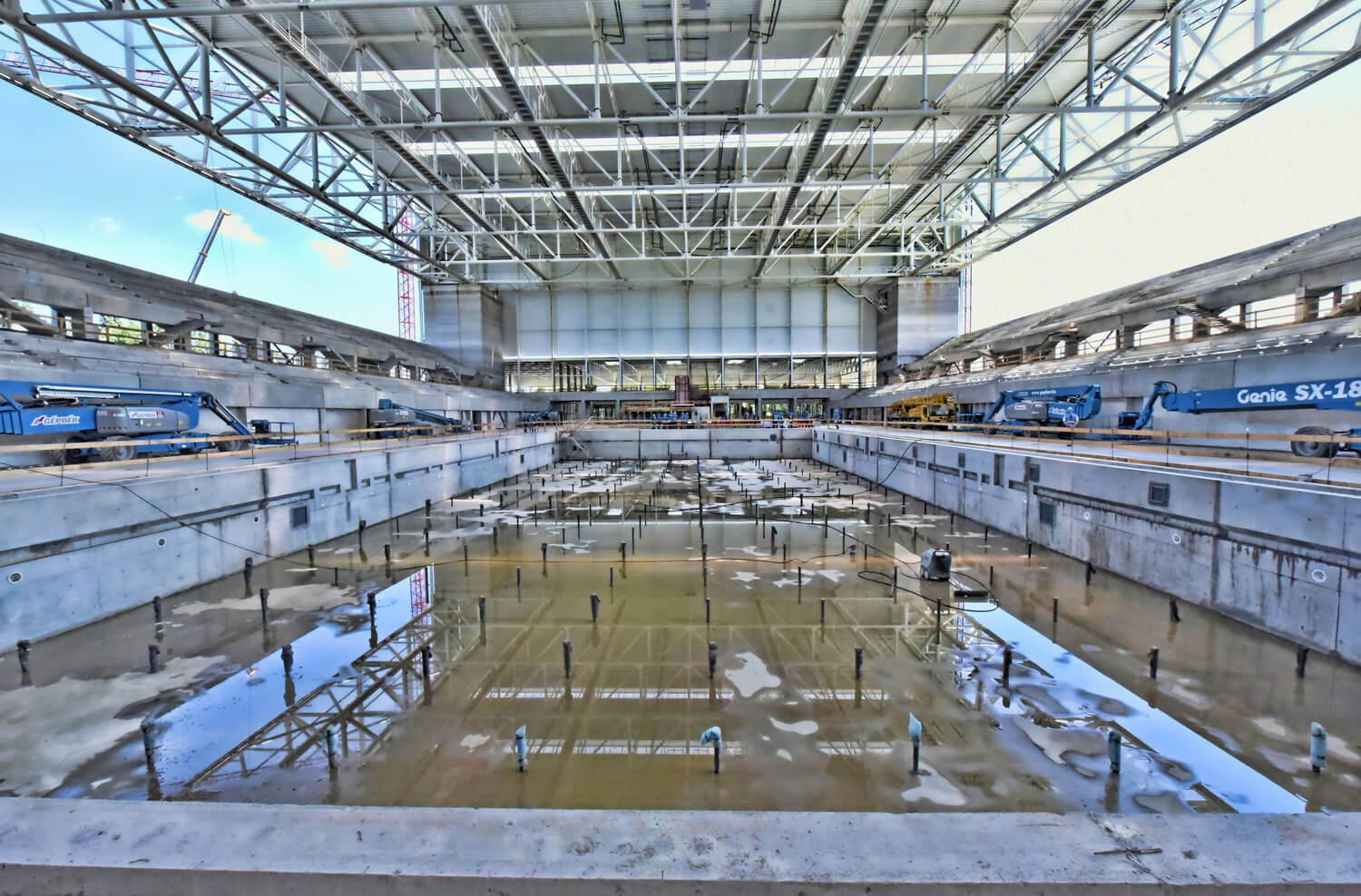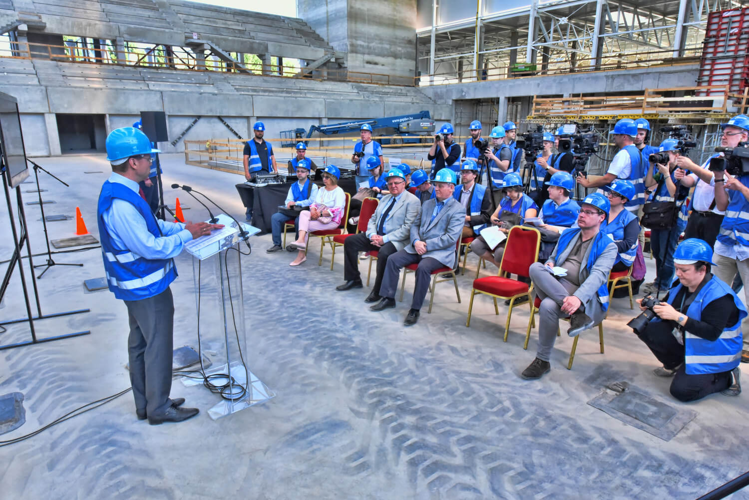 A kivitelezés részleteiről Fürjes Balázs, a beruházásért felelős kormánybiztos tartott beszámolót a leendő úszópalota versenymedencéje mellett. Emlékeztetett rá, hogy a mexikói Guadalajara tavalyi visszalépése után Magyarországnak alig maradt ideje a felkészülésre: „A vb első világcsúcsa a parton születik.”
