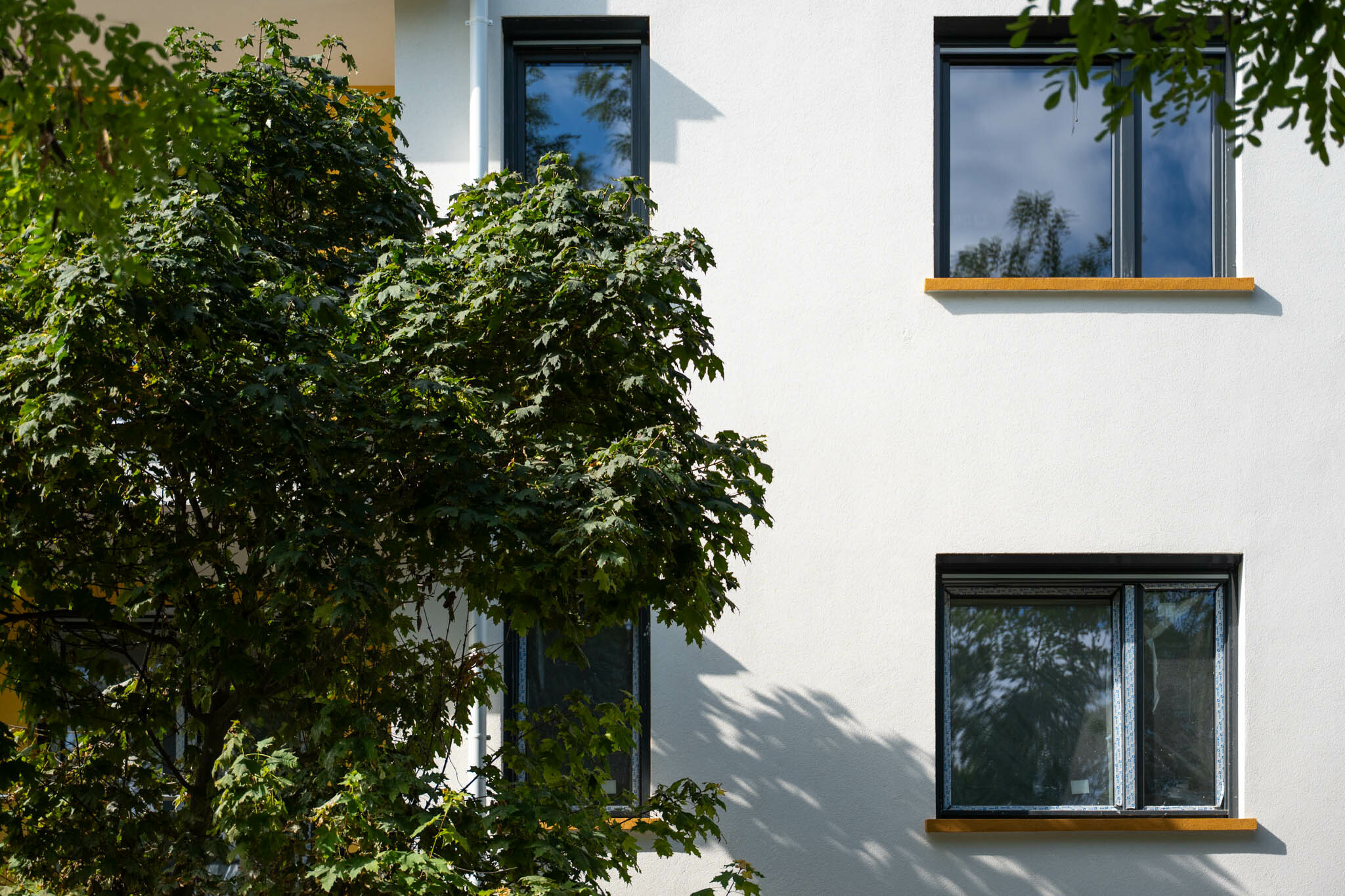 Emellett fontos szerepet játszott a projektben a Cemix 2704 StrukturOLA Dekor színező vakolat, akárcsak a Cemix 2780 Decorol lábazati és díszítő vakolatot. Ezen a ponton külön kihangsúlyozták a gyártó cég hozzáállását a projekthez: „A Cemix az extra kérésünket teljesítve olyan lábazati színt gyártott le, amely a kereskedelmi színpalettában nem található; ráadásul viszonylag rövid határidővel.”