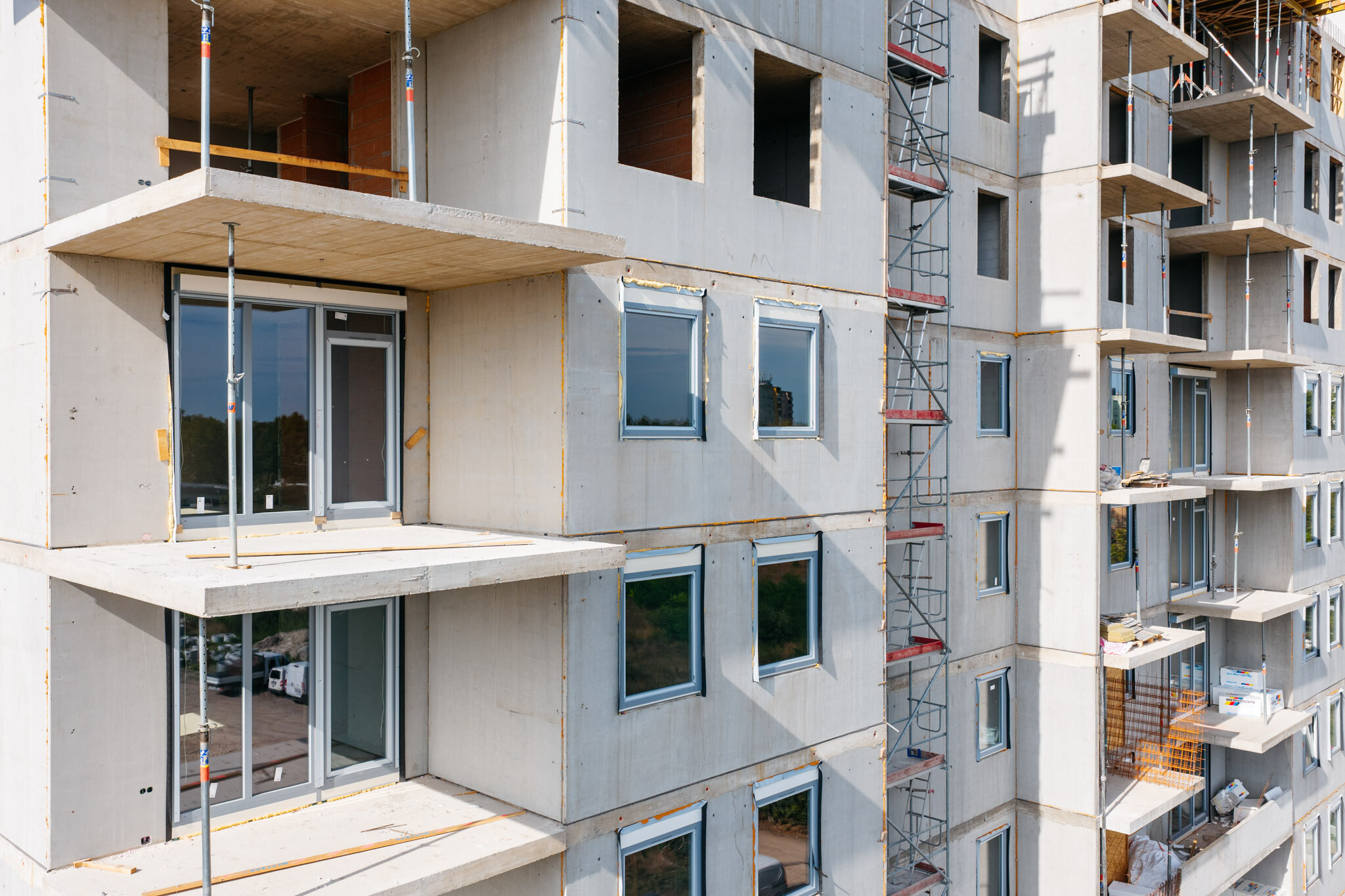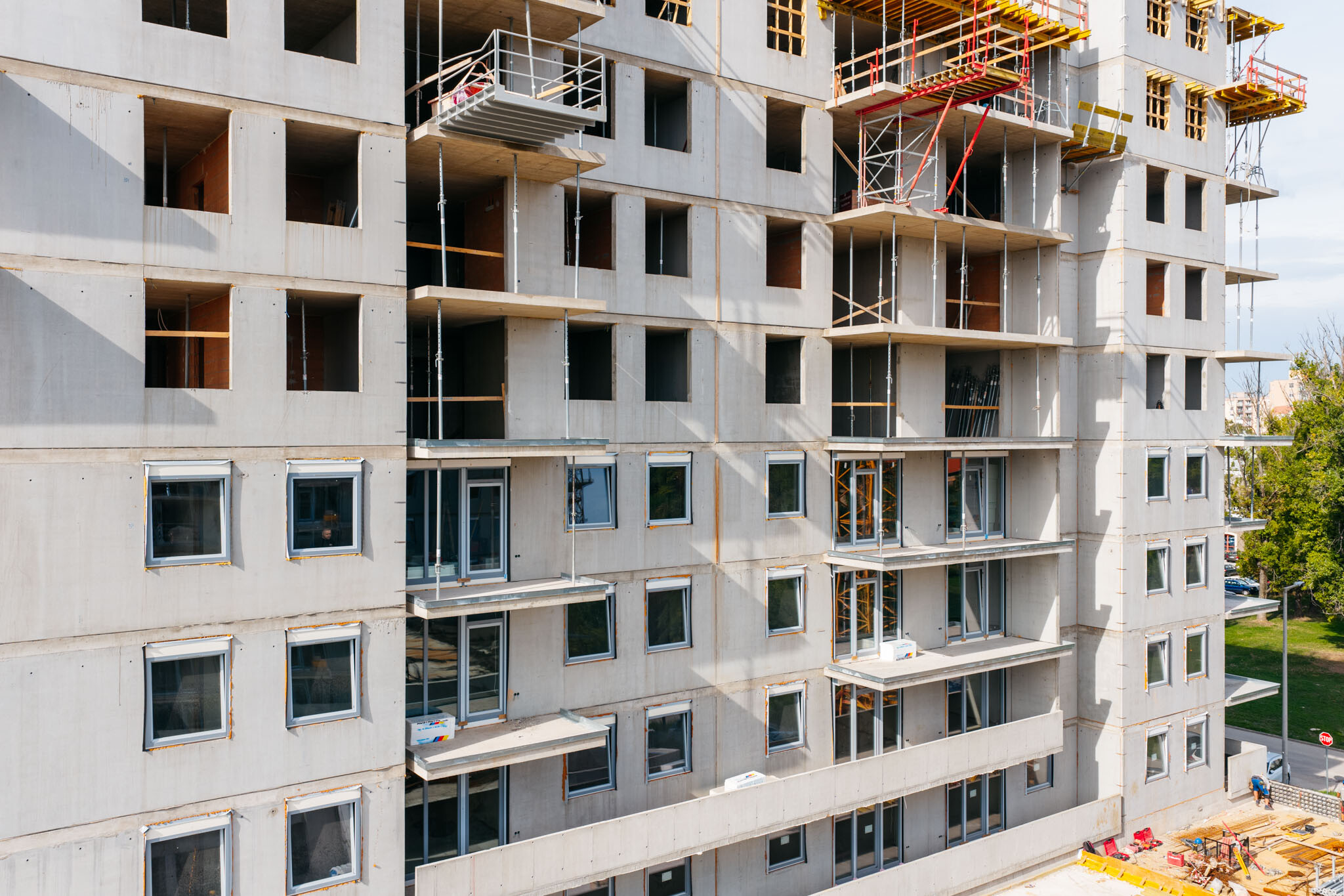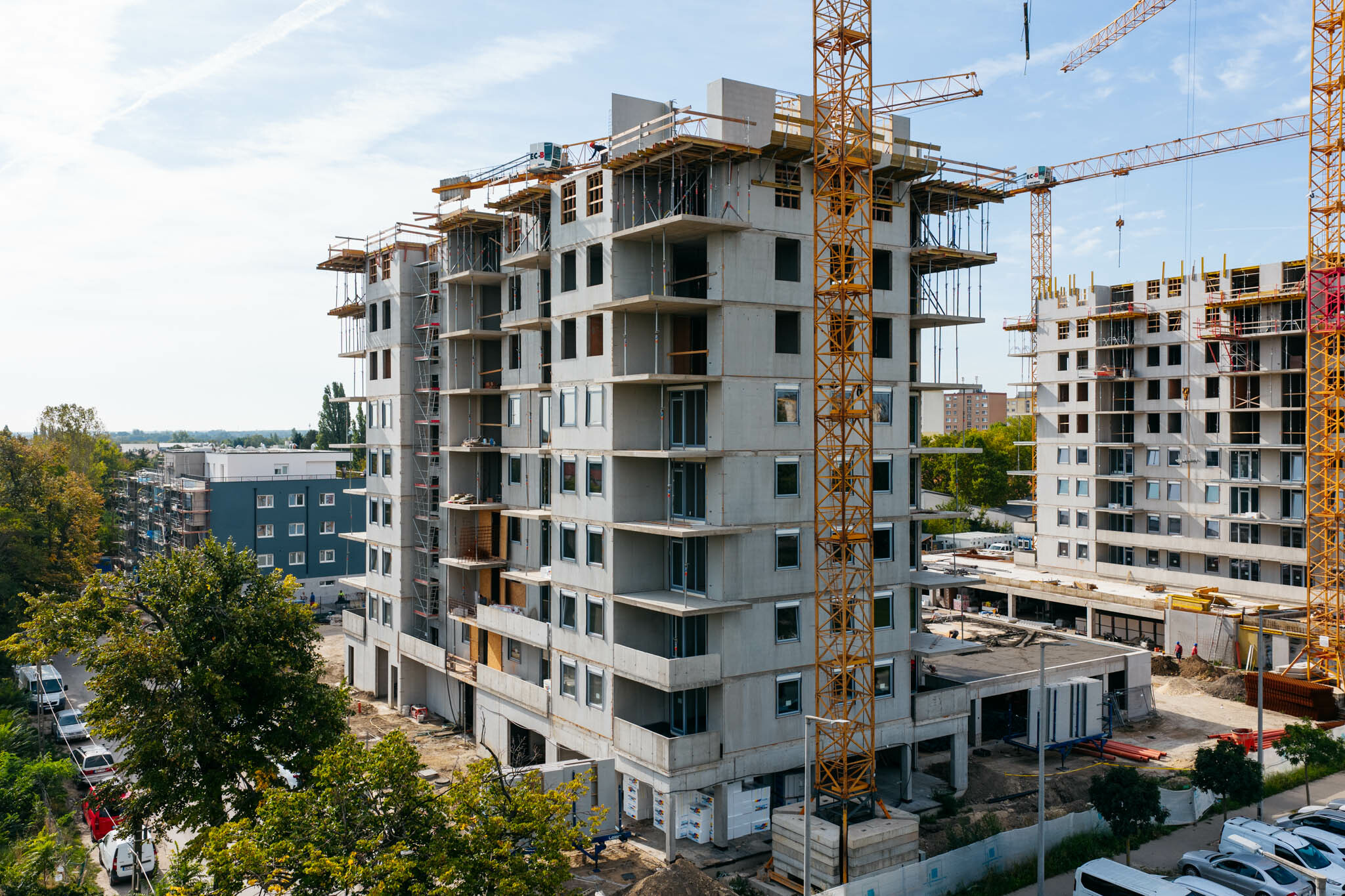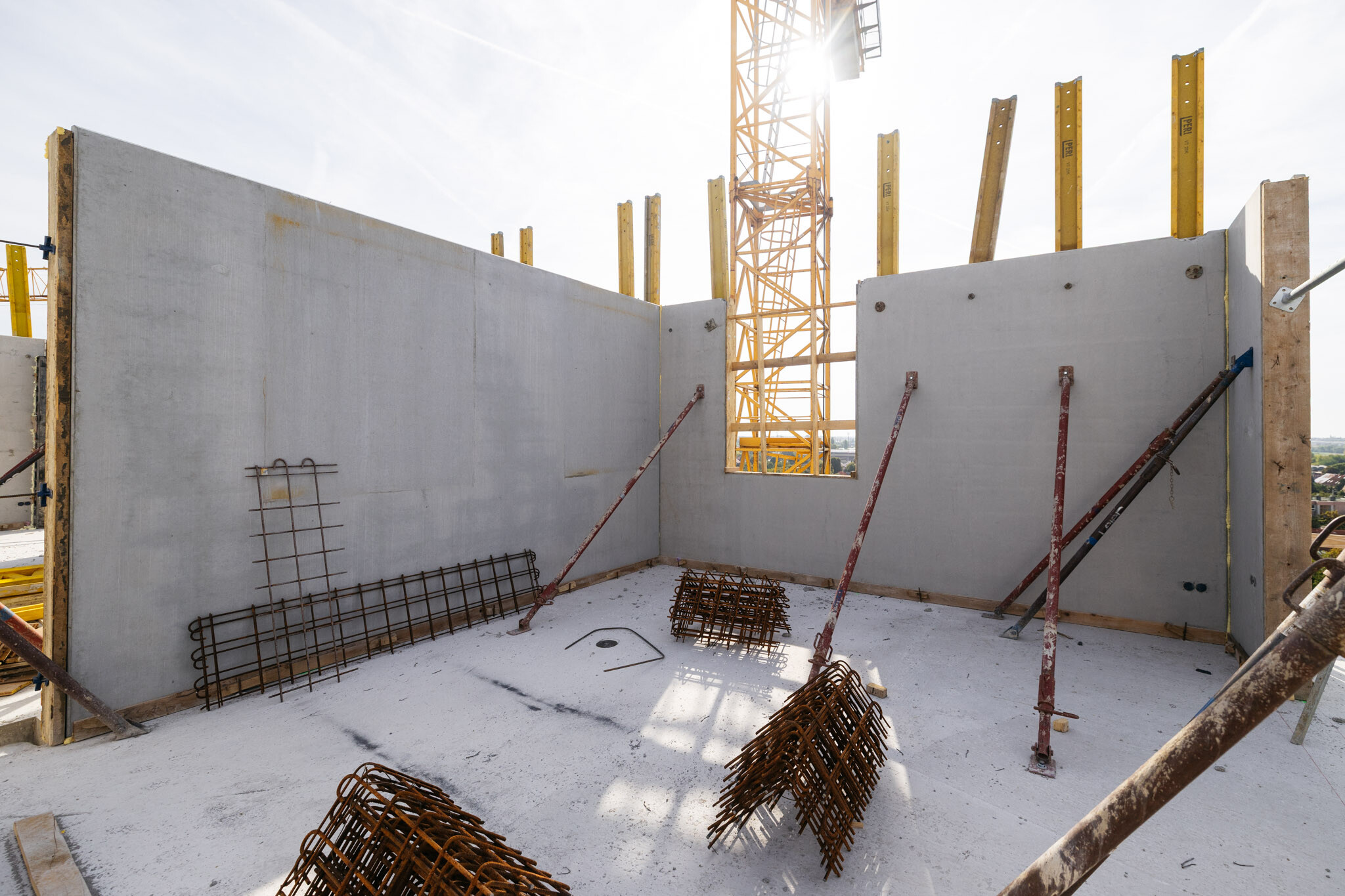 Egyrészt szó szerint értve, másrészt pedig a cég megoldásai teszik lehetővé a megvalósítás sebességét és minőségét is: az A és B épületek 2x10 szintnyi szerkezetépítése kifejezetten gyors, eddig összesen alig több mint 30 hetet vett igénybe: az első szállítások idén február második felében indultak. A földszint a parkolóé, a többi 9 szinten vannak a lakások, összesen 162 darab.