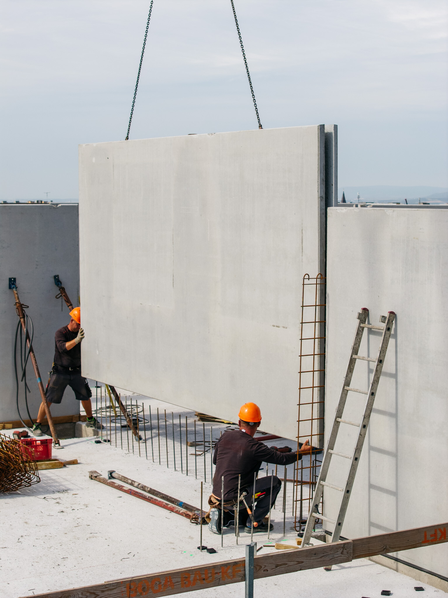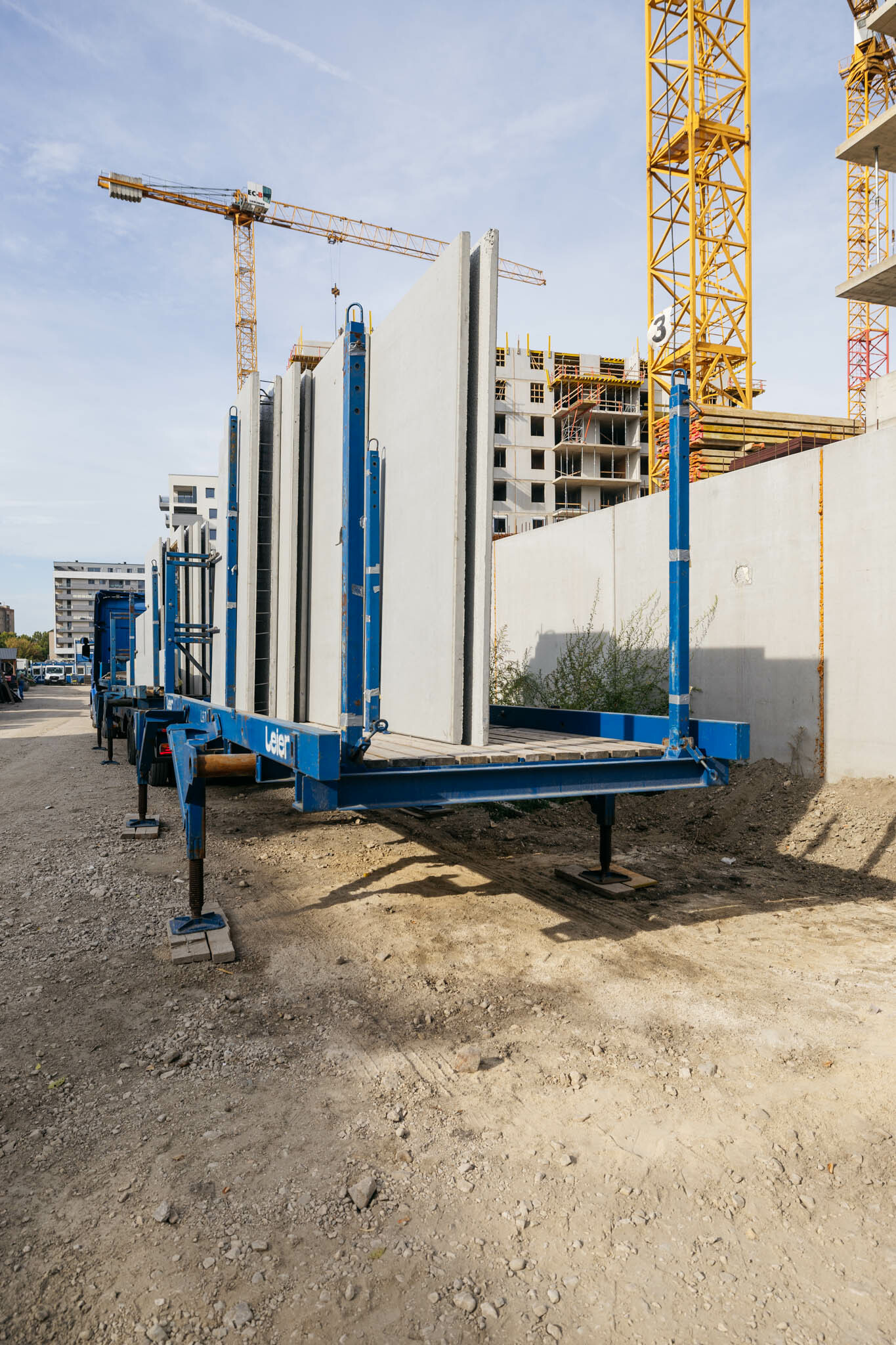 Mielőtt a logisztikai kérdésekre került volna szó, az építésvezető elmondta azt is: a MERKBAU azért választotta a Leier előregyártott elemeit az építkezéshez, mert számos korábbi projekt során szereztek már pozitív tapasztalatot a beépítésükkel. A Leier már több ezer négyzetméternyi kéregfallal bizonyította a megbízhatóságát a MERKBAU projektjein – fogalmazott.