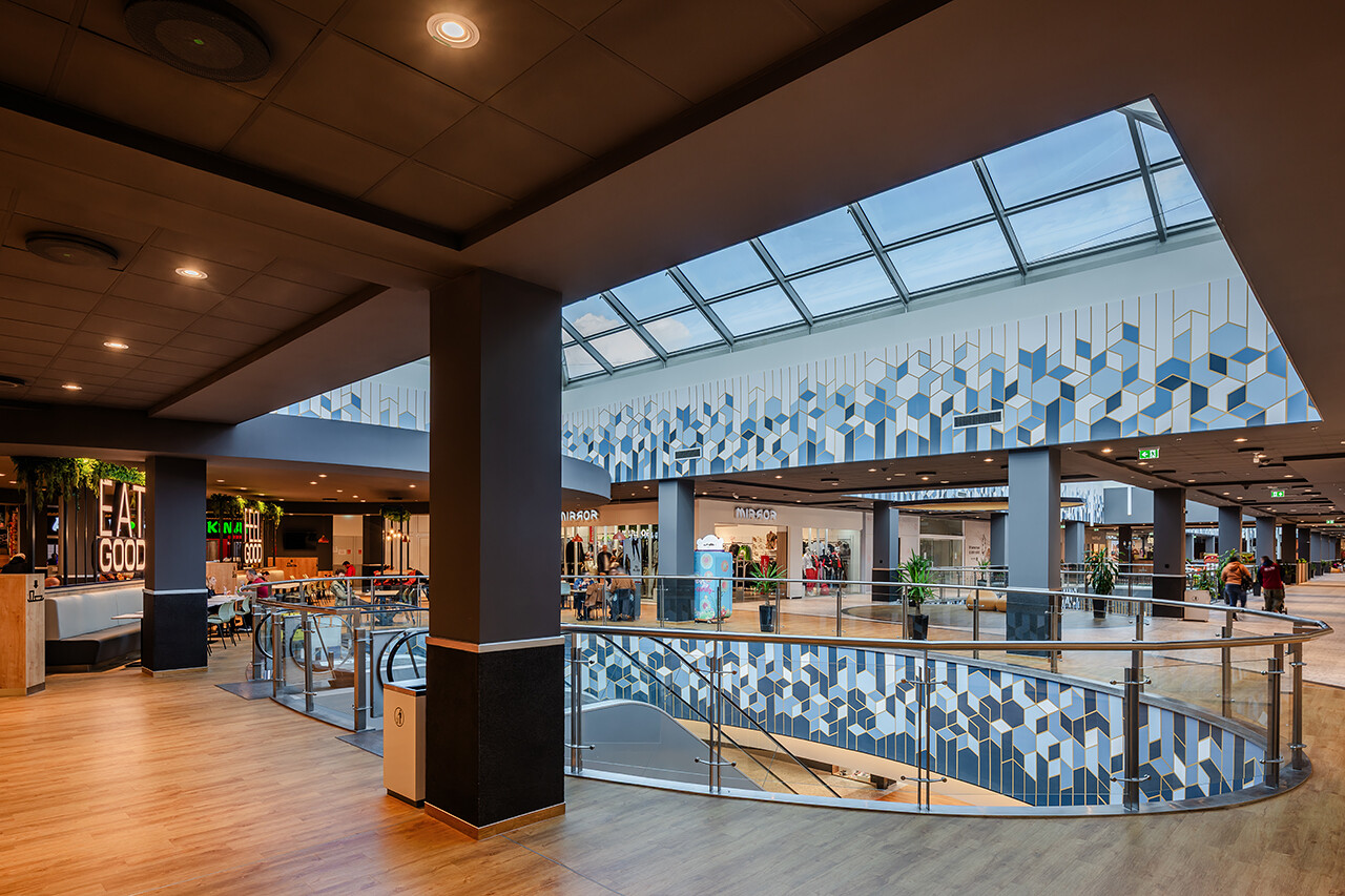 A többlépcsős fejlesztés során megújultak a több mint 50 üzletnek, illetve a város multiplex mozijának is helyet adó 14.000 négyzetméteres pláza belső terei, szolgáltatásai, valamint az energiahatékony és a hosszú távú üzemeltetési fenntarthatóságot garantáló megoldásokkal korszerűsítették az épület gépészeti rendszereit.