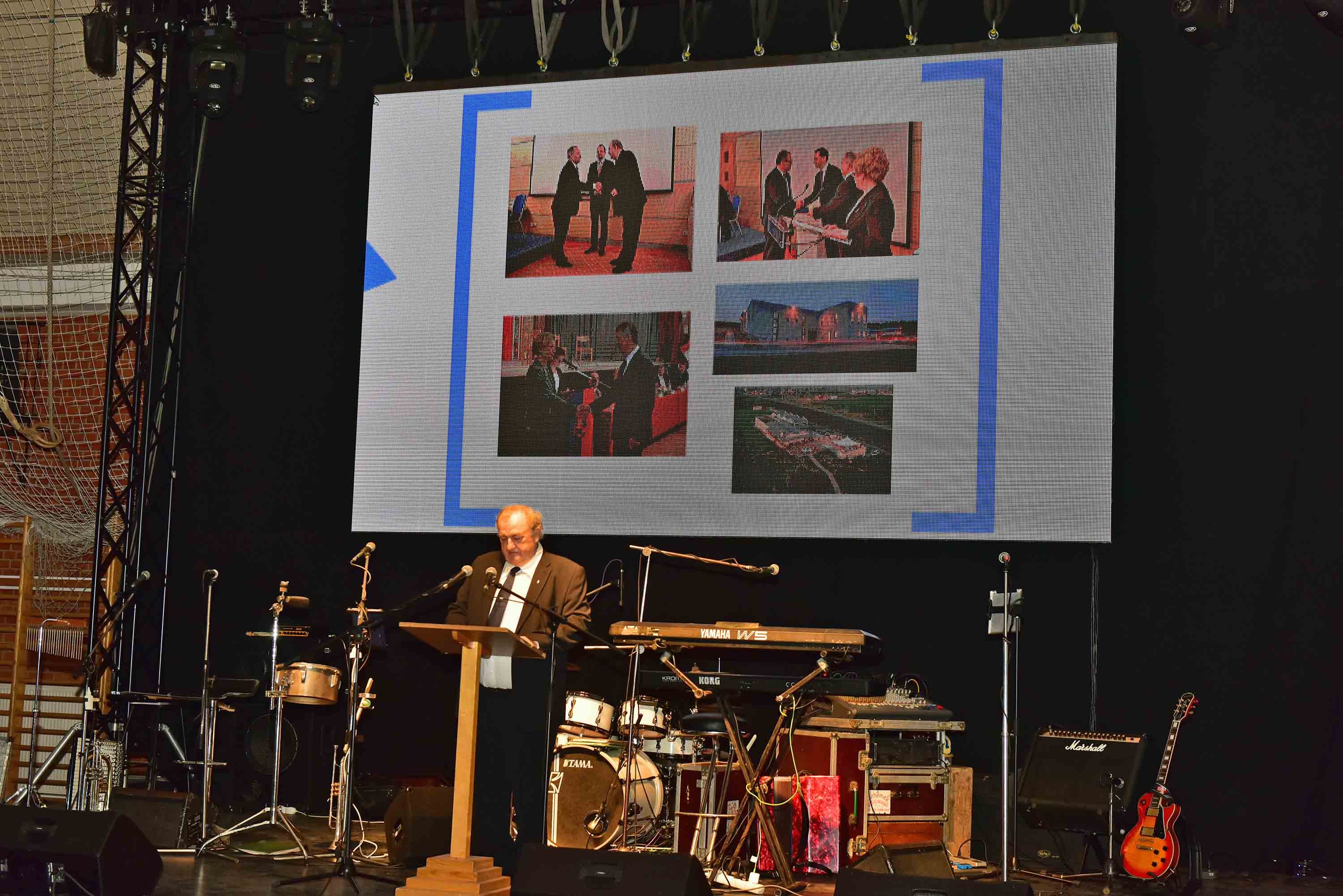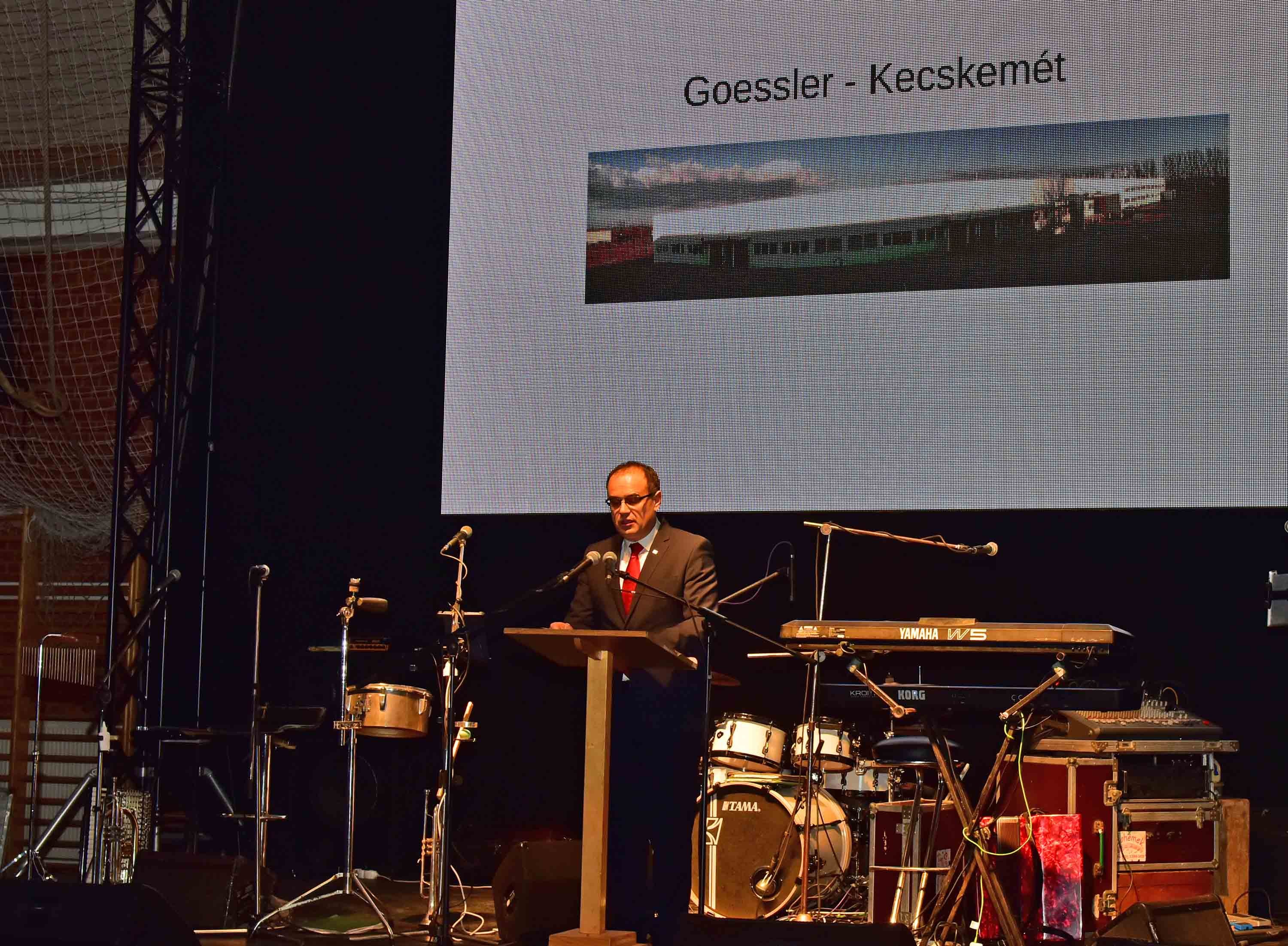 A köszöntőket Merényi Jakab kezdte, aki különleges momentumként méltatta, hogy egyetlen éven belül mindhárom tulajdonos országos szakmai kitüntetésben részesült. Merényi Jakab (2015 decemberében) és Knáb János (2016 decemberében) Lechner Ödön Díjat, Balanyi László (2016 júniusában) pedig az Építők Napja alkalmából Miniszteri Elismerő oklevelet kapott. Az ügyvezető hangsúlyozta, a cég összesen négy mesterdíjnál, négy nívódíjnál tart eddigi története során. Hozzátette, az elismerések az egész cégnek, és a cégcsoport valamennyi dolgozóinak is szólnak.