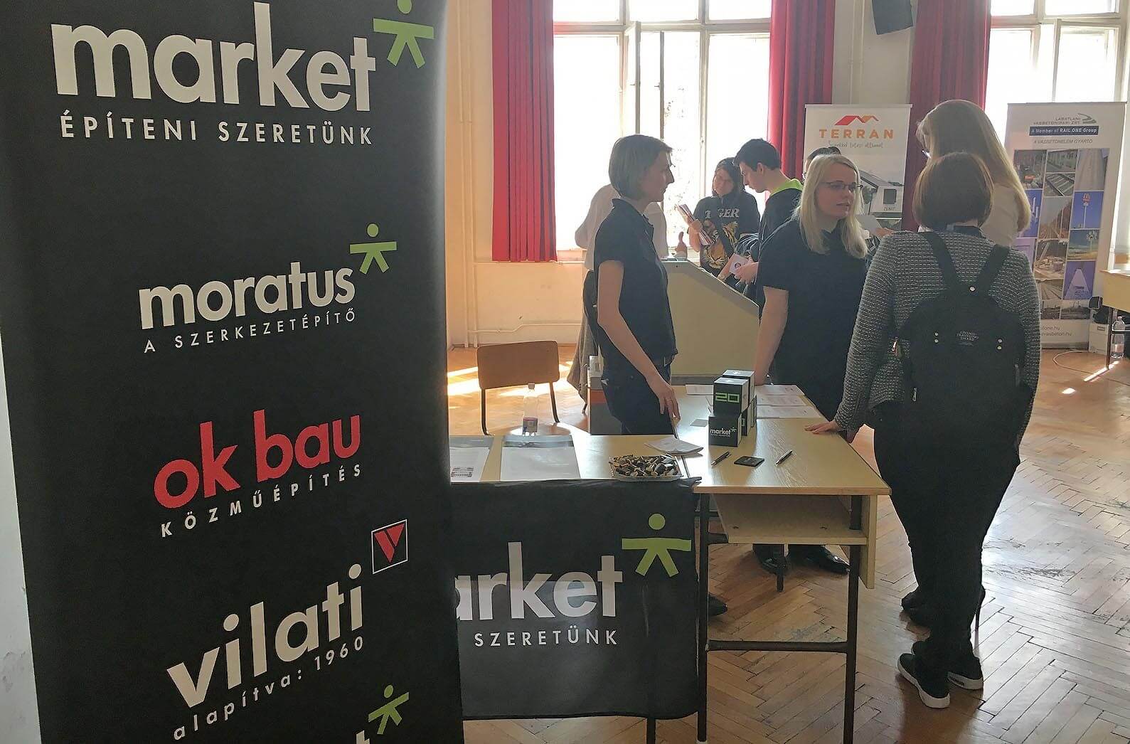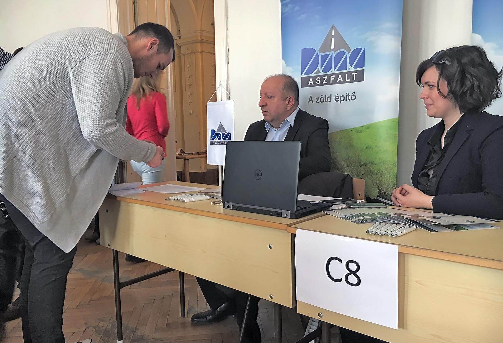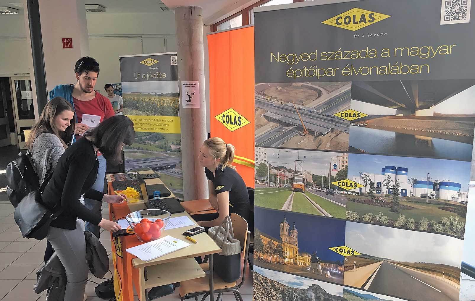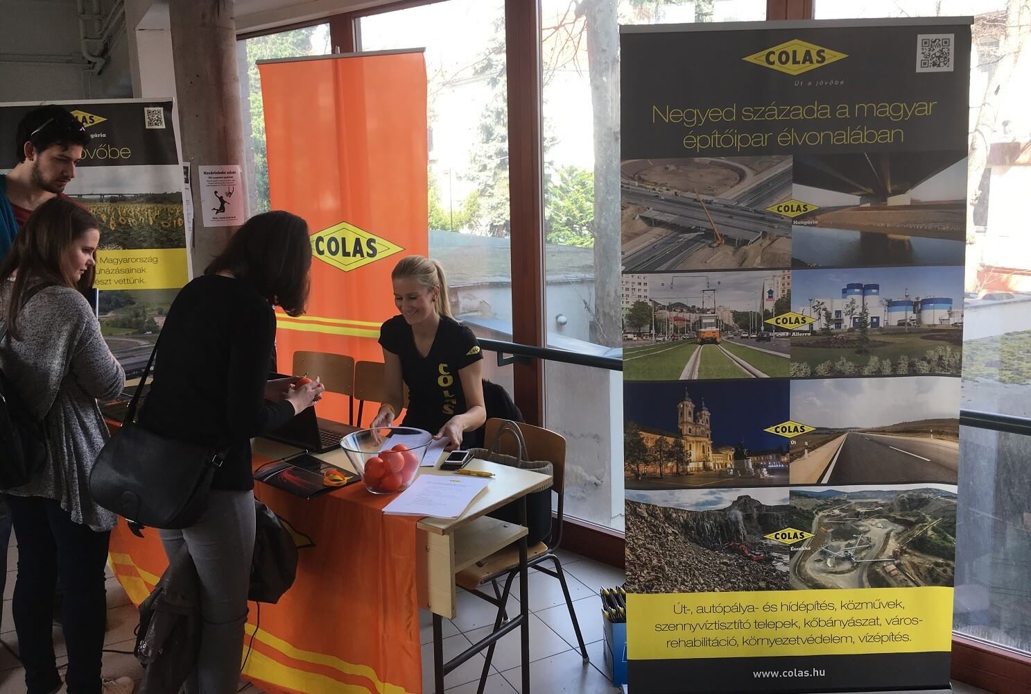 A rendezvény állásbörzéjén a résztvevő cégek - többek közt a Colas Hungária, a Duna Aszfalt, a Market Építő és a Terrán - állásajánlataival is megismerkedhettek a szakma fiataljai.