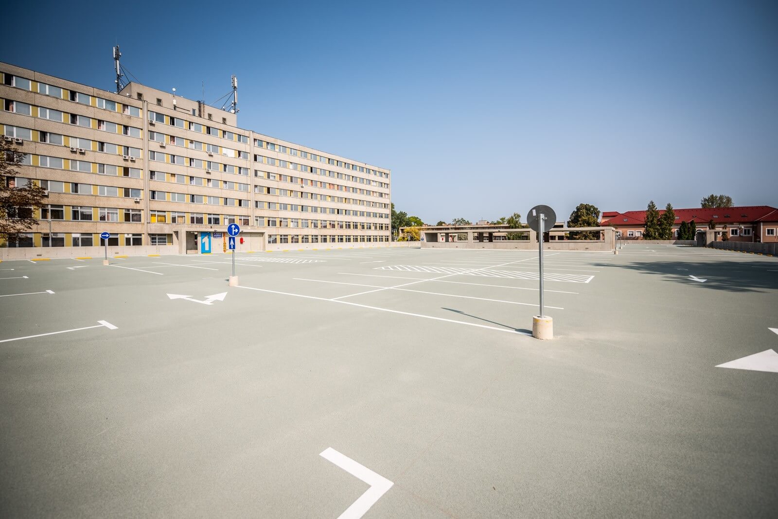 A kétszintes parkolóházhoz egy 50 köbméteres tűzivíz tároló és egy 50 négyzetméteres nyitott közlekedő is épült. A korábban 241 parkolóhellyel rendelkező intézmény komoly férőhelyproblémákkal küzdött, ezt oldotta meg az új épület.