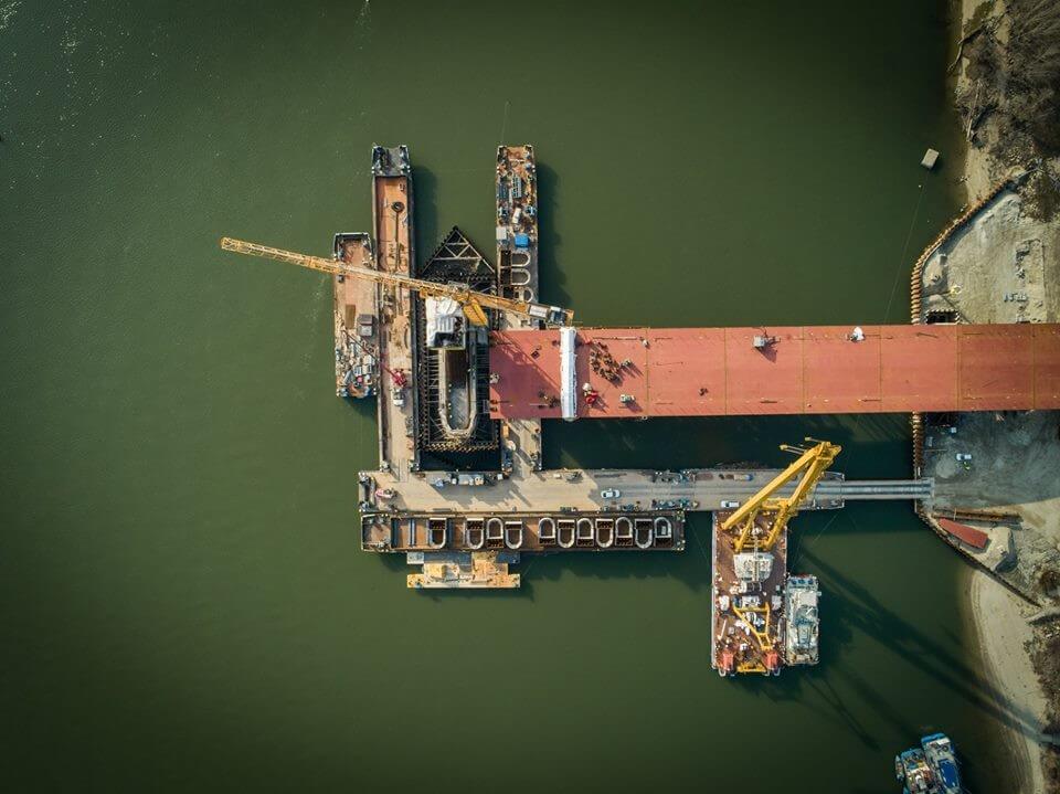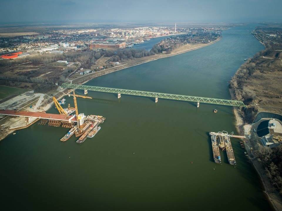 A NIF híréből az is kiderült, hogy az épülő híd merevítőtartójának Szlovákia irányába történő kitolása a múlt héten megtörtént, az első szabadszereléssel készülő elemet február 14-én beemelték. Ezzel a 600 méter hosszú merevítőtartóból elhelyezésre került 278 méter.