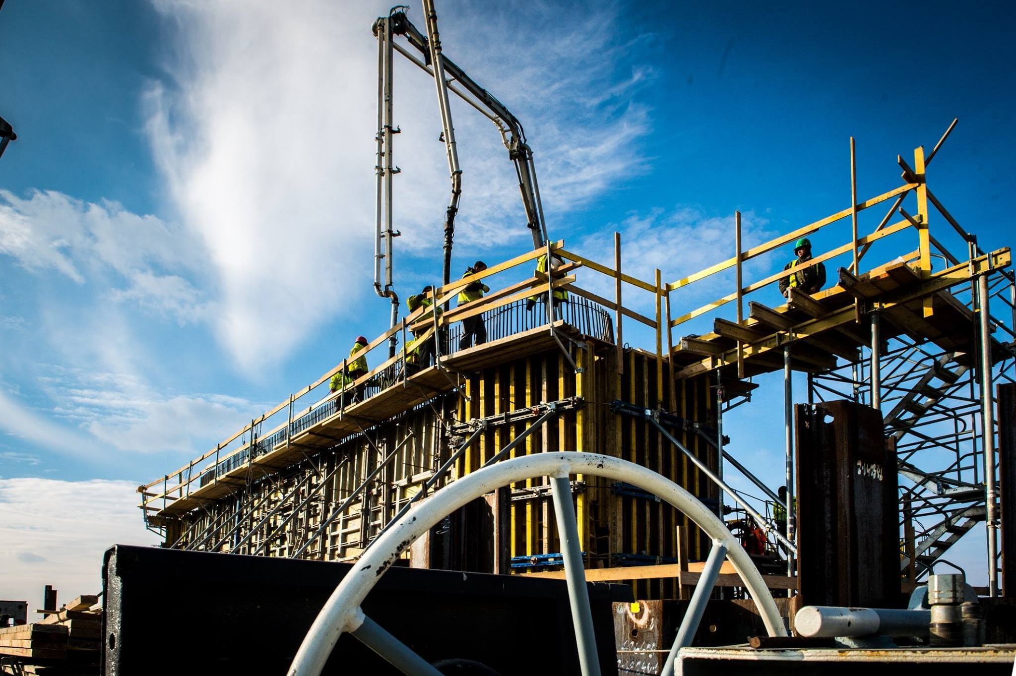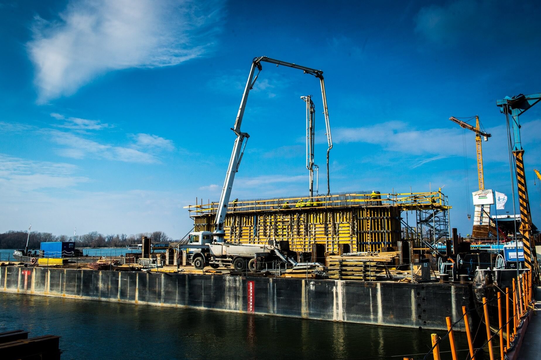 A Hídépítő, a Mészáros és Mészáros, valamint a Hódút által kivitelezett projektben jól halad a pilon elkészítése is; azután jöhet majd a víz fölötti pályaszerkezet építése.