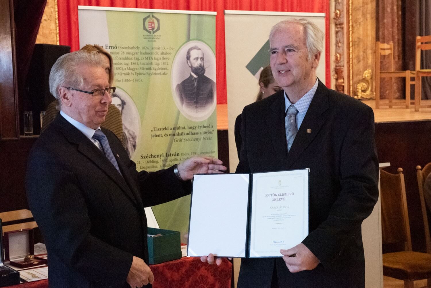 Kardos Andor-díjat kapott Molnár Dénes a mérnöki kamarától, illetve Szilikátiparért Emlékérmet vehetett át