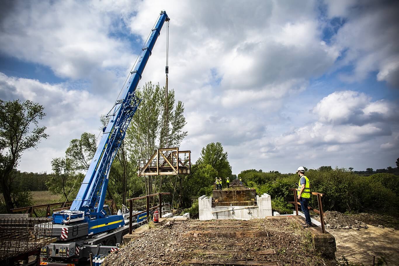Elvégezte a régi hídszerkezet kiemelését az A-Híd Zrt. a Külsővati melletti Veszprémi-csatorna hídján - derült ki a NIF Zrt. közleményéből. A kiemelés után helyére kerülhetett az új felszerkezet. A bontási és építési munkák miatt szombatig vágányzár volt érvényben Győr-Celldömölk 10-es vasútvonalon, Vinár és Celldömölk állomások között.