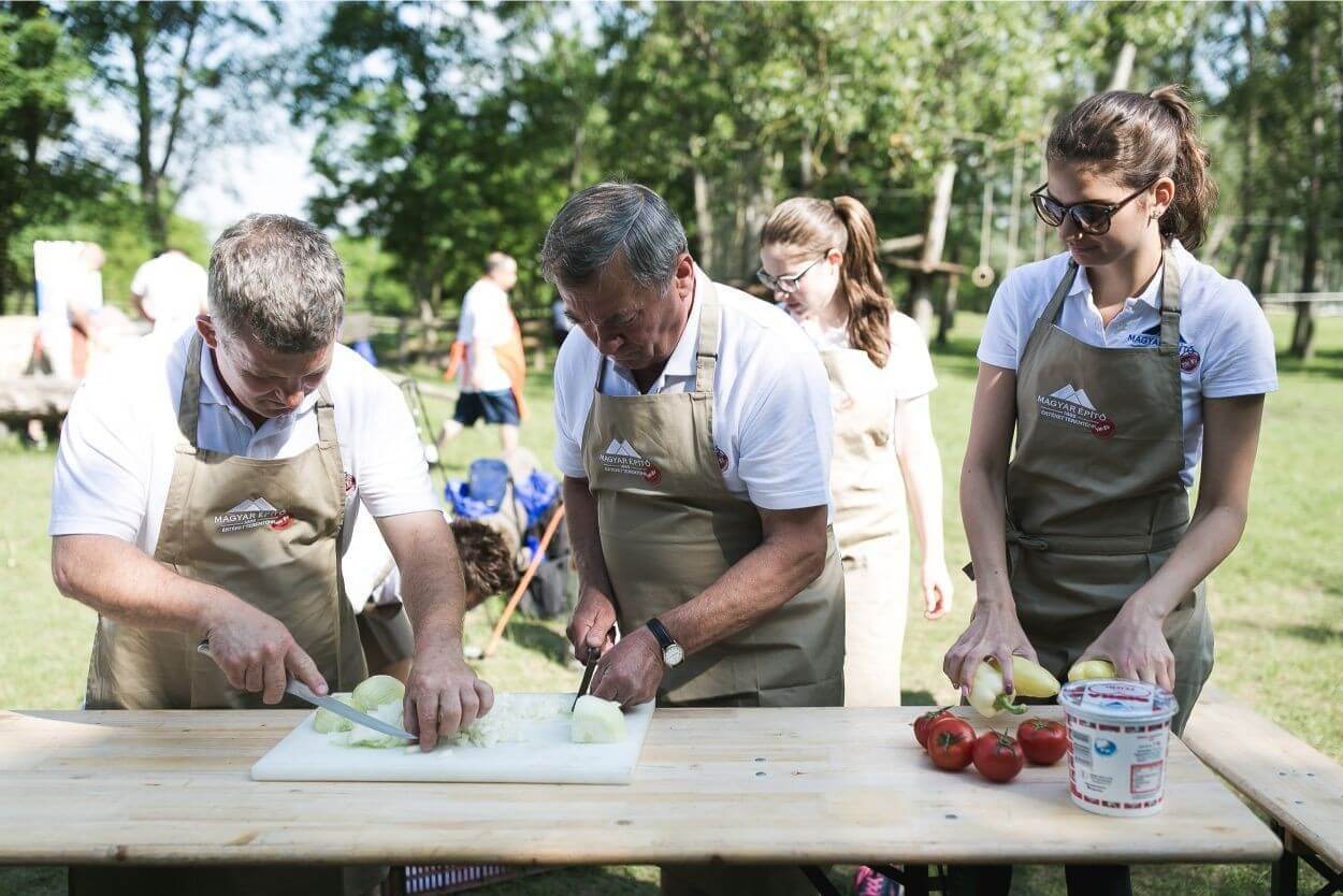 Idén is megrendezte a hagyománnyá vált csapatépítő eseményét a Magyar Építő Zrt. A köszöntők után megkezdődött a főzőverseny csapatainak összeállítása, majd a csapatnevek kiválasztása után indulhatott is a verseny. Az elkészült ételeket a csapatok és a szakmai zsűri is pontozta, majd az összesítés után az I. II. és III. helyezett kollégái elismerése mellett értékes nyereményekbe is részesült.
