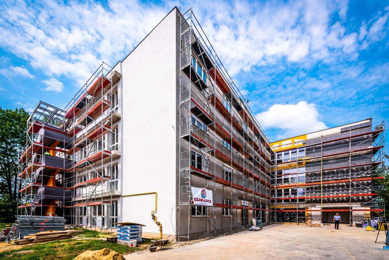Az idén májusban indult barnamezős beruházásban egy a 70-es években emelt laktanya-épületet alakít át a Szabadics a Gasparich utcában.