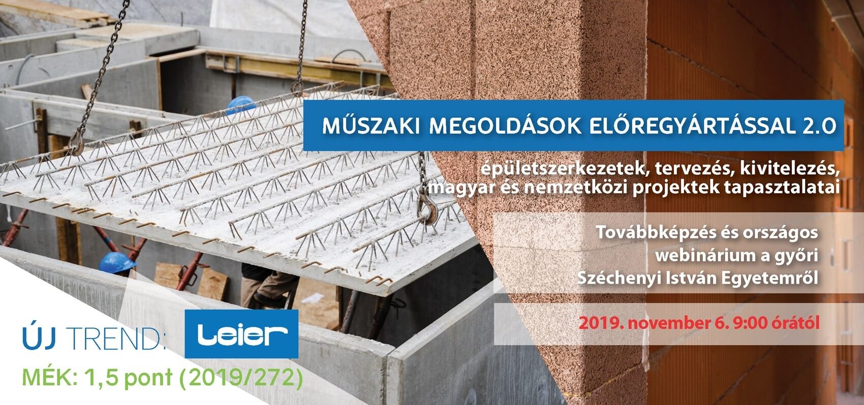 November 6-án, szerdán kerül megrendezésre az az országos esemény, amely online közvetítéssel is várja az érdeklődőket a győri Széchenyi István Egyetemen. A Leier Hungária Kft. támogatásával létre jövő rendezvény megújult program keretében foglalkozik az előregyártás témájával.