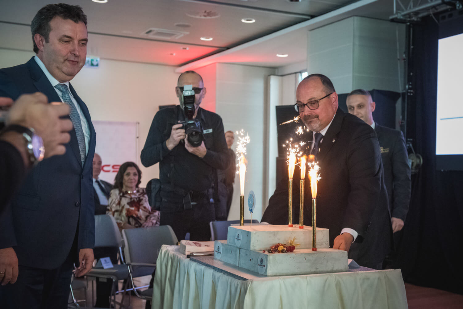 A felszólalások végén a Palkovics László, Szabadics Zoltán, Szabadics Attila és Kovács Tamás tortát vágtak, majd ünnepi toast-ot követően ebédre invitálták a résztvevőket a szakmai program folytatása előtt.