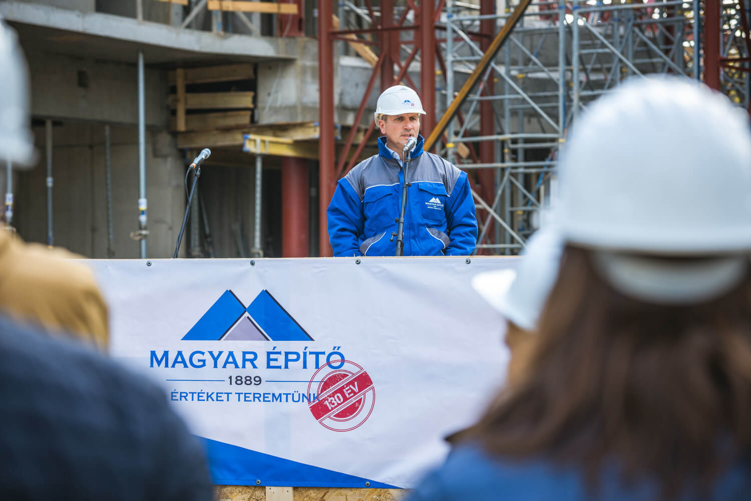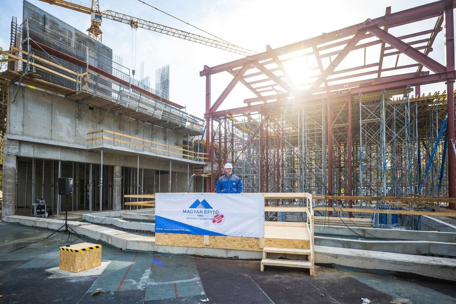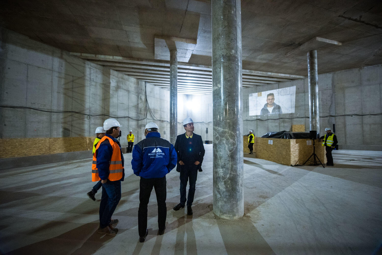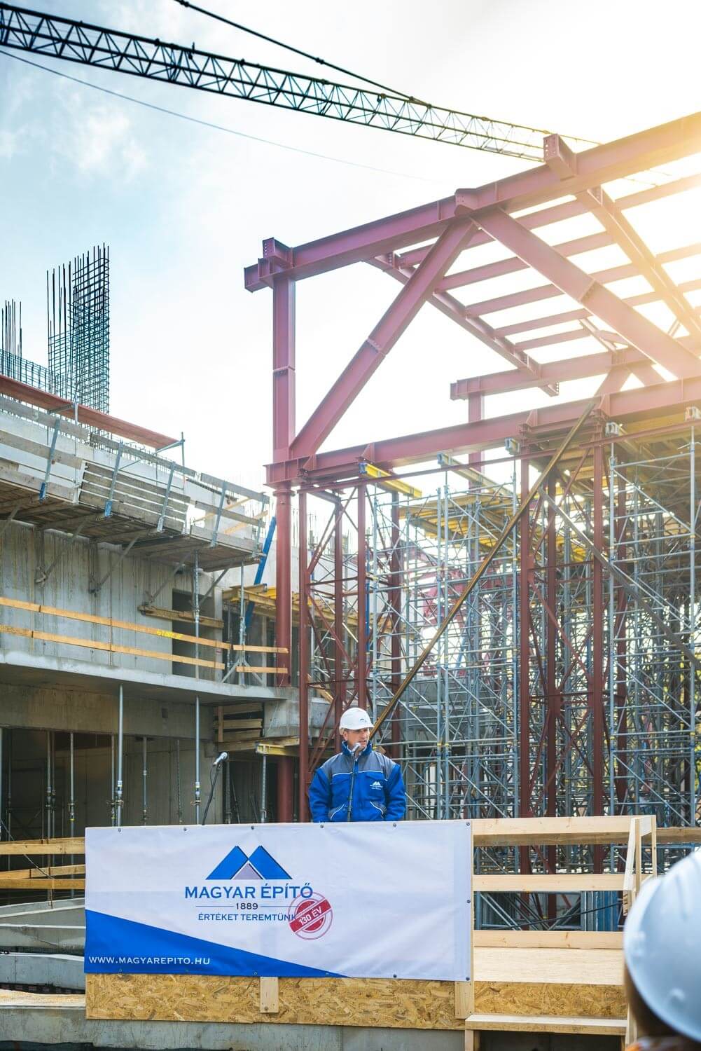 Papatyi Balázs projektvezető rámutatott: miután a mélyépítési munkákat szinte pontosan egy évvel ezelőtt kezdték meg, elkészült a két felszín alatti szint, illetve megkezdték a földszinttől felfelé a vasbetonszerkezet és az acélszerkezet építési munkálatokat is.