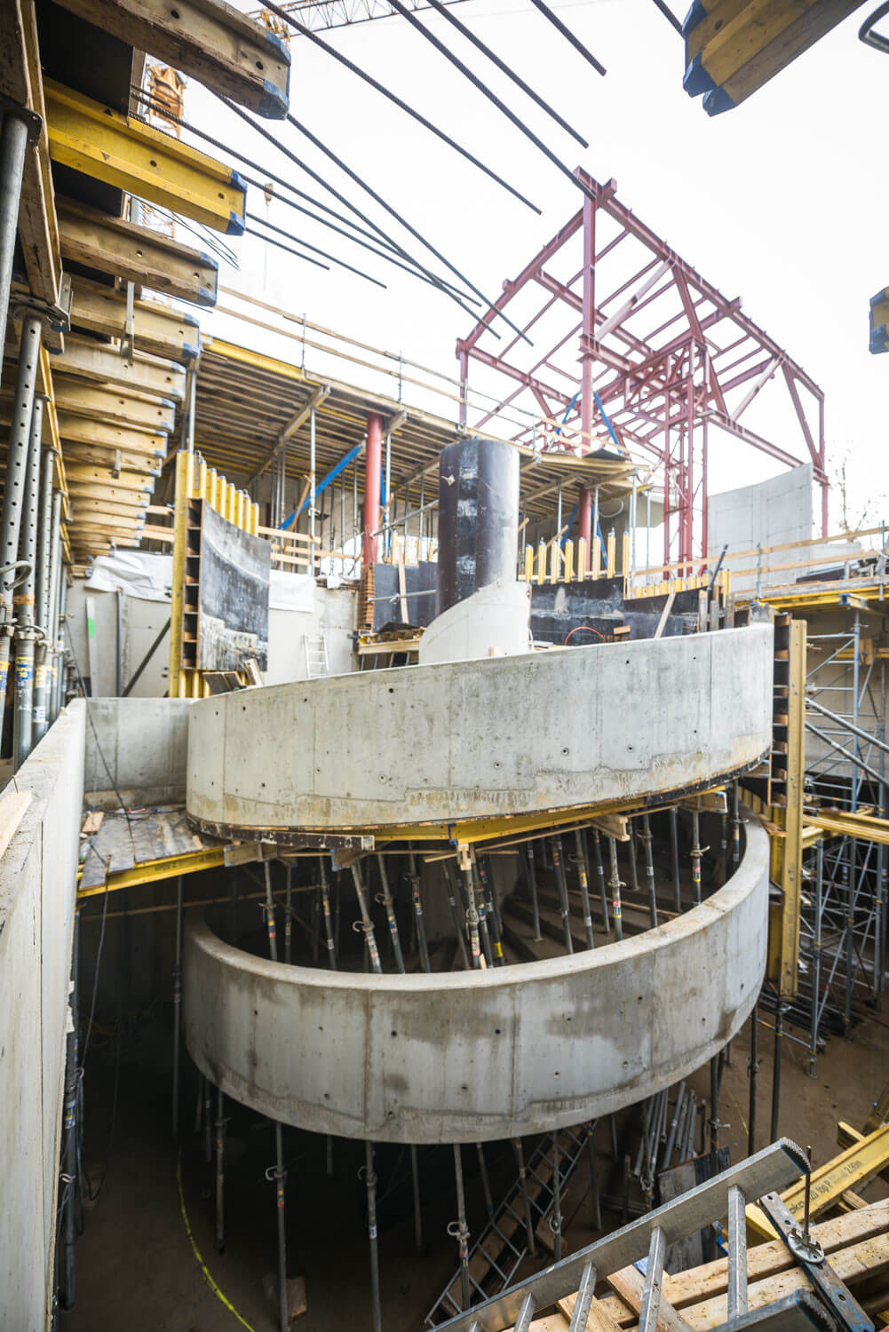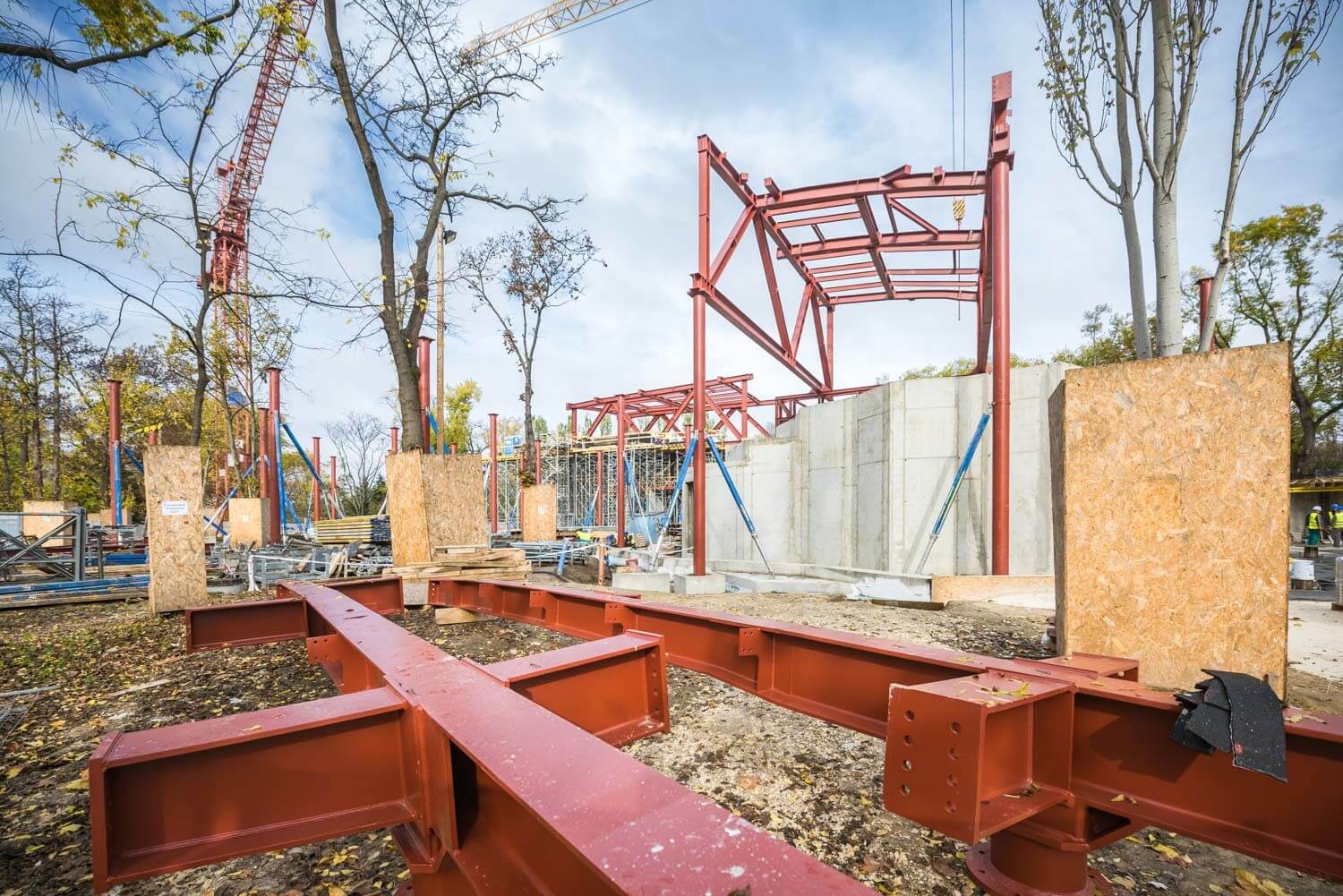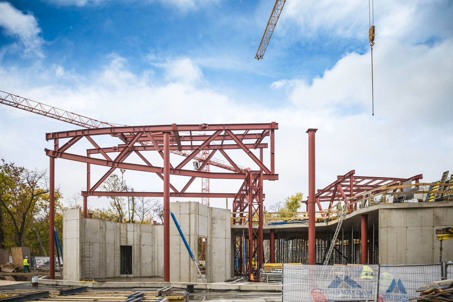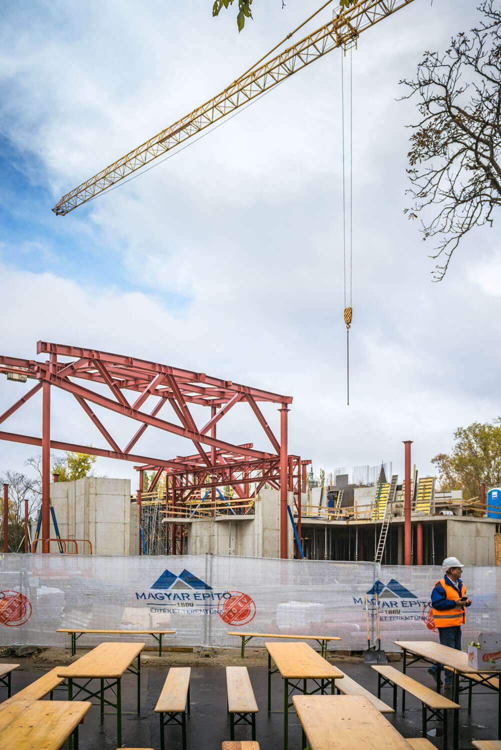 Papatyi Balázs projektvezető rámutatott: miután a mélyépítési munkákat szinte pontosan egy évvel ezelőtt kezdték meg, elkészült a két felszín alatti szint, illetve megkezdték a földszinttől felfelé a vasbetonszerkezet és az acélszerkezet építési munkálatokat is.