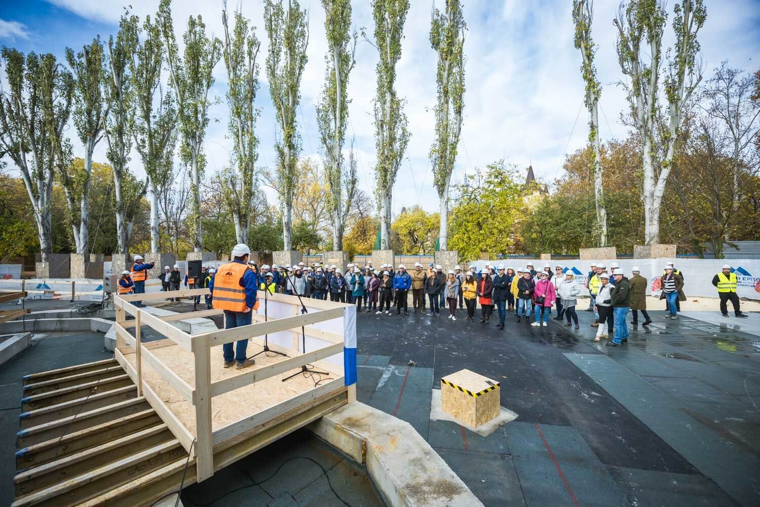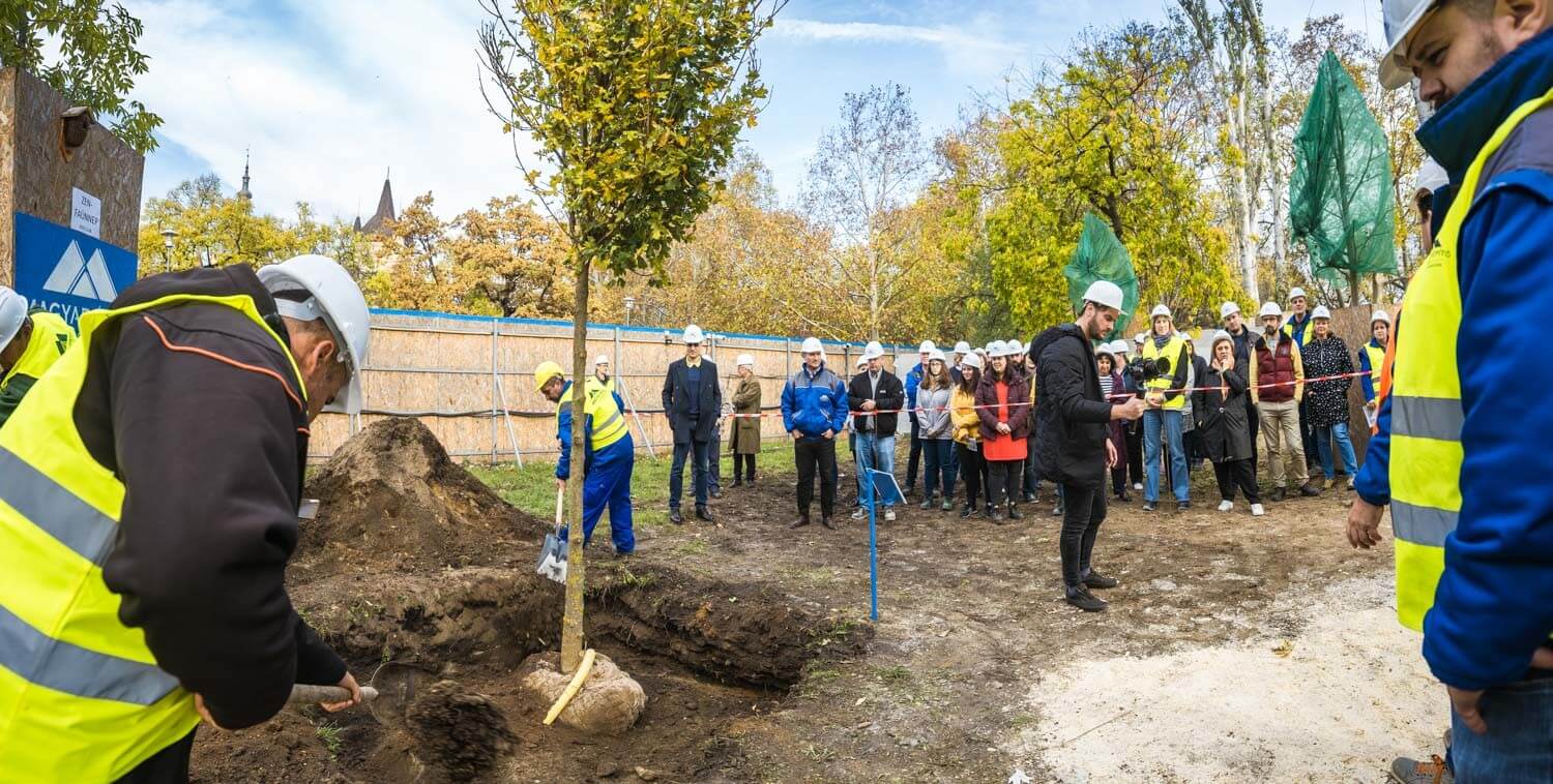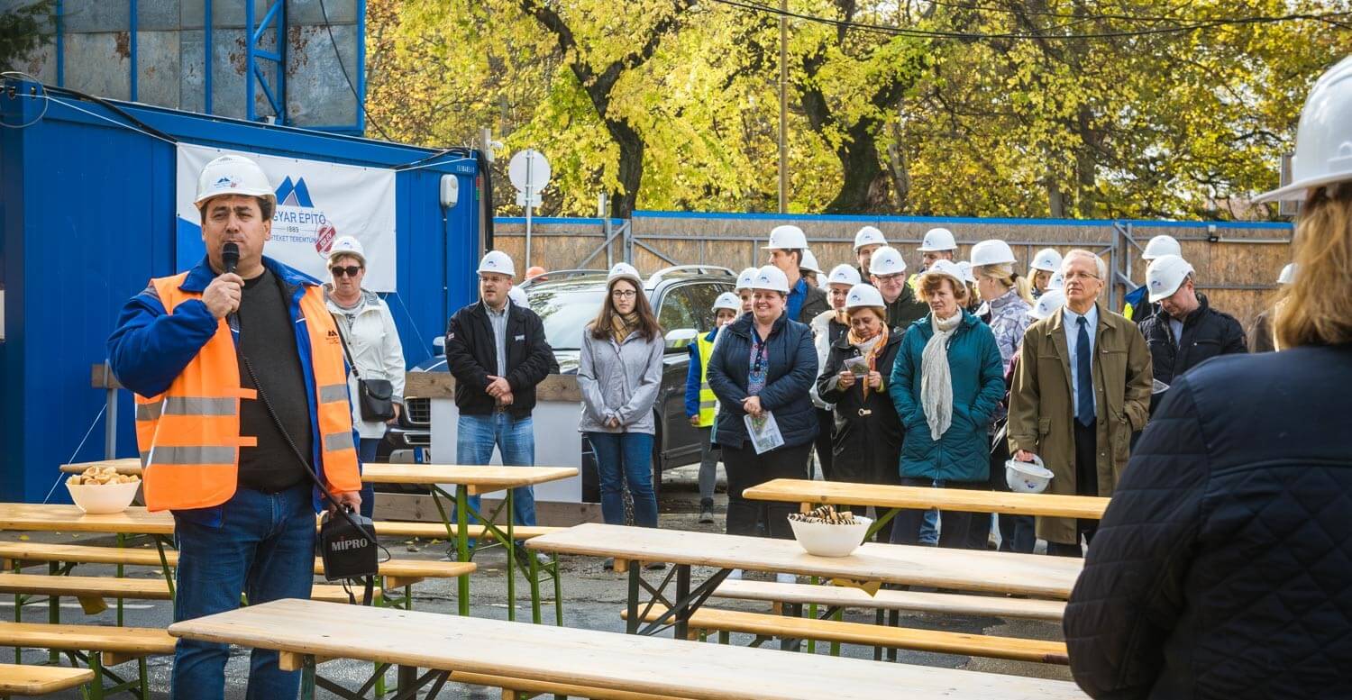 A jubiláló vállalat faültetéssel egybekötött épületbejáráson emlékezett meg múltjáról és nézett a jövőjébe a Magyar Zene Háza építkezésénél.
