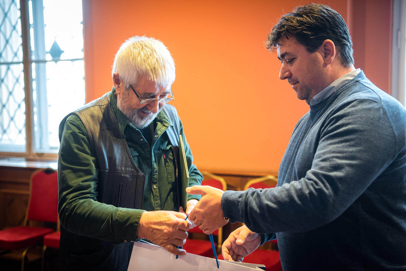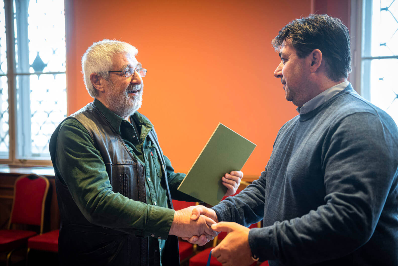 A Román Csarnok új múzeumi kávézójában lefolytatott beszélgetés zárszavaként Mányi Istvánnak a Schickedanz teremben ünnepélyesen átadták az építőipari nívódíjat.