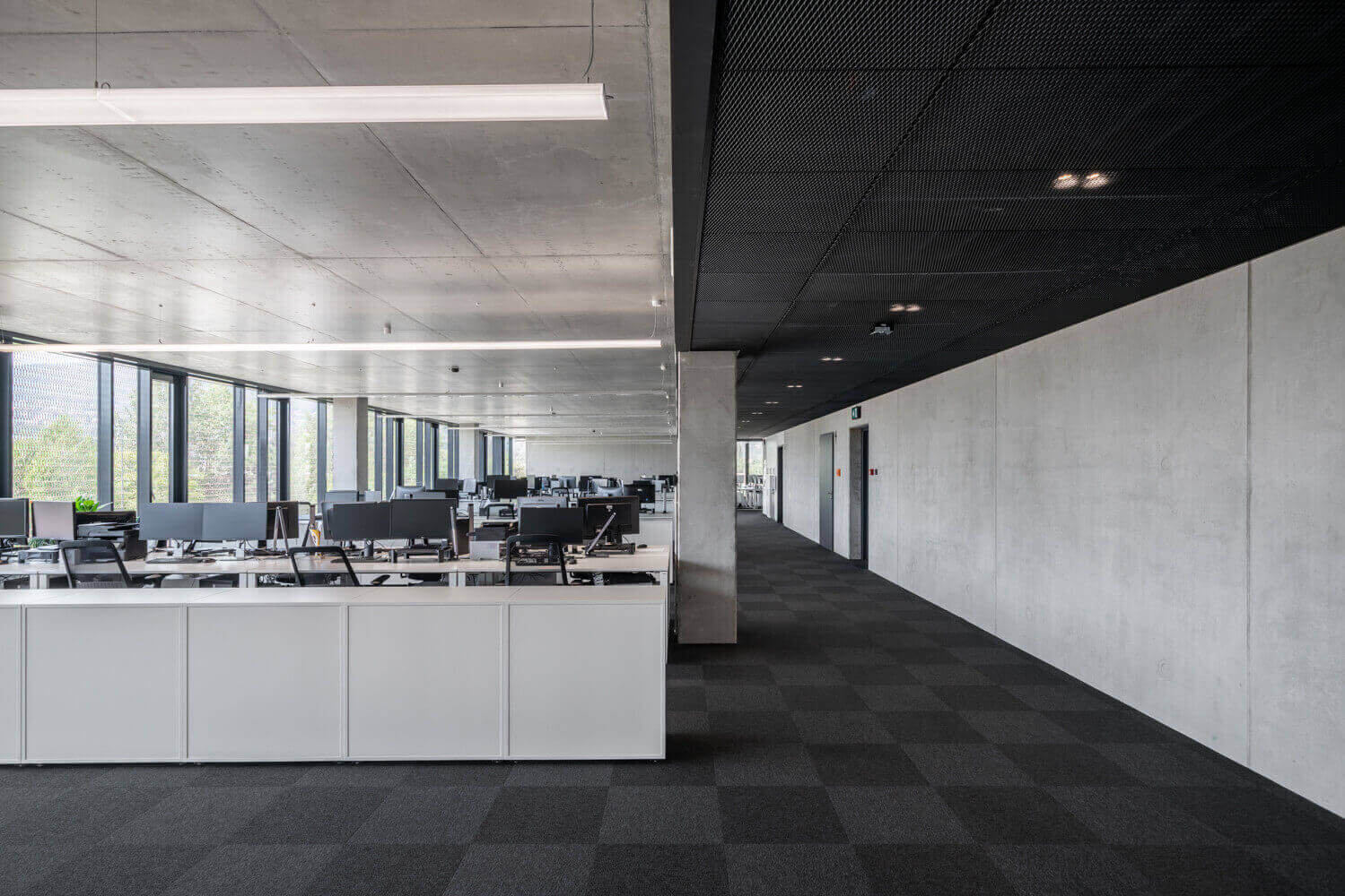Az új székház lelke a közösségi téren alapszik, ahol egy olyan kreatív gondolatokkal teli közeget alakítottak ki, amely lehetőséget ad az építőipar különböző területeivel foglalkozó partnereknek és munkatársaknak az együttműködésre. Megjelenésében és funkcionalitásában barátságos, transzparens helyszínt kínál a bent dolgozóknak. A nagy, belső tereket kortárs művészeti alkotások díszítik.