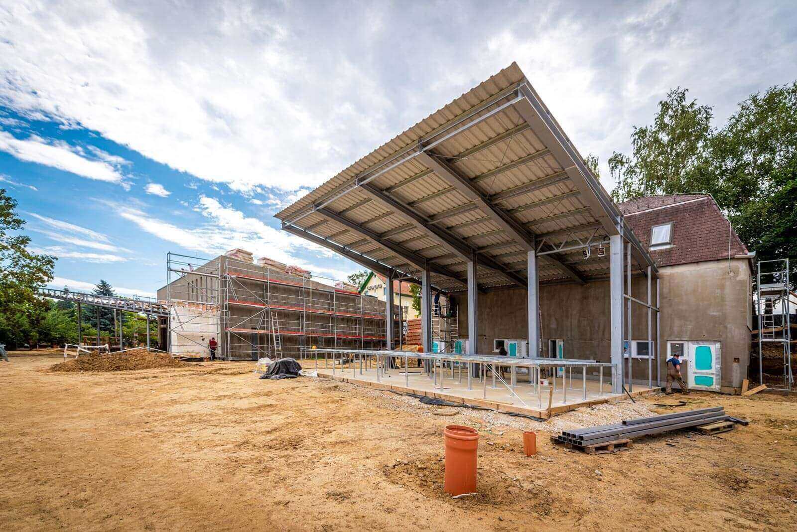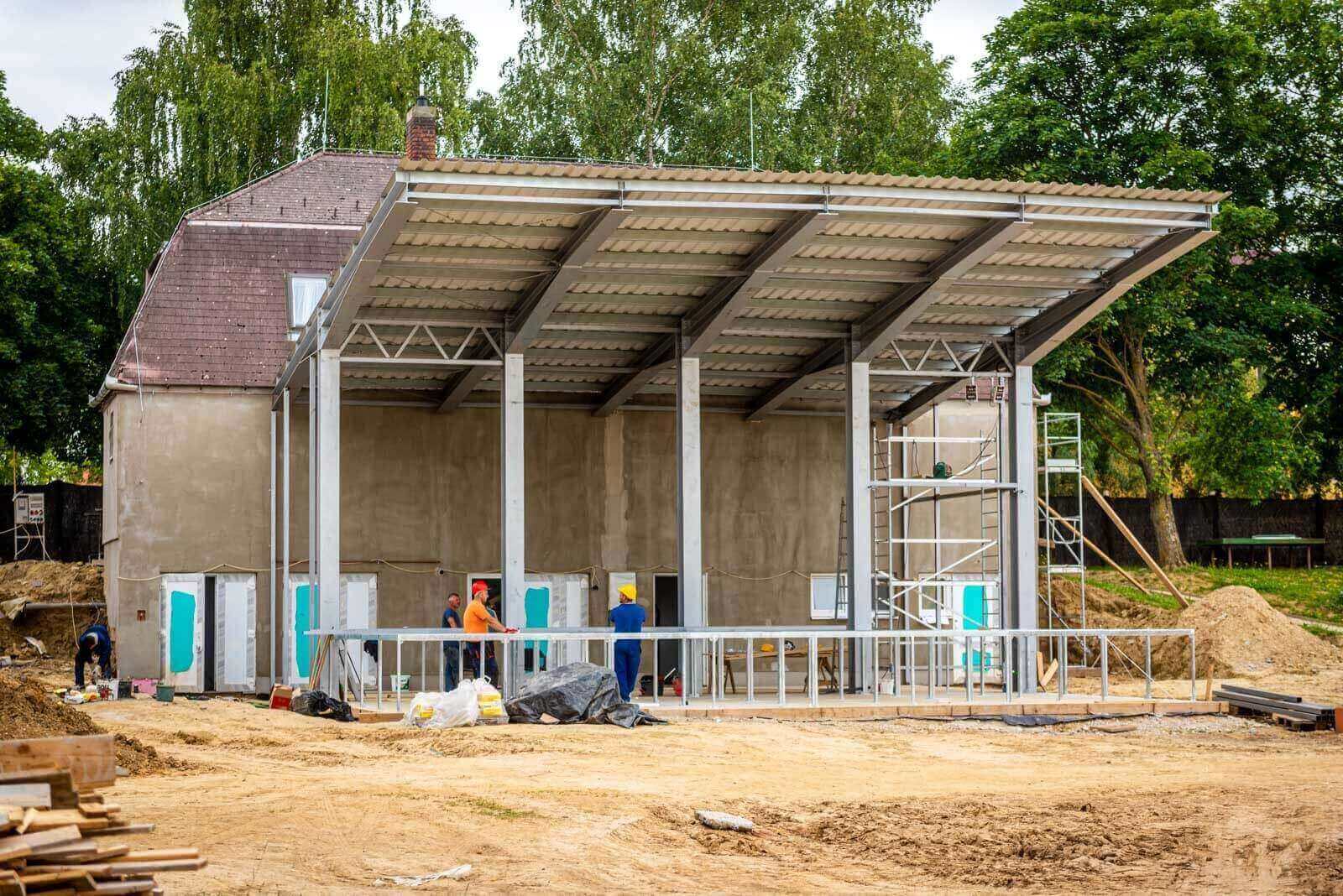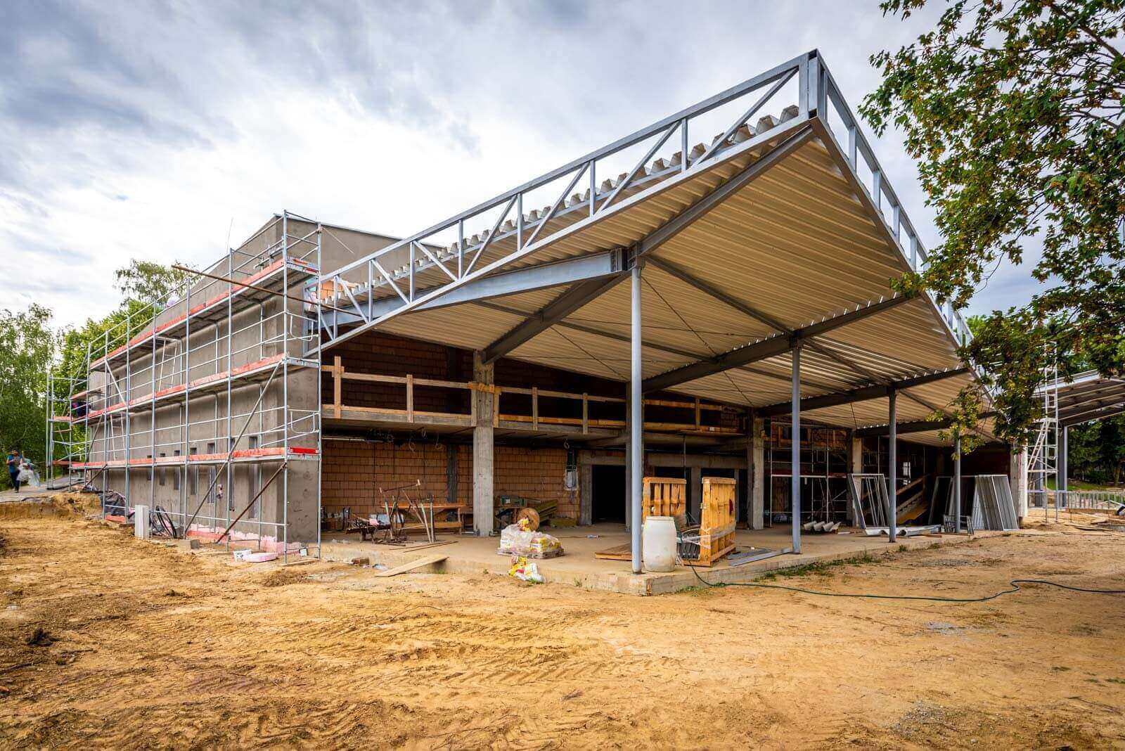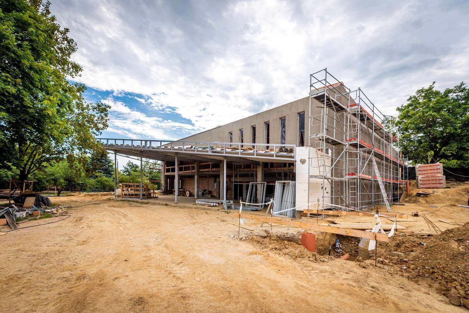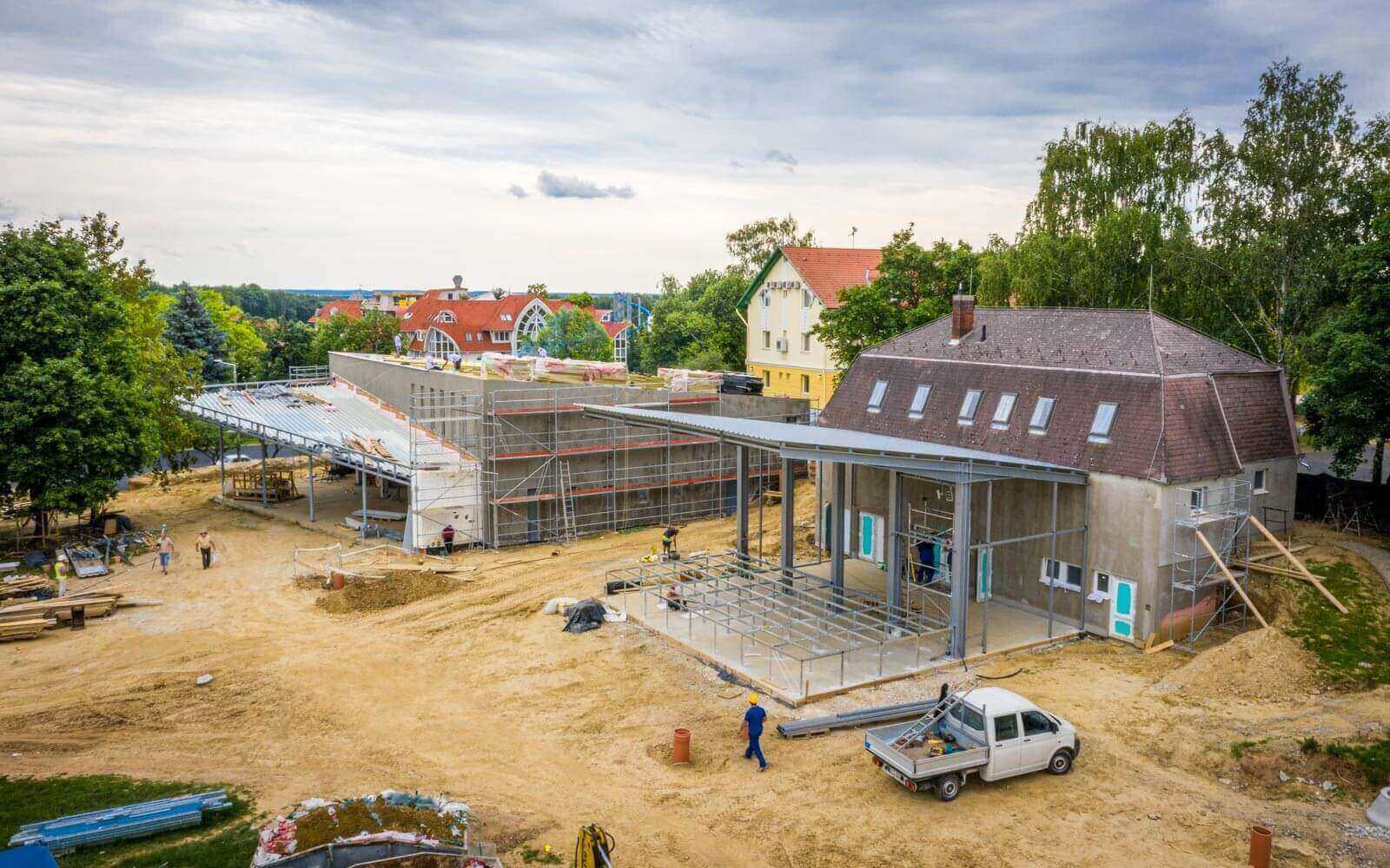 A központ közelében épül fel egy kiszolgáló épület egy korábbi építmény átalakításával, mely már teljesen elkészült: „Itt már csak a színezés van hátra” – mutatott rá Szabadics Roland.