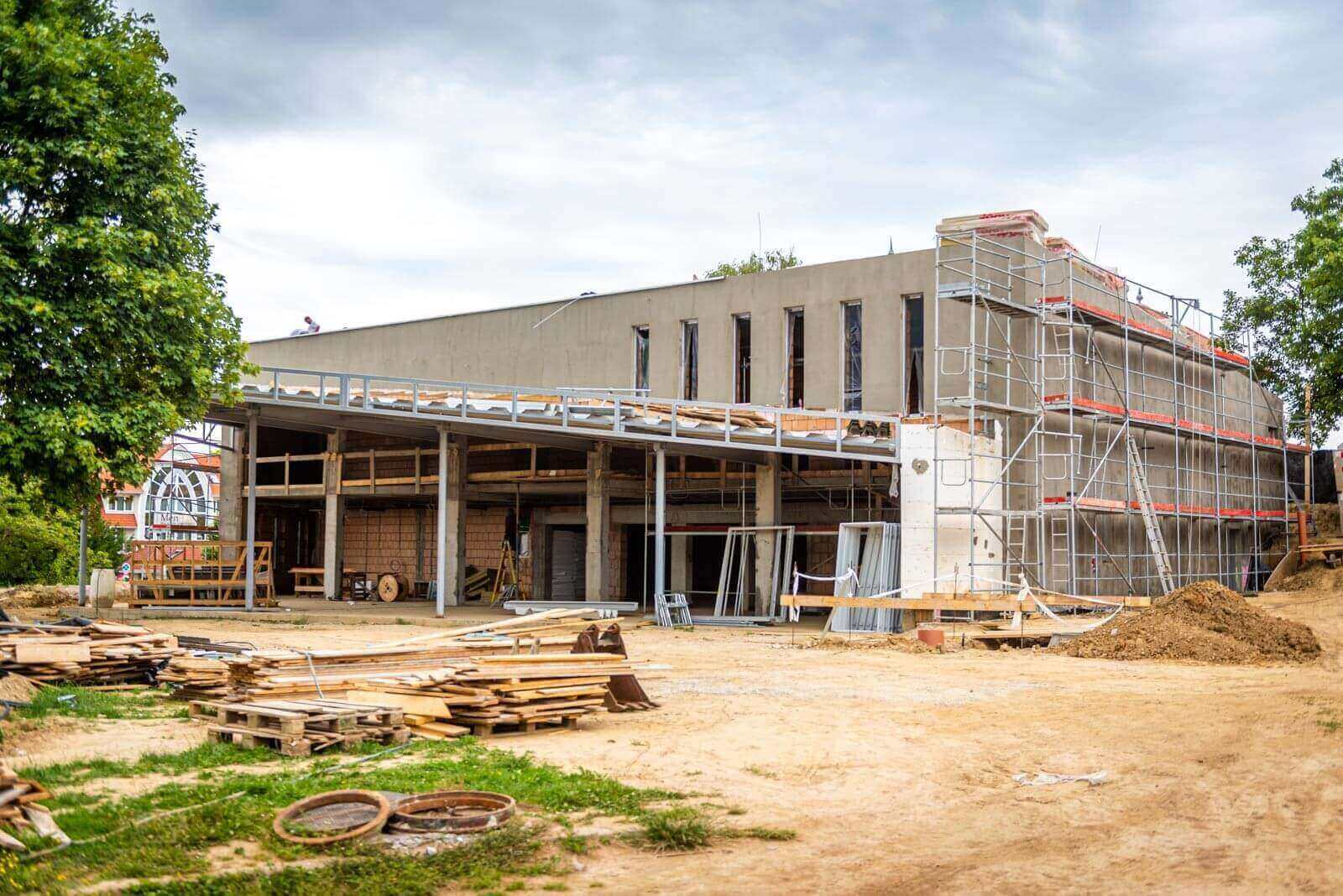 „A központ április végén szerkezetkésszé vált, majd májusban a tetőszerkezet felhelyezése következett, és elkezdődtek a belső szakipari munkák” – derült ki a vezető szavaiból. Hozzátette, ebben az épületben többek közt egy 200 négyzetméteres előcsarnok is létrejön, kiállításoknak helyt adva, továbbá egy 300 négyzetméteres rendezvényhelység, amely ketté osztható.