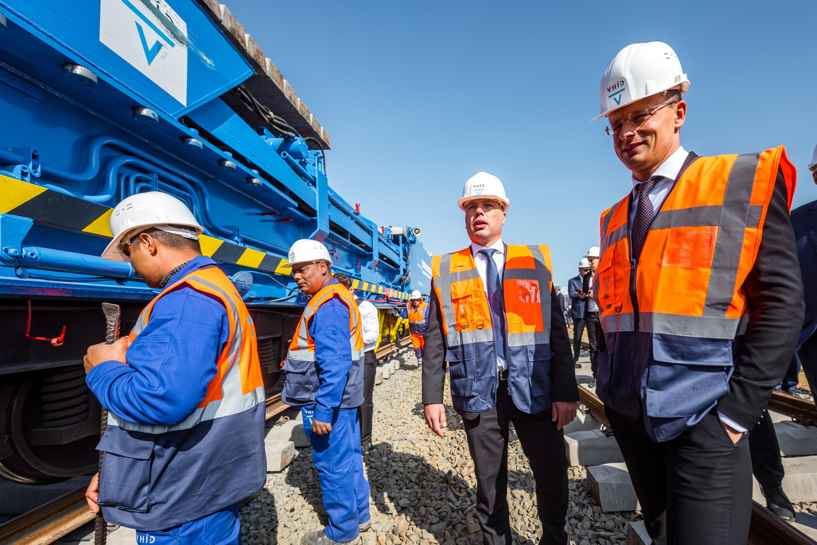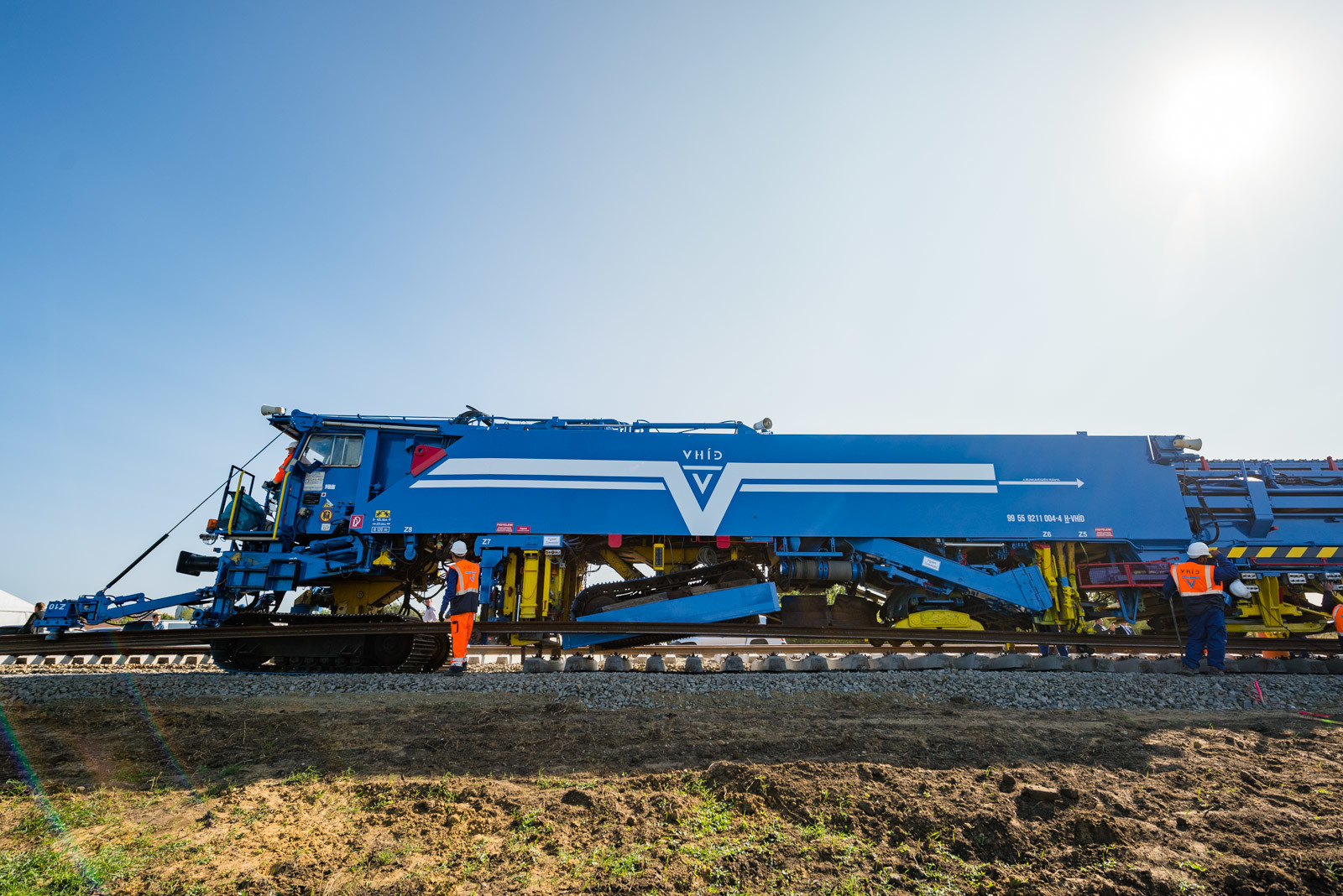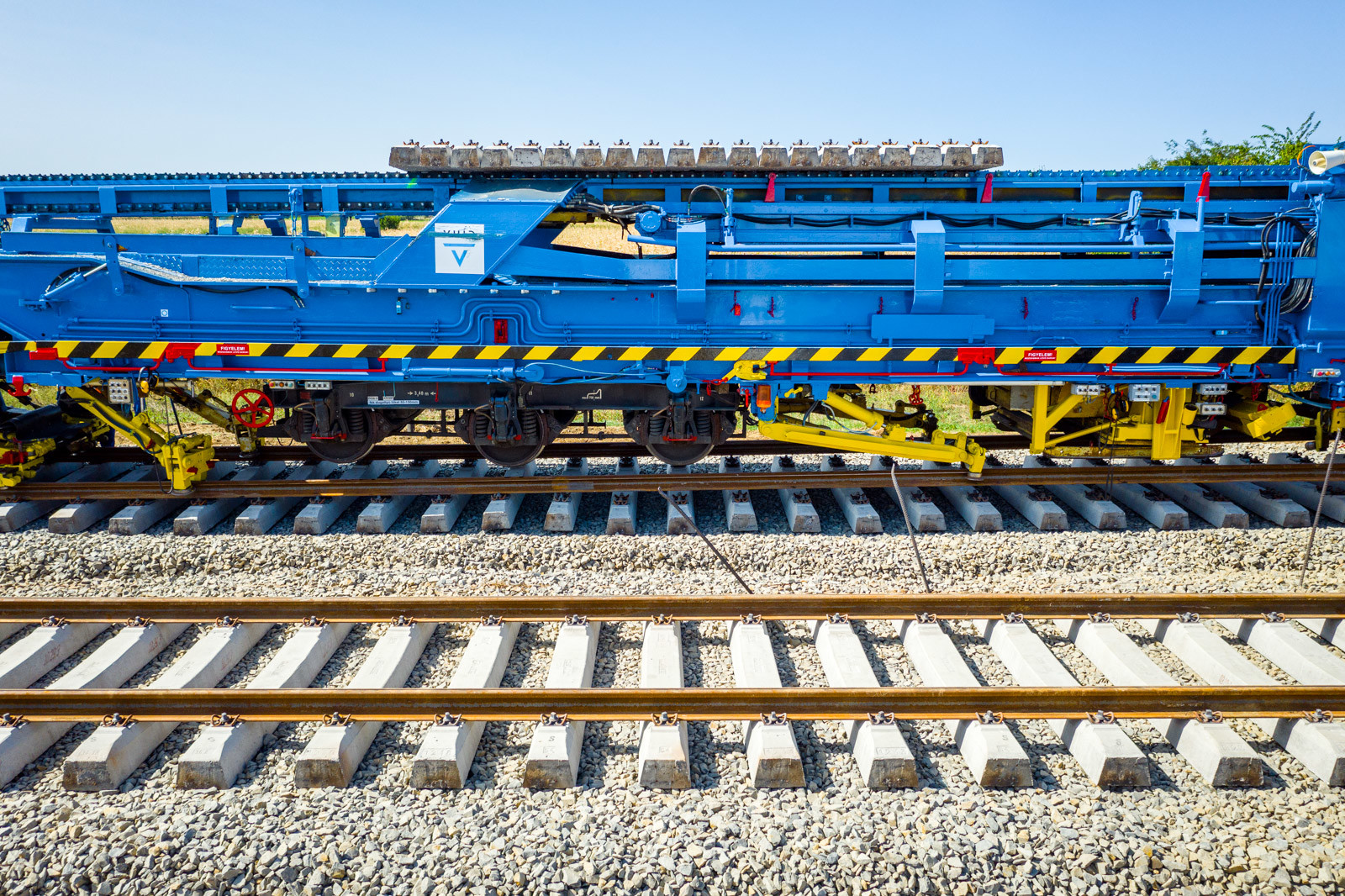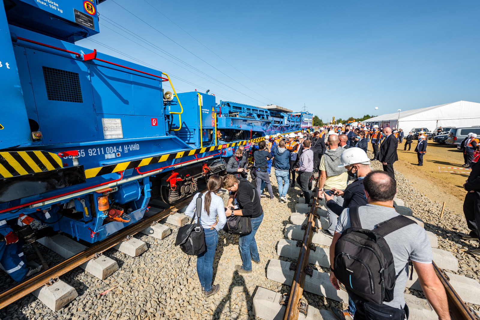 Az ünnepséget közvetlenül a vasúti vágányok mellett tartották meg, ahol működés közben is bemutatták a V-Híd által megvásárolt, SMD-80/UVP 2002-es vágányépítő és -átépítő gépláncot. A több elemből álló szerkezet beszerzésével a vasúti munkák teljes vertikumát el tudja látni immár a V-Híd, a magyar fejlesztések megvalósításához nem lesz szükséges külföldi tulajdonú kapacitások lekötésére.
