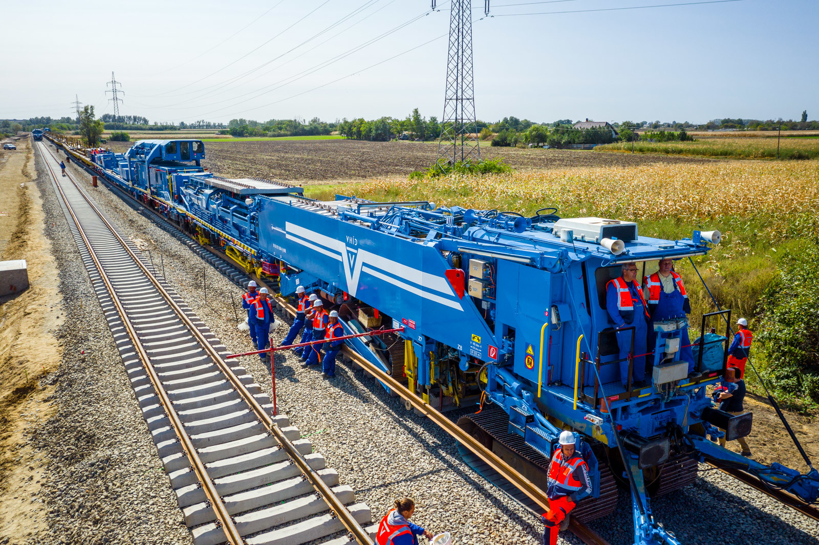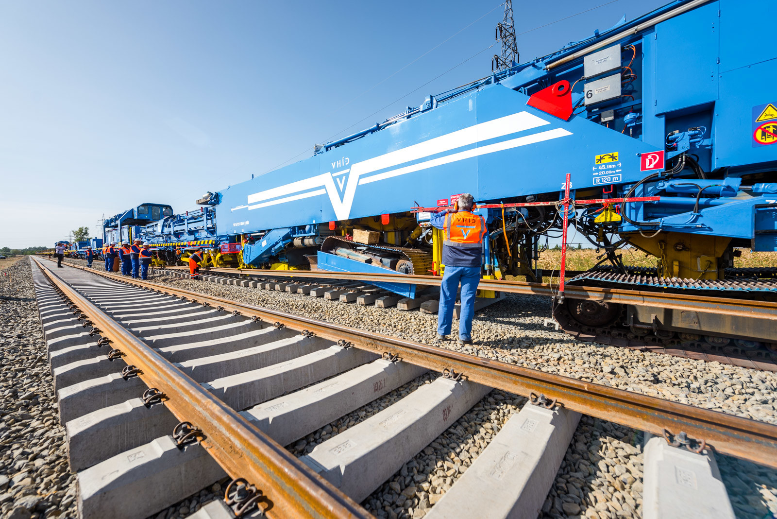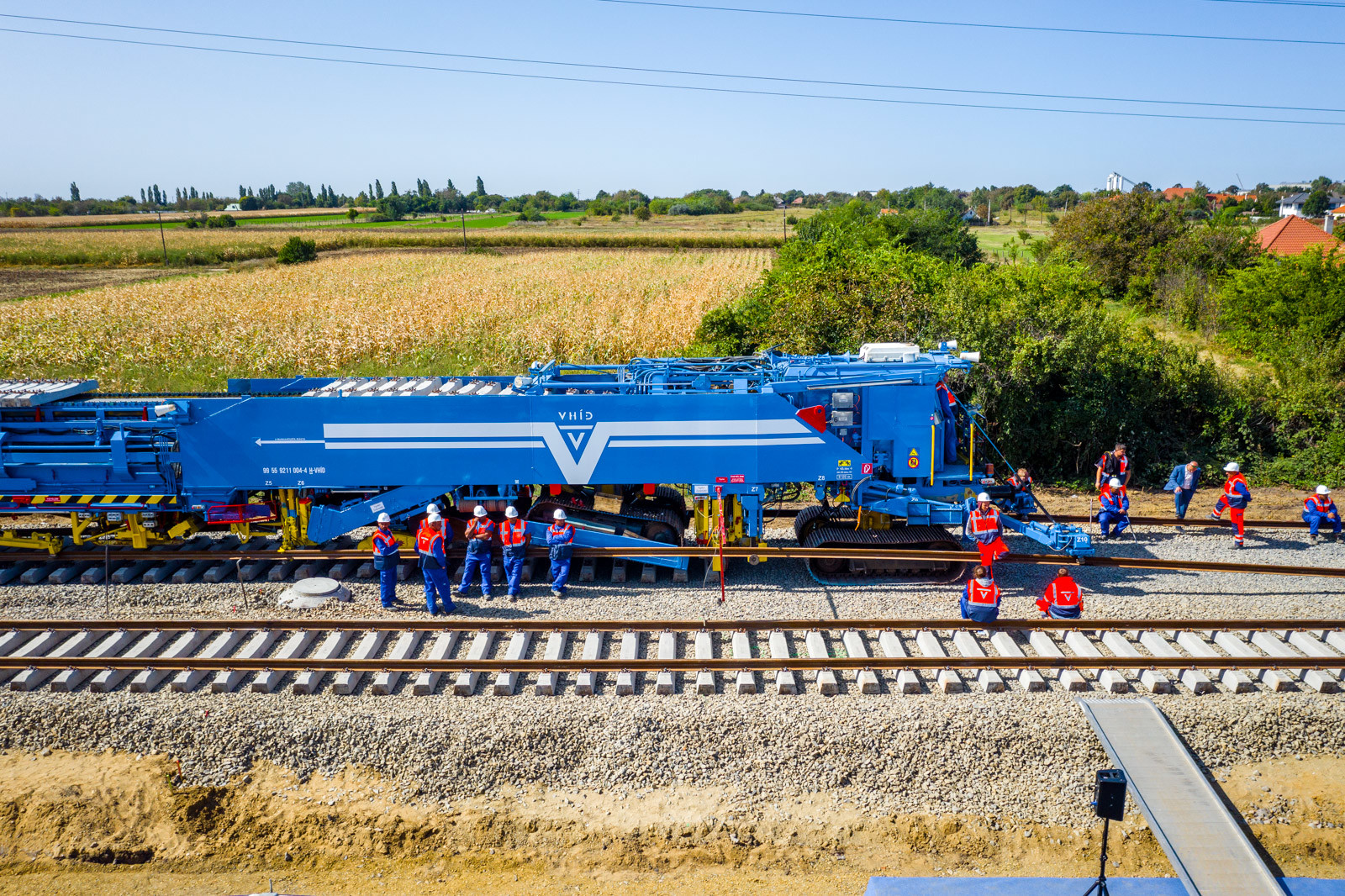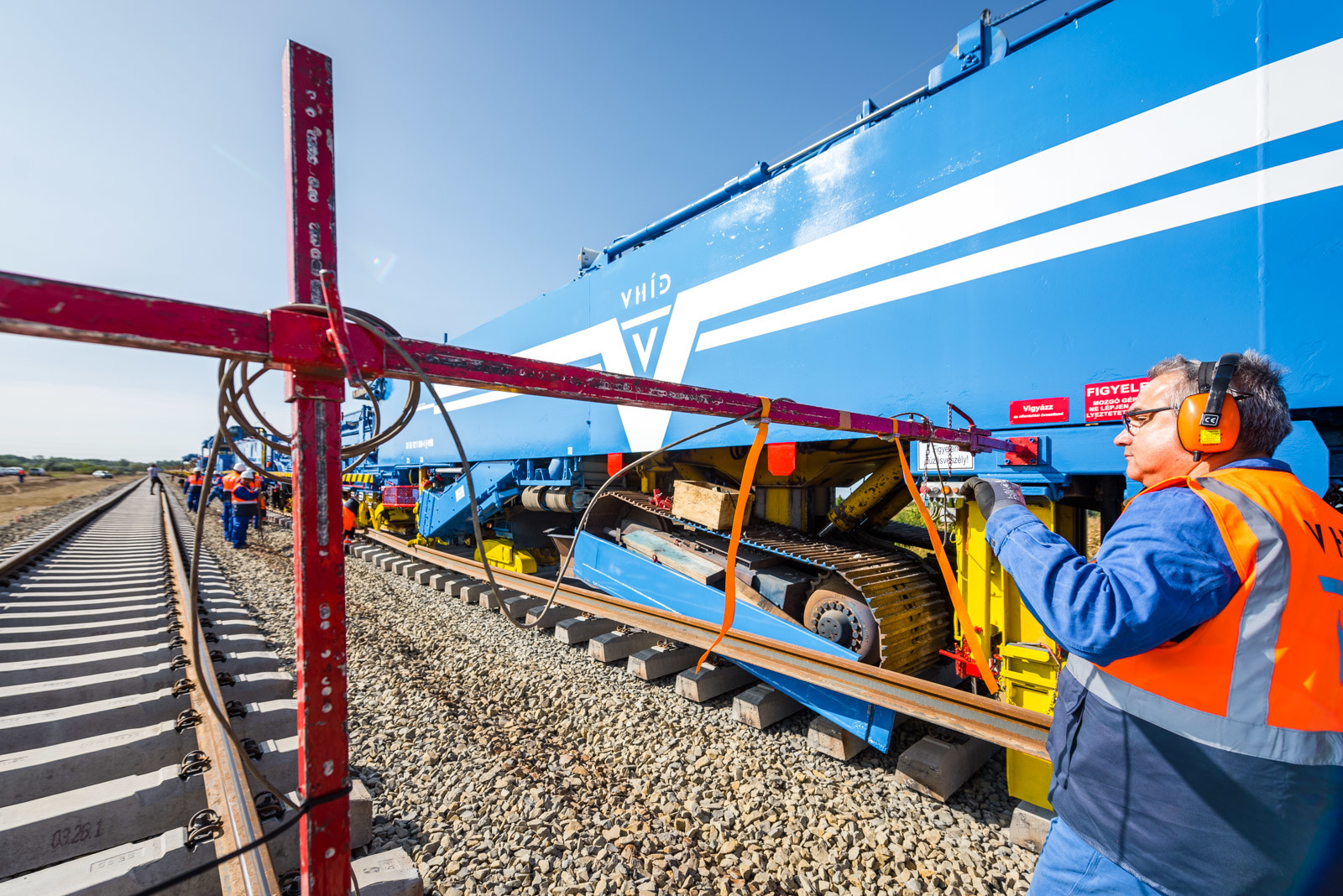 Az ünnepséget közvetlenül a vasúti vágányok mellett tartották meg, ahol működés közben is bemutatták a V-Híd által megvásárolt, SMD-80/UVP 2002-es vágányépítő és -átépítő gépláncot. A több elemből álló szerkezet beszerzésével a vasúti munkák teljes vertikumát el tudja látni immár a V-Híd, a magyar fejlesztések megvalósításához nem lesz szükséges külföldi tulajdonú kapacitások lekötésére.